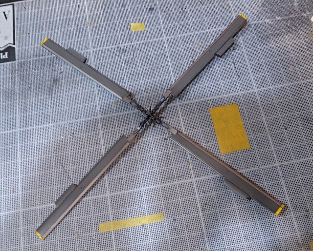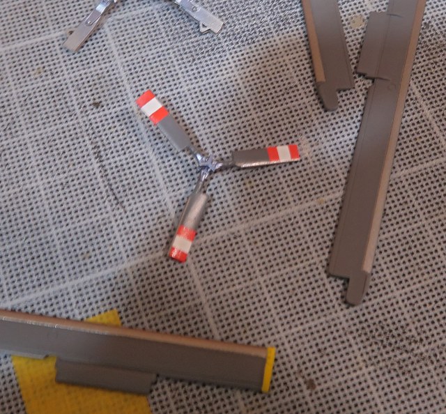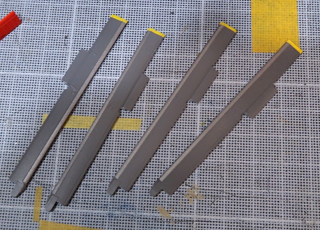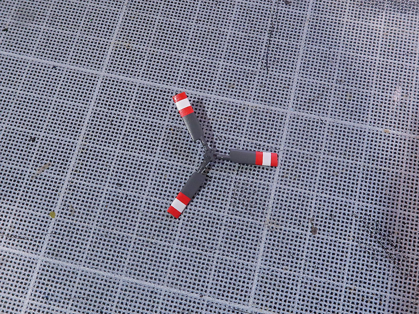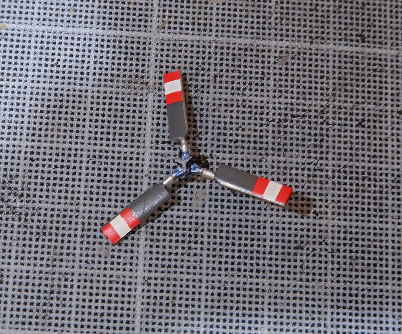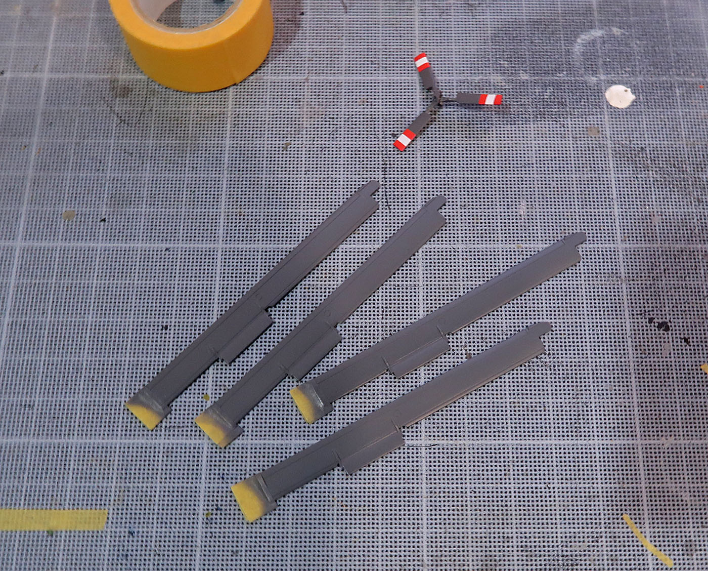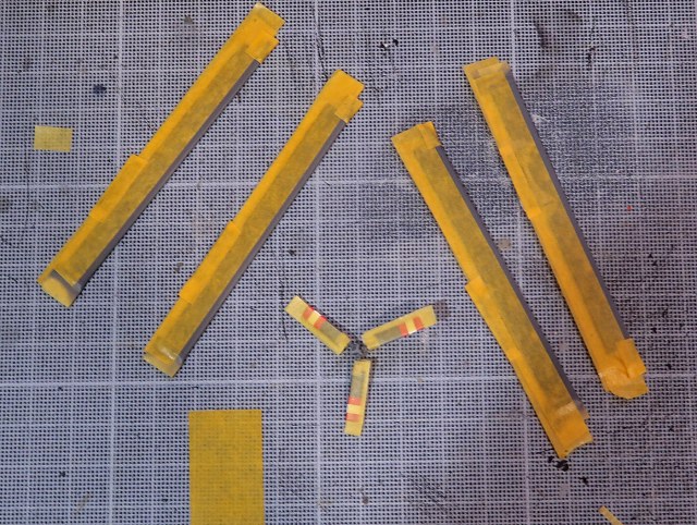 На лопастях несущего - маски еще пригодятся, а на рулевом снял - т.к. полоски металла по кромке пойдут поверх.