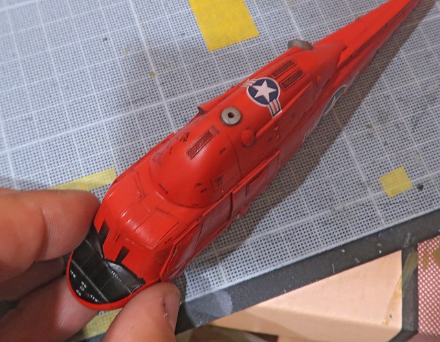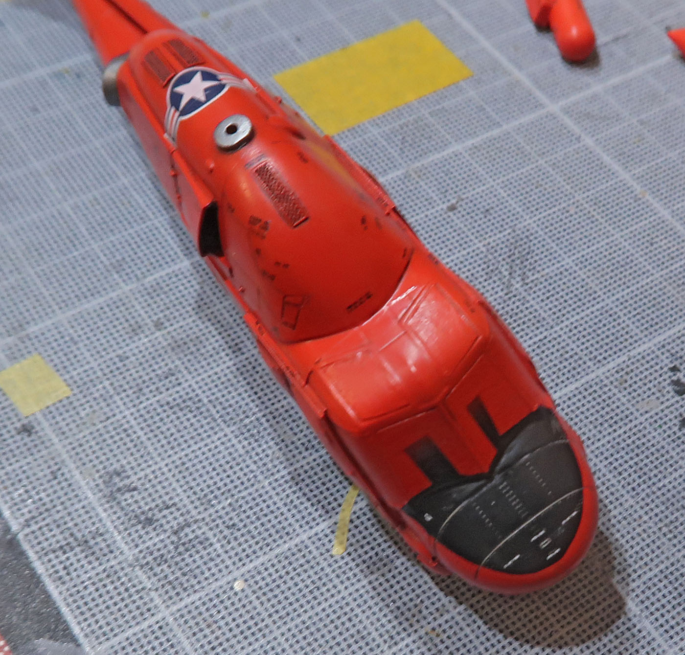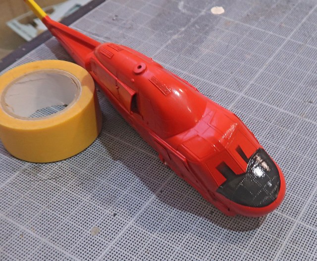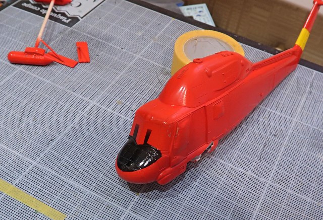 А на тушке последнее (вроде бы) приложение аэрографа - антиблик на морде. По фото реальных вертолетов - антиблик рисовали по разному. Я выбрал вариант "до форточек" - мне он больше понравился.