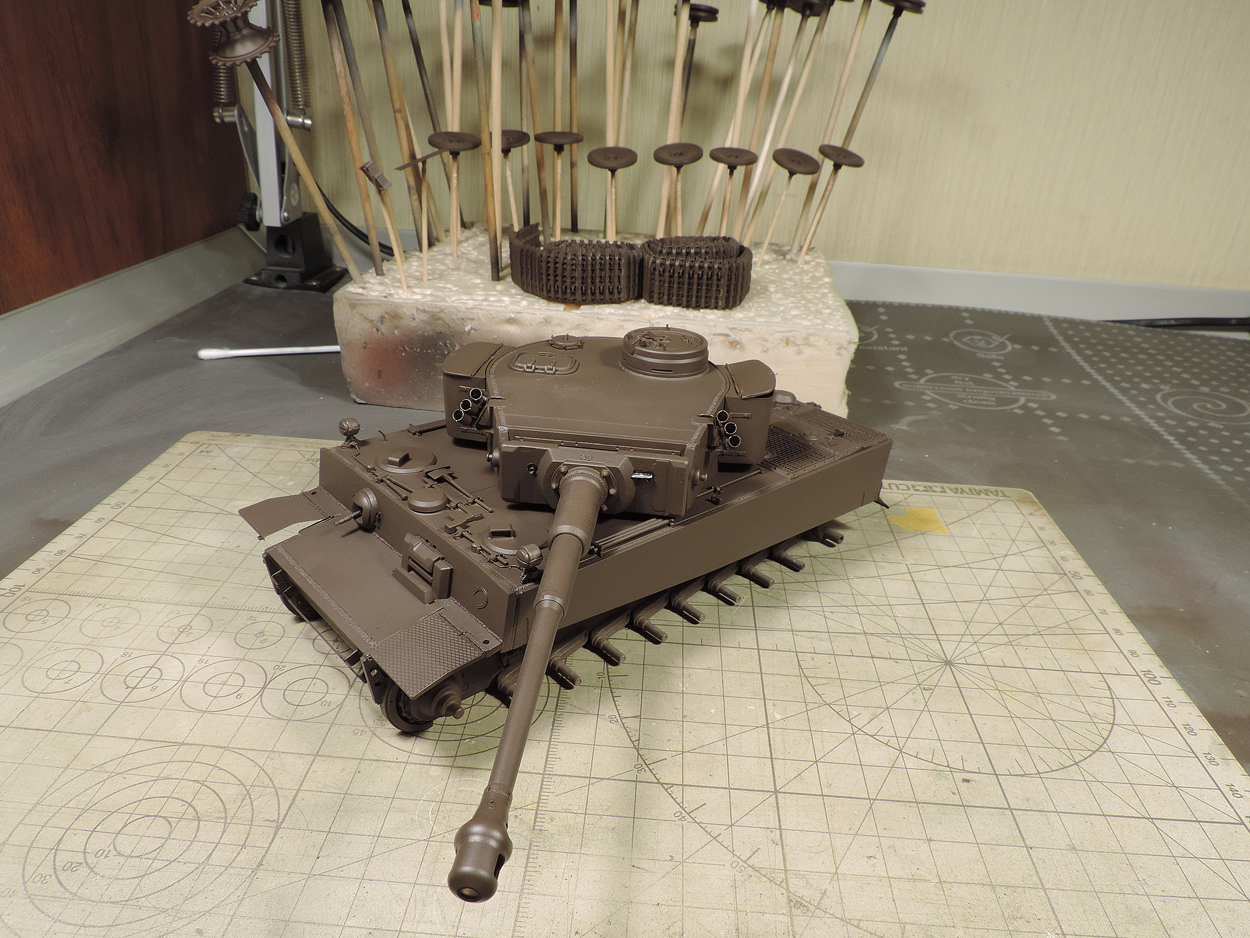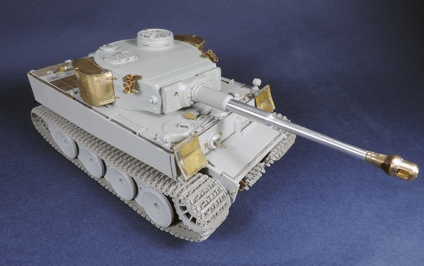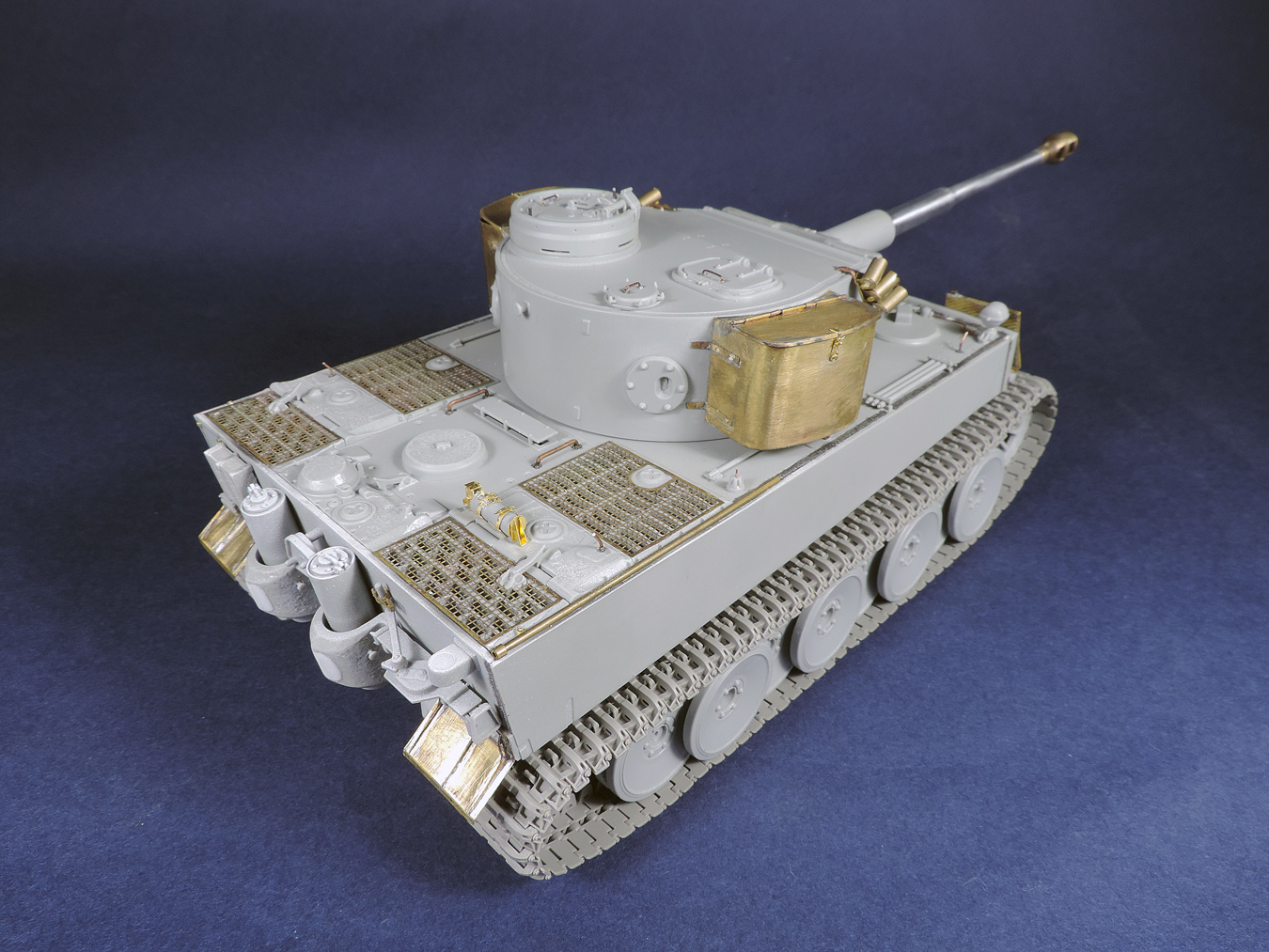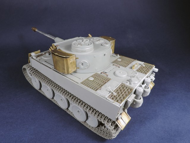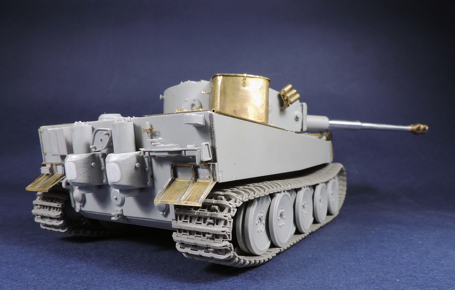 Модель дополнена смоляными траками от Master Club, знаменитые уши от Voyager. Передние щитки и некоторая мелочь тоже от Voyager. Шанец больше из остатков, на машине были только лопата и топор с огнетушителем, который я потом переделал.