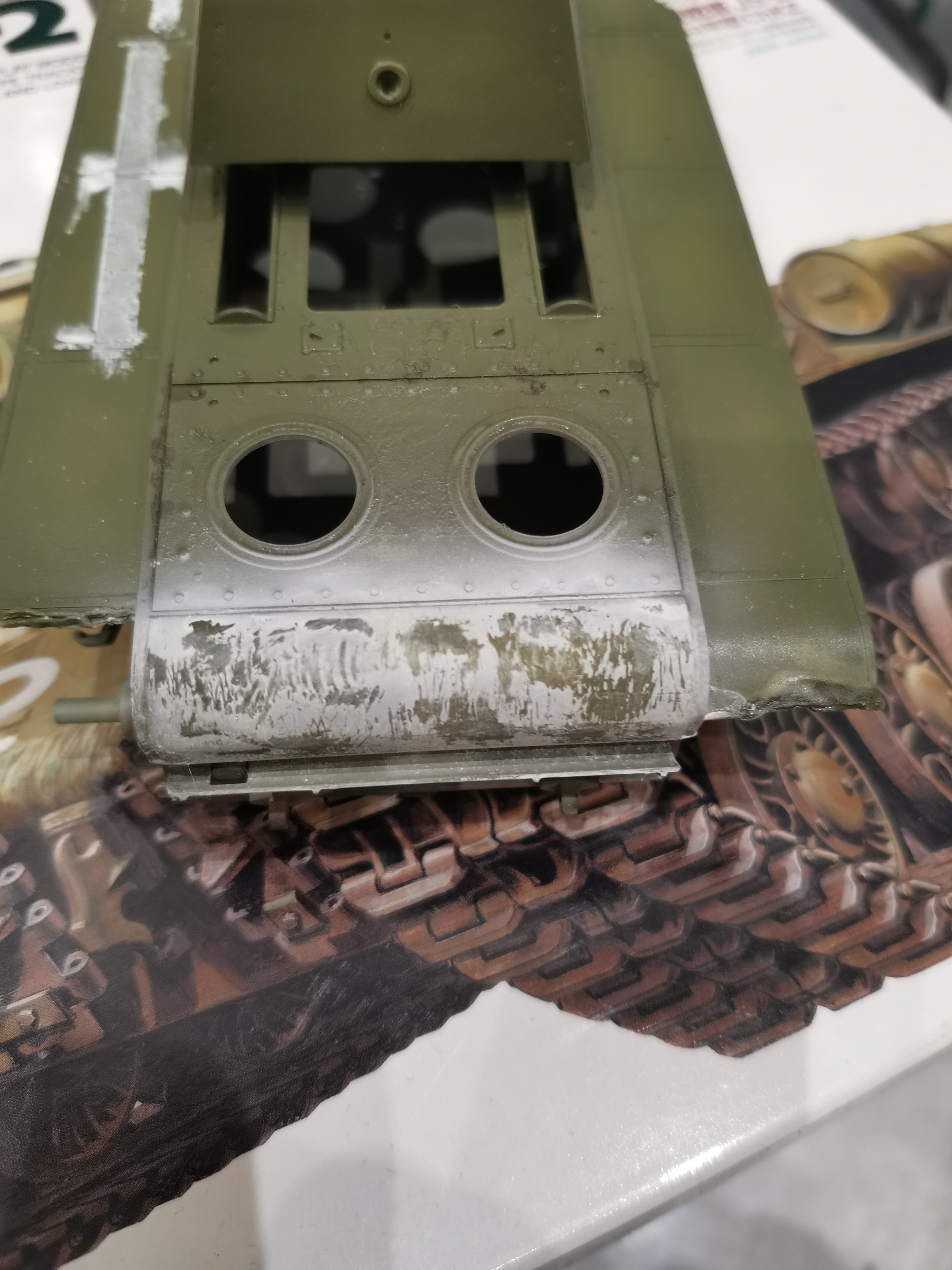 Сейчас у меня уже на башне глянцевый лак и декали. Может мне сделать смывку, потом задуть матовым лаком, потом ЛДВ и сделать на него полосы прорыва, а потом их подсмыть как зимник? Ну и потом на полосы чуть смывки нанести.