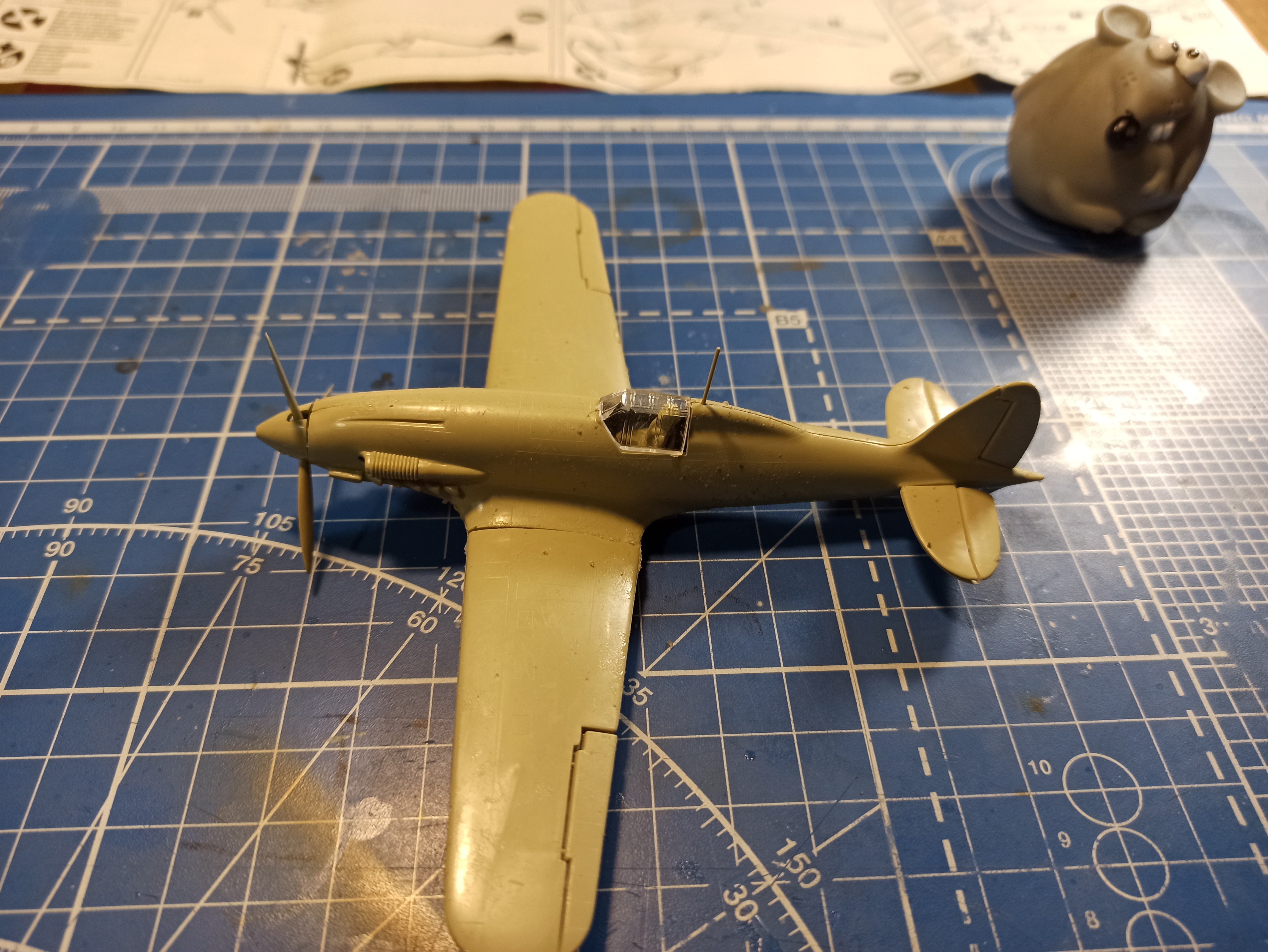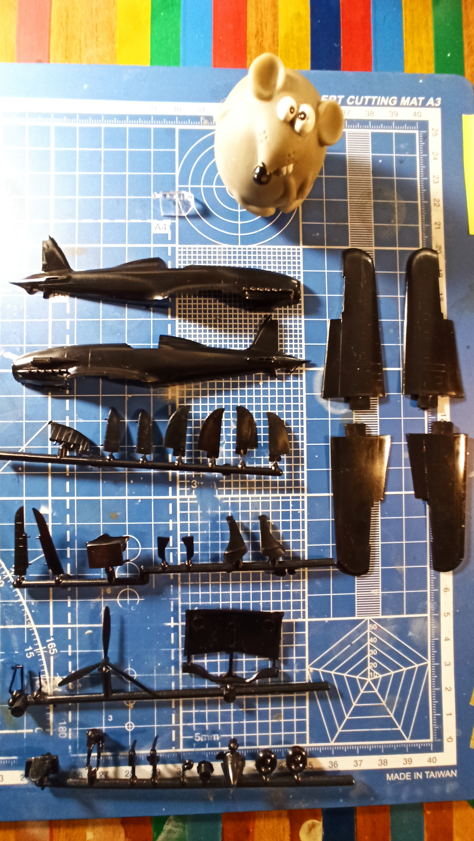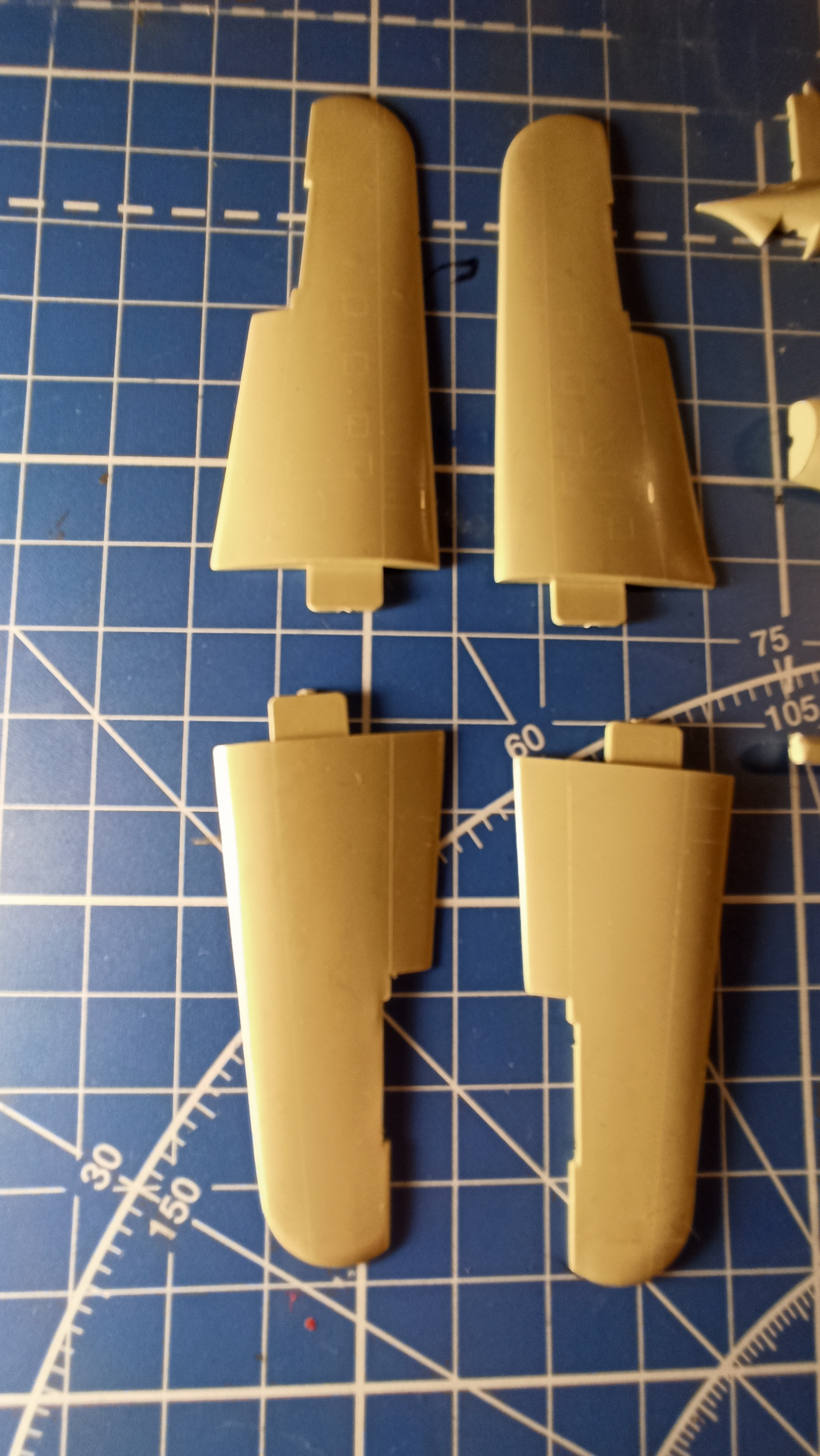 Первоначально я склонялся к мысли работать с ним. Тем более что на ретромоделс пишут, что со временем расшивка очень размылилась со временем. Но на моих экземплярах очень тонкая , я бы сказал еле заметная, нитевидная расшивка, облоя почти нет на обоих экземплярах, только на детали подфезюляжного тоннельного радиатора.