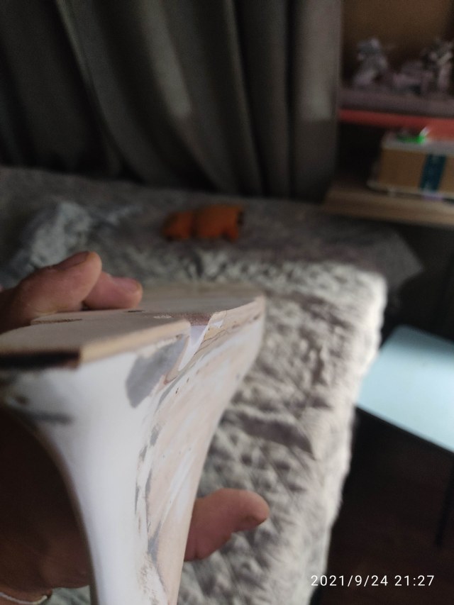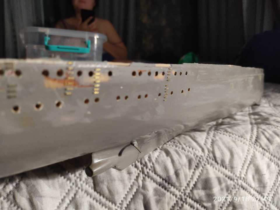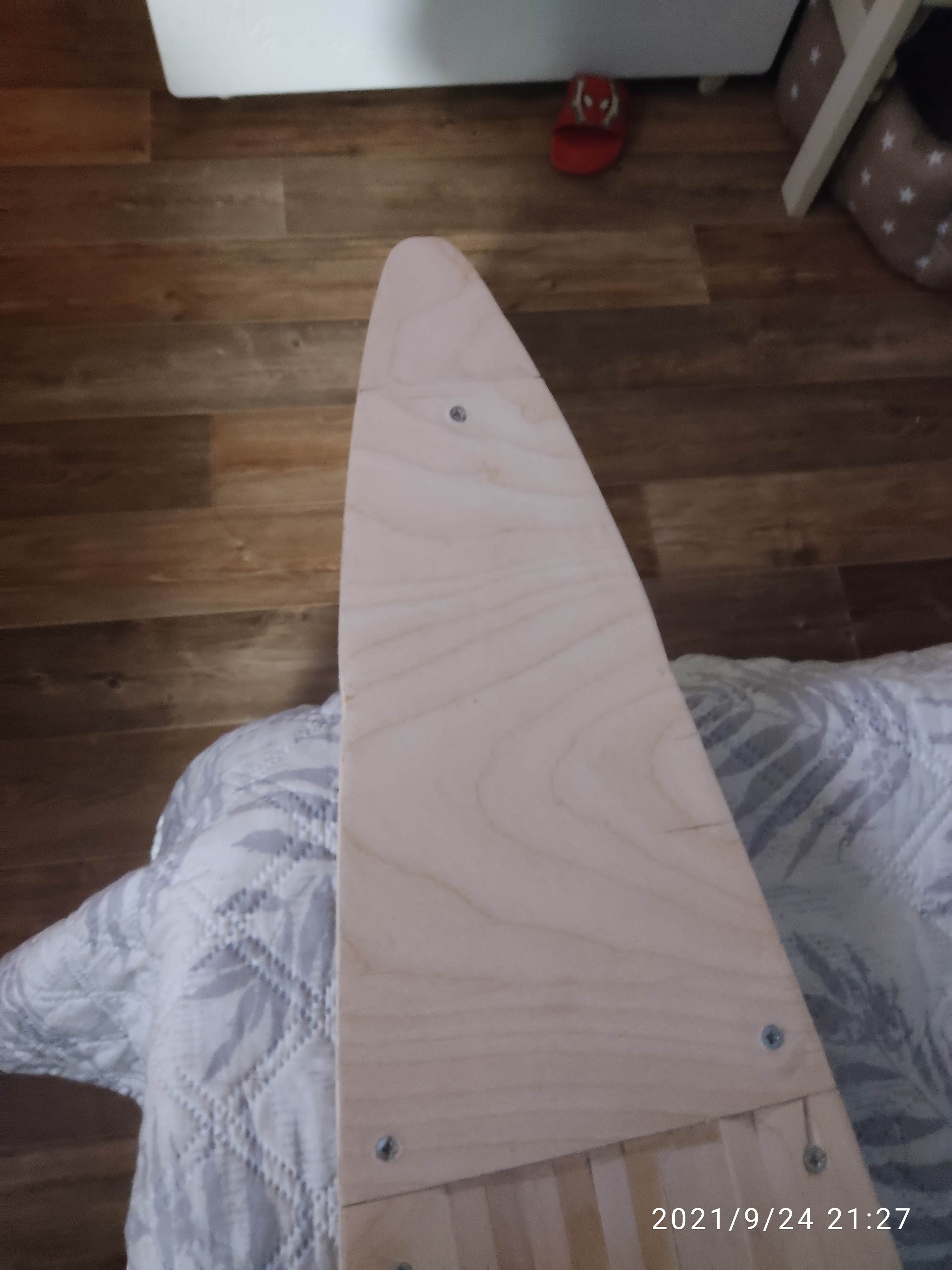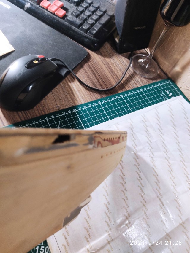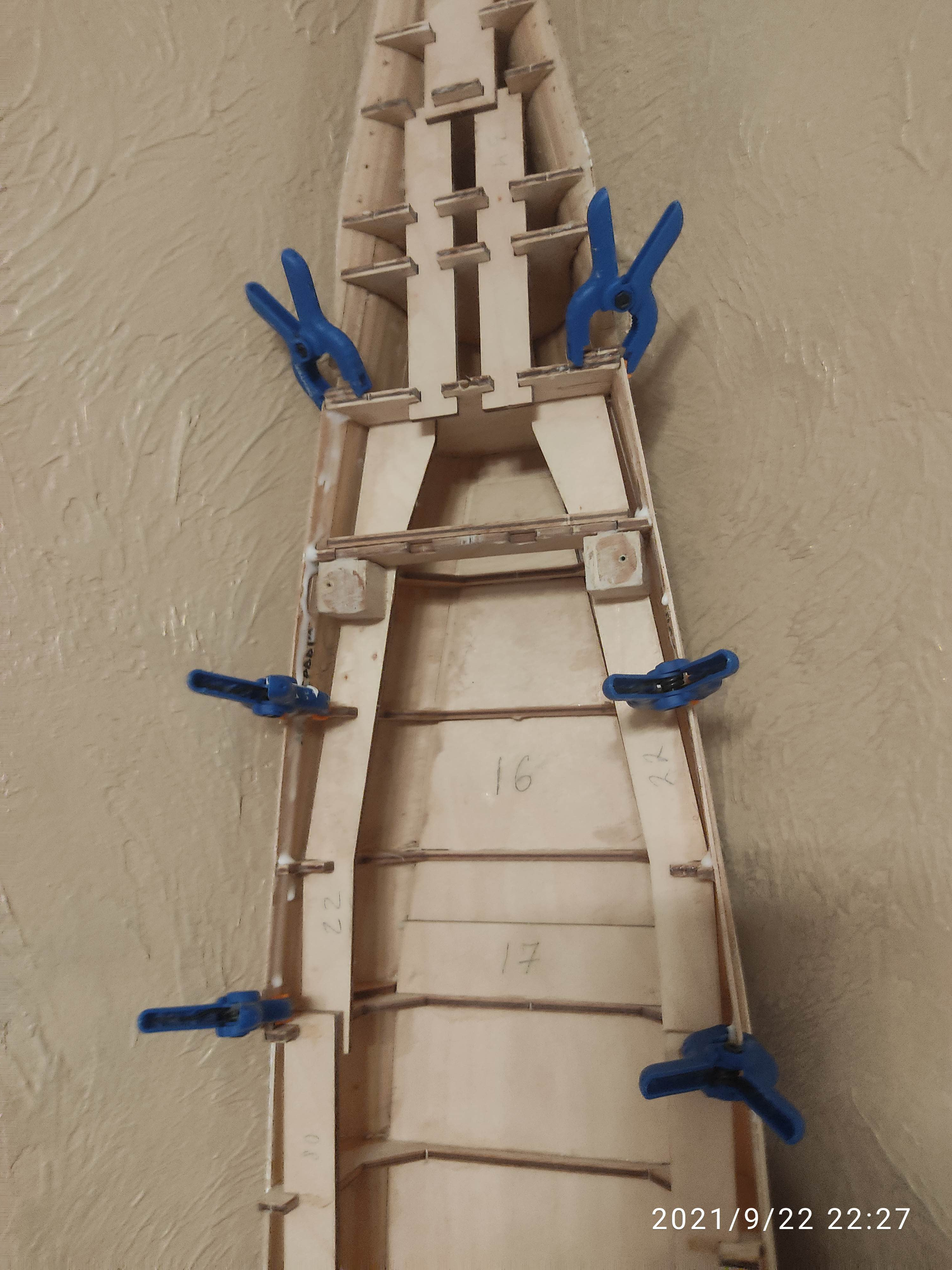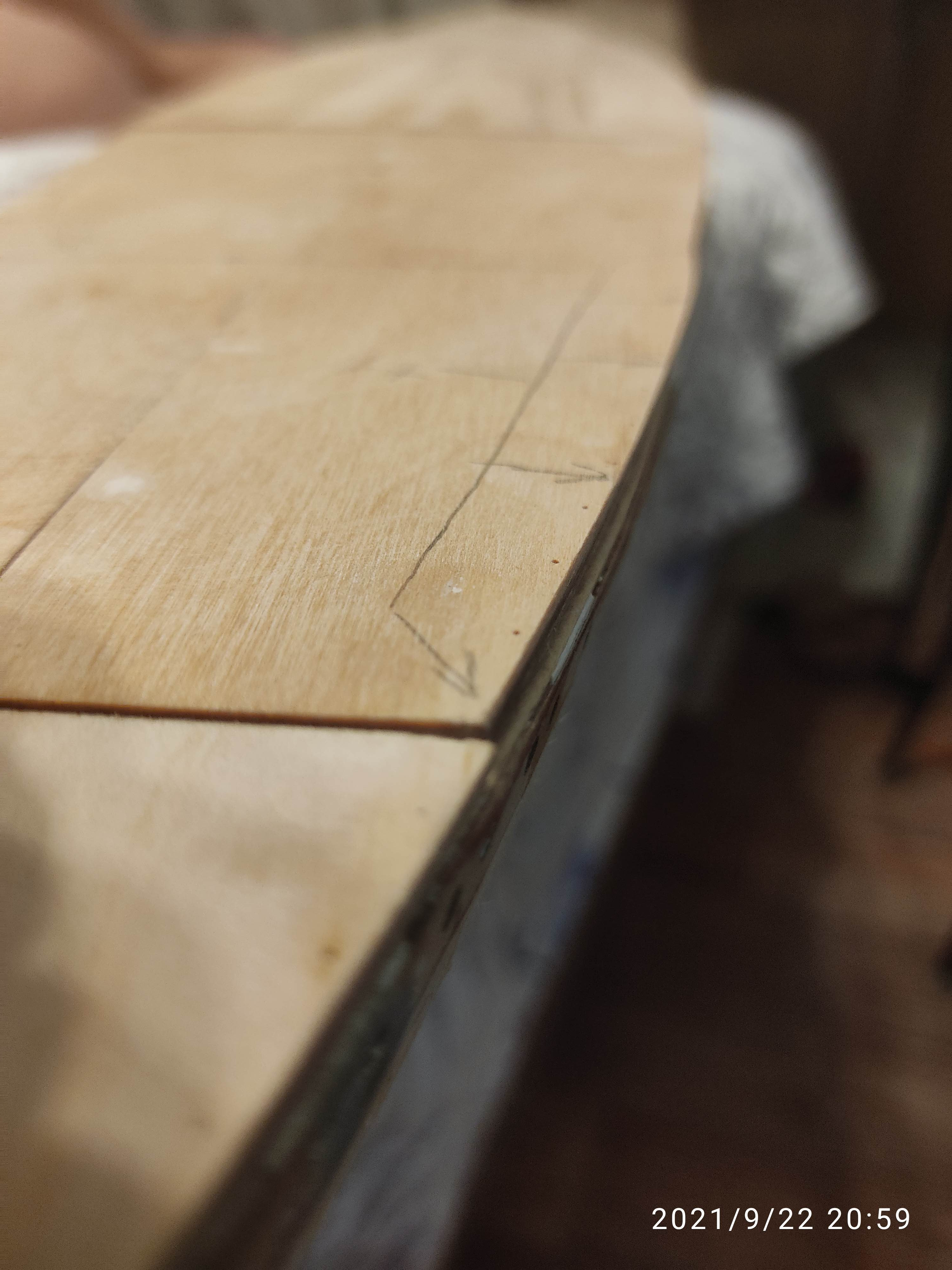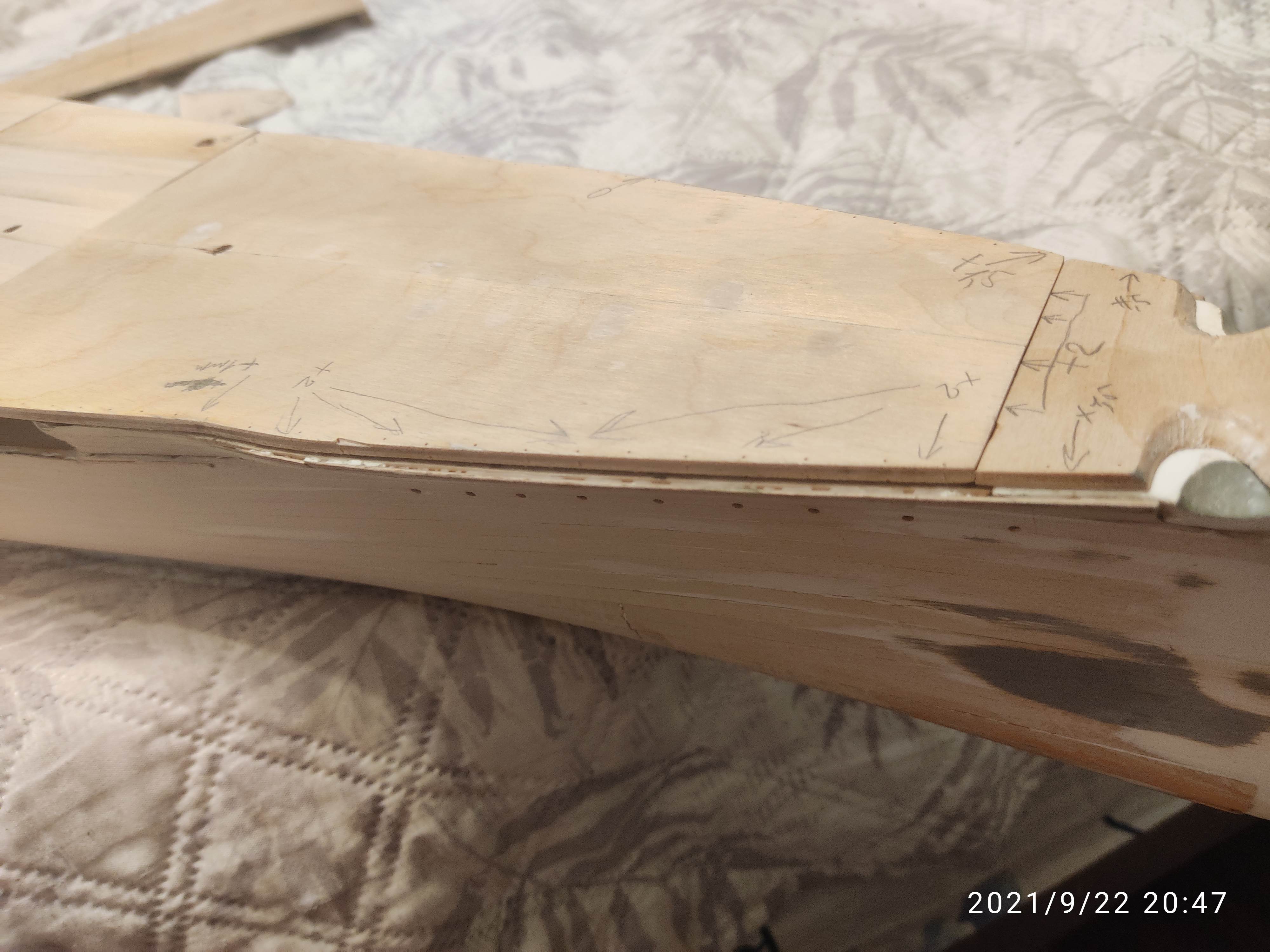 при проклейке обшивки обратил внимание на один нюанс шпангоуты носа и кормы не обточены на конус из за чего позади шпангоута образуется миллиметра полтора щель и что влечет сдвиг контура обшивки на полтора миллиметра наружу что очень сильно заметно при монтаже палубного настила. так же меняется и профиль корабля в разрезе.сверху на стыке палубы и борта появляется некая вертикальная поверхность высотой примерно миллиметра три четыре. она нивелируется конечно к центру корпуса но она отлично видна на его концах что с этим делать и делать ли вообще? у меня нет таких реечек да и при разборке корпуса боюсь переломается все к чертям.плюс планочки с иллюминаторами тоже испортятся при подрезке по контуру.