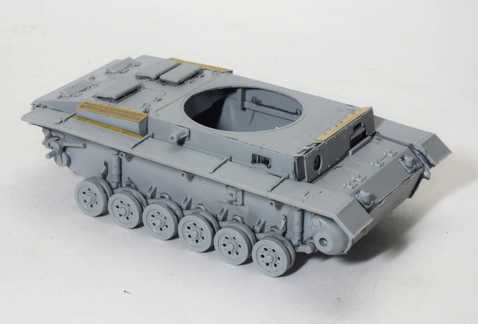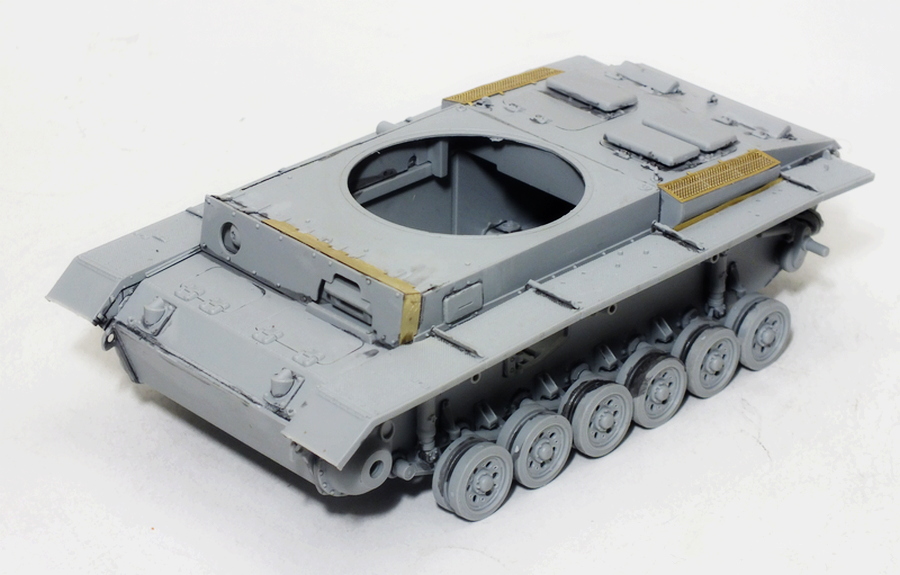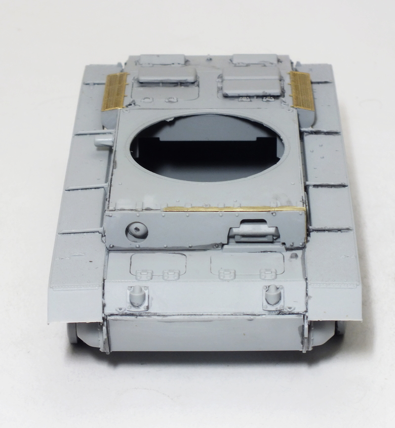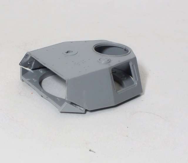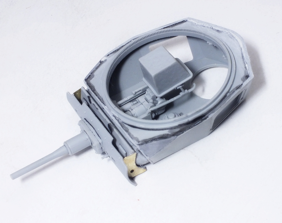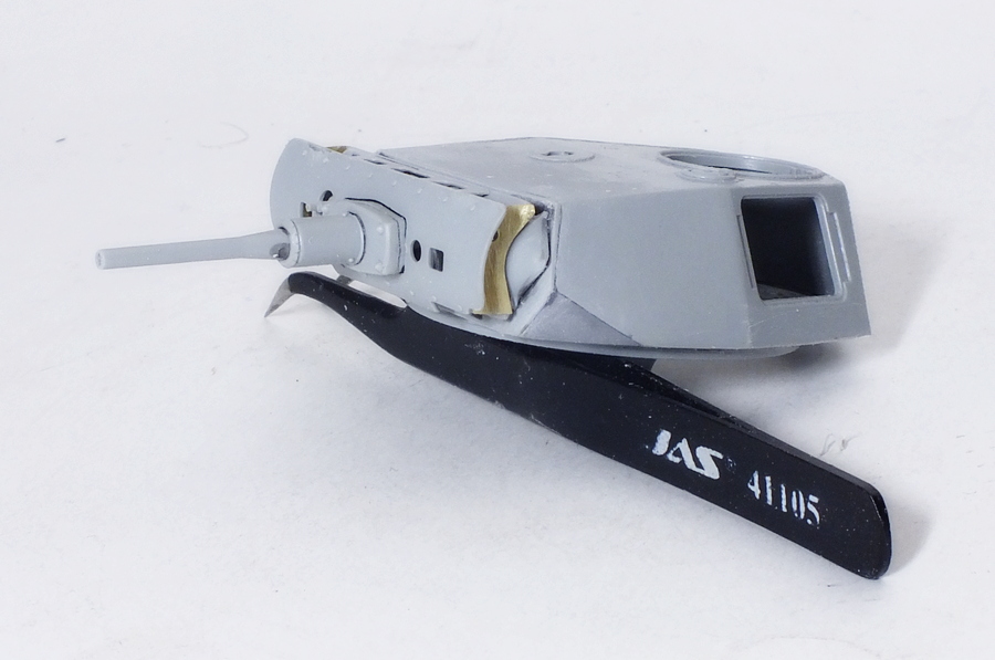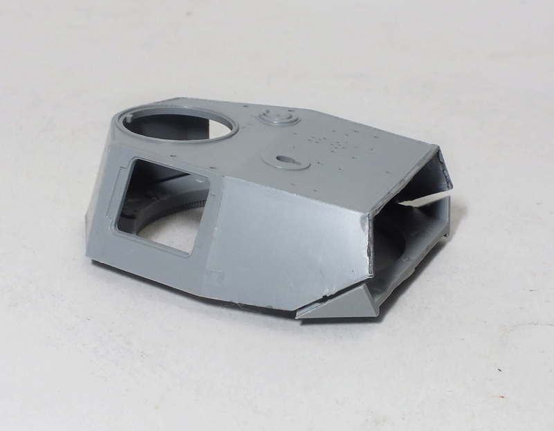 Разнесенная броня маски пушки и переднего бронелиста надстройки корпуса есть в наборе,да и с других наборов осталась куча,ее и поставил.