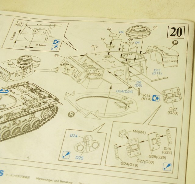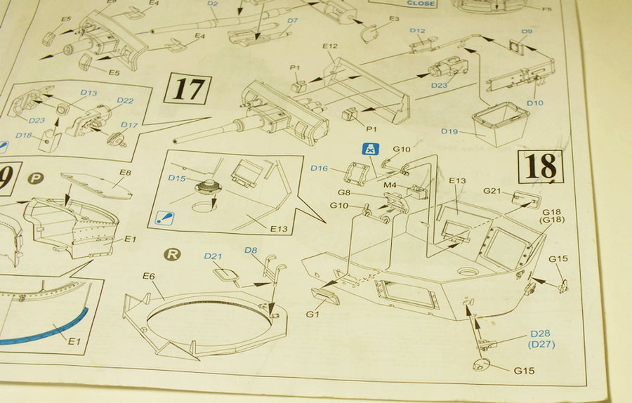 Да как в инструкции, и на фото Славы правильные детали, а вот верх башни не тот, должен быть с смотровыми лючками по бортам.