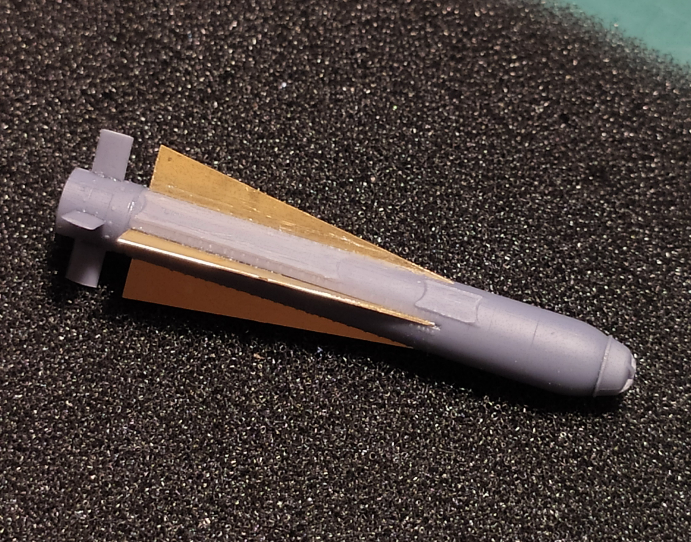На этот раз Эдуардовская смола. Сами ракеты хорошо отлиты. Детали четкие не замыленные. Вопросы возникли при монтаже деталей травления. Тонкая травленая деталь гребней/рулей никак не хотела становиться в один из пазов. Долго не мог понять в чем дело пока не взял увеличительное стекло. Оказалось, что паз не до конца пролит и есть остатки смолы. У меня два набора таких ракет по 4 штуки в каждом и такой недолитый паз на всех 8 ракетах. Получается проблема изначально в форме. Проблема решается процарапыванием скрайбером. Есть одно «но». Жало штатного скрайбера для привычной нам расшивки сильно широкое для процарапывания. Он разворотит паз и будет здоровенная щель. Иглой царапать не получится. Она развальцует края паза. Я взял другой скрайбер и уменьшил толщину жала почти вдвое. В любом случае такой инструмент будет нужен. Травление встало по месту без вопросов. Недолитый паз не проблема, но этот нюанс надо учитывать, т.к. может доставить неприятные моменты.