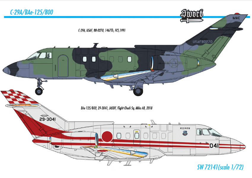 Через два года после премьеры первого кита U-125 Сил самообороны Японии Swrod models выпускает общанные гражданские варианты C-29A/BAe-125/800. без обтекателя радара.