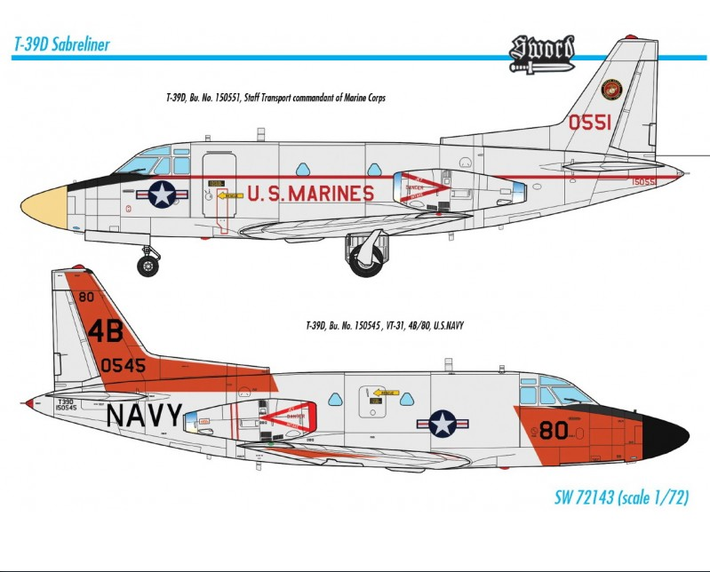 Sword models анонсиовала разработку двух военных версий административного самолёта Rockwell Т-39 Sabreliner в масштабе 1/72.