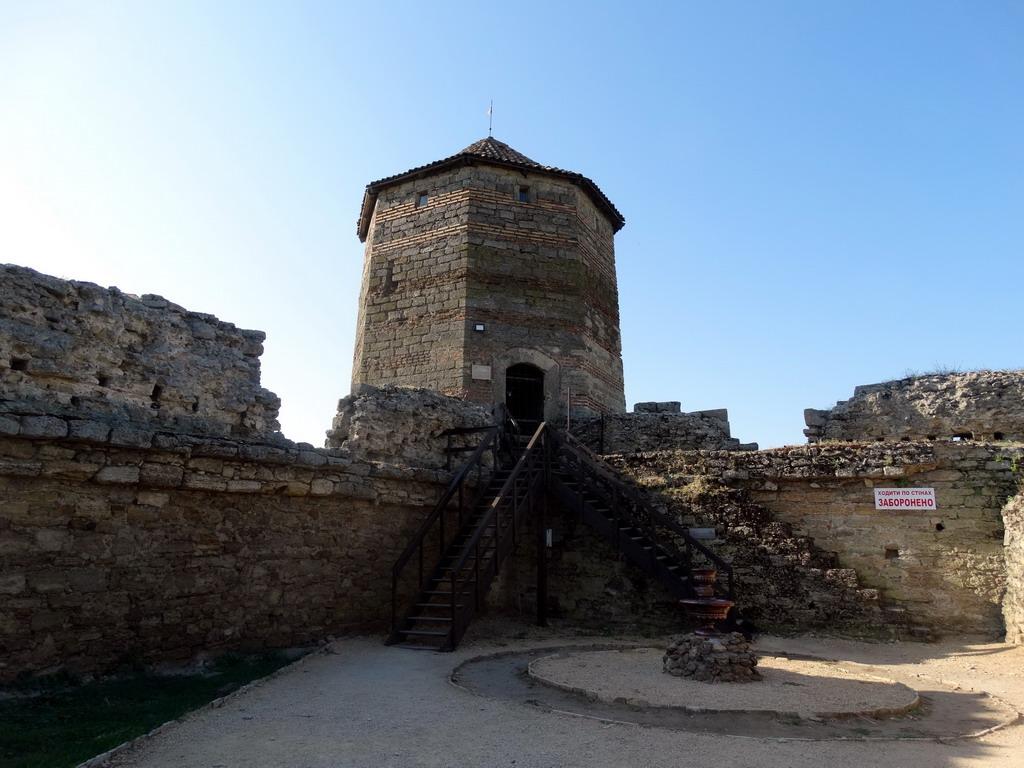 Я осматривал крепость по направлению часовой стрелки. И первая башня, встретившаяся мне - это Девичья башня. Существует легенда о дочери молдавского господаря, упорно не желавшей выходить замуж. В итоге разгневанный отец заключил свою непокорную дочь вот в эту самую башню. Истинное происхождение названия гораздо менее романтично. Название «Девичья башня» по-турецки звучит как «Кыз-куле». Очевидно, башня изначально называлась «Коз-куле», т.е. дозорная башня. Башня высока и выдвинута в сторону суши более чем какая-либо другая. А стало быть, отлично подходит для дозорной службы. Кстати сказать, в Крыму есть целых две башни с точно такими же названиями, одна около пещерного города Эски-кермен, другая в Судаке, на самой вершине Крепостной горы. А еще в Крыму есть пещерный город Кыз-кермен (о котором я как-то рассказывал: https://karopka.ru/forum/messages/forum167/topic28103/message1278950/#message1278950 ). И со всеми этими объектами также связаны похожие легенды.