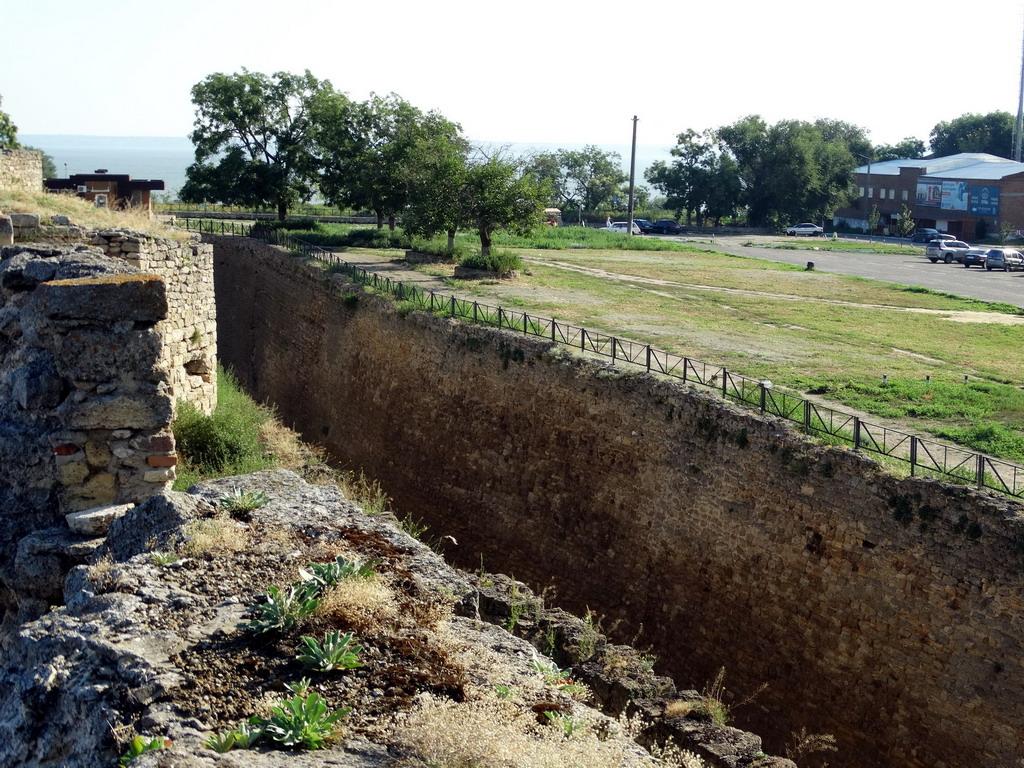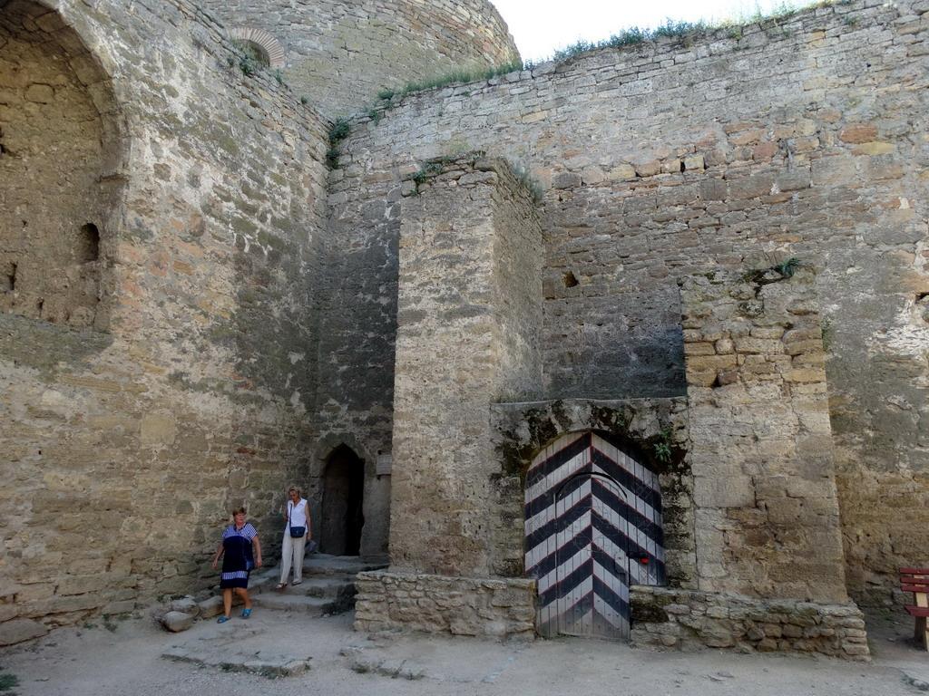 Рядом с башней Пушкина имеются ворота. Они недавнего происхождения, используются для завоза на территорию крепости разных товаров для посетителей. Обычно ворота закрыты, но тут все же оказались открыты и я спустился к лиману. Когда-то здесь находился Карантинный двор, однако он сохранился гораздо хуже, чем другие дворы. Большая часть стен и все до одной башни обрушились, подмытые водами лимана.