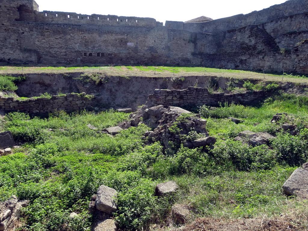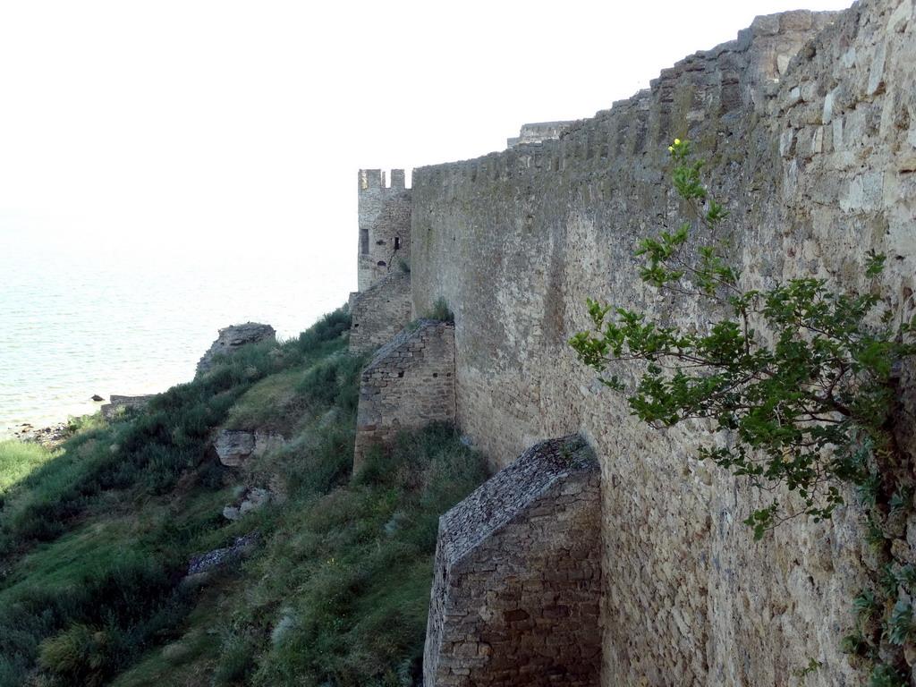Стена возле Комендантского двора. На заднем плане остатки башни Сокровищница. Ну и вид со стены – на башню Темница (фото 059) и на лиман.