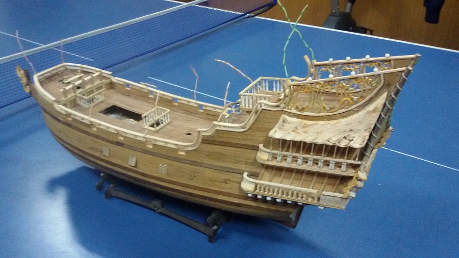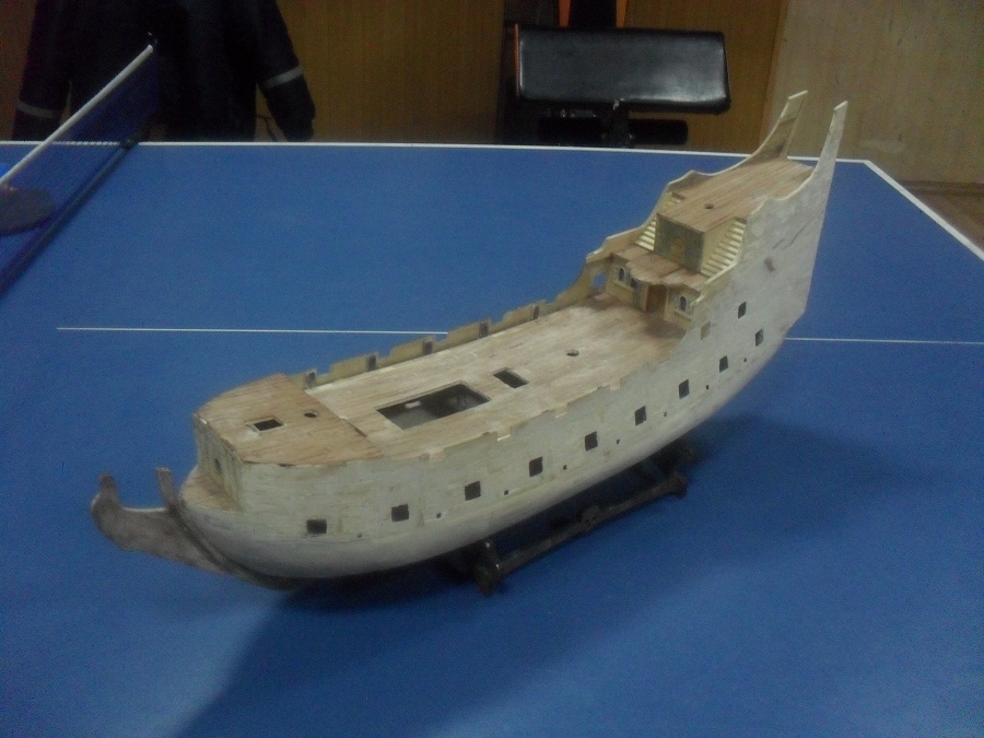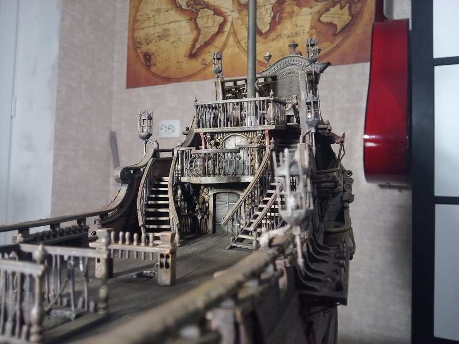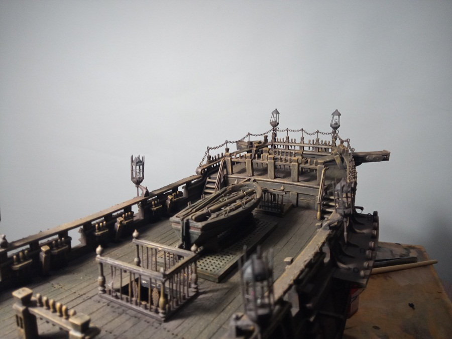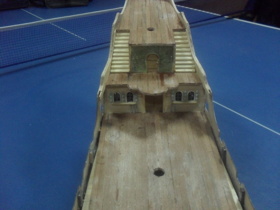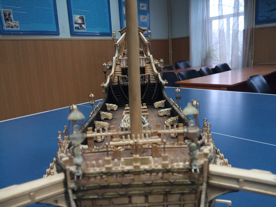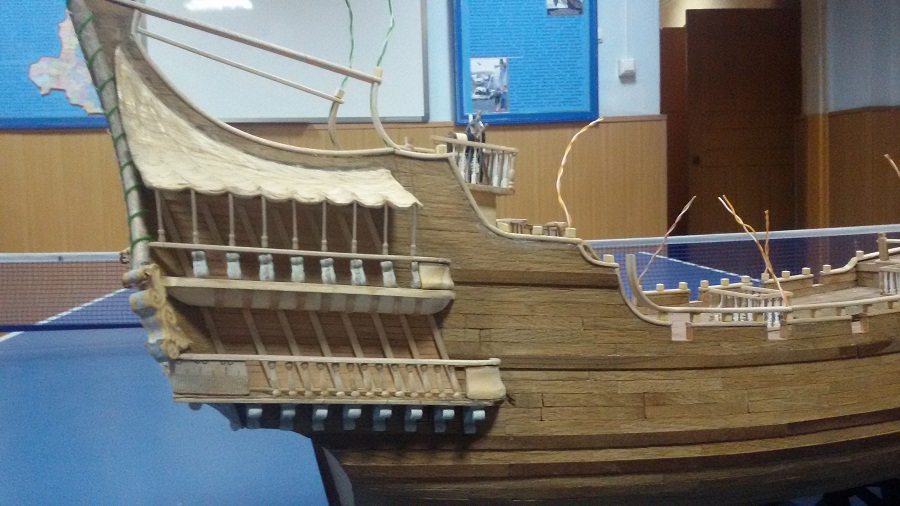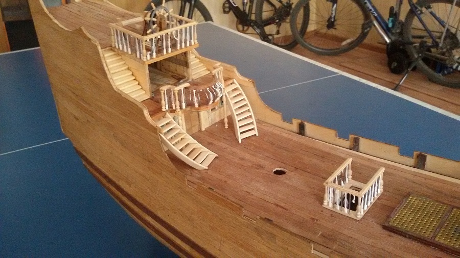 Кницы под нижними галереями размноживал при помощи пластилина (форма для оттиска) и мэджик-скульпта (основной материал). Так же с балясинами верхней галереи. Резные элементы по бокам кормы делал из самшита