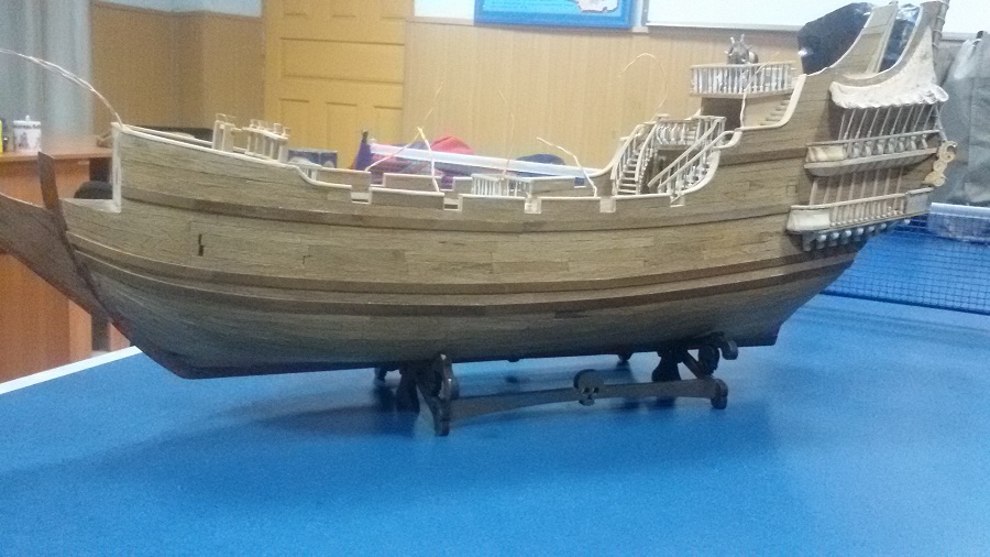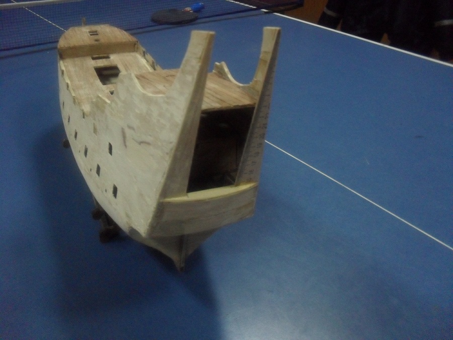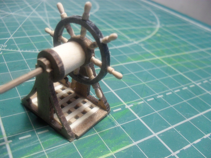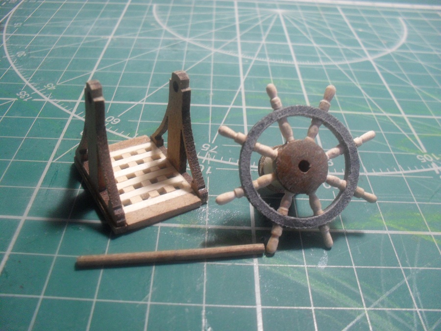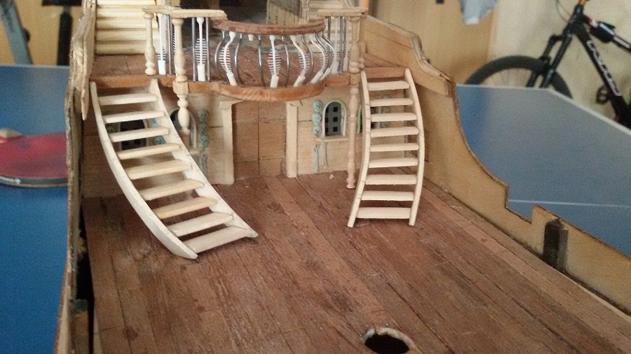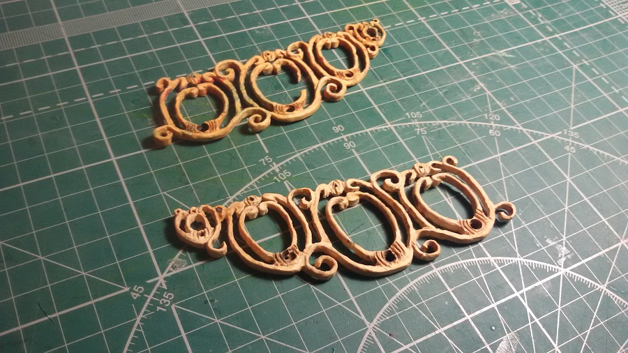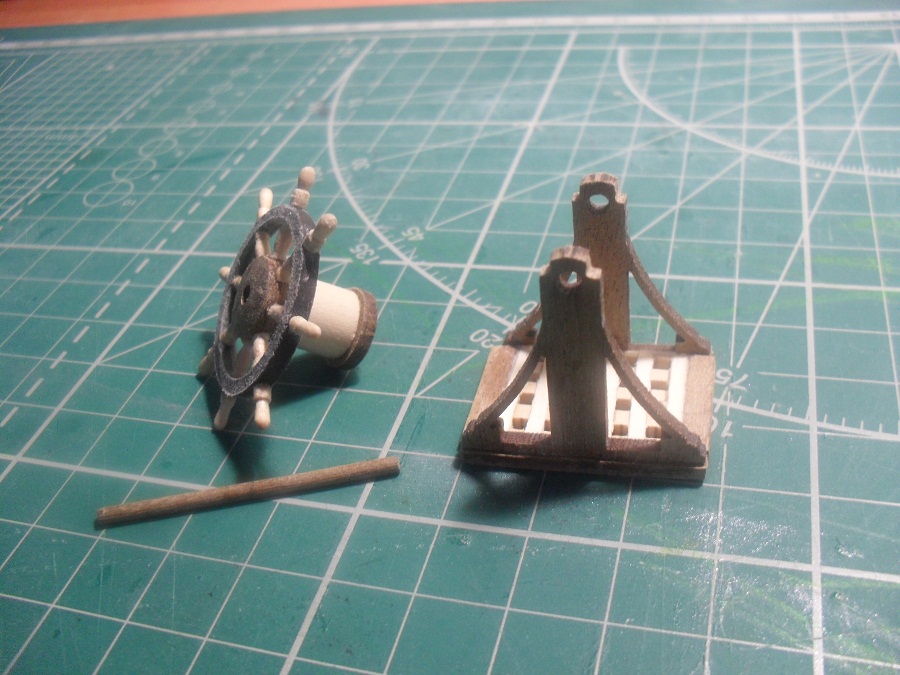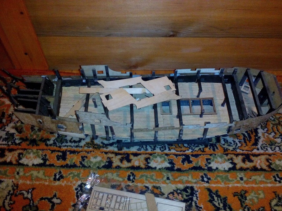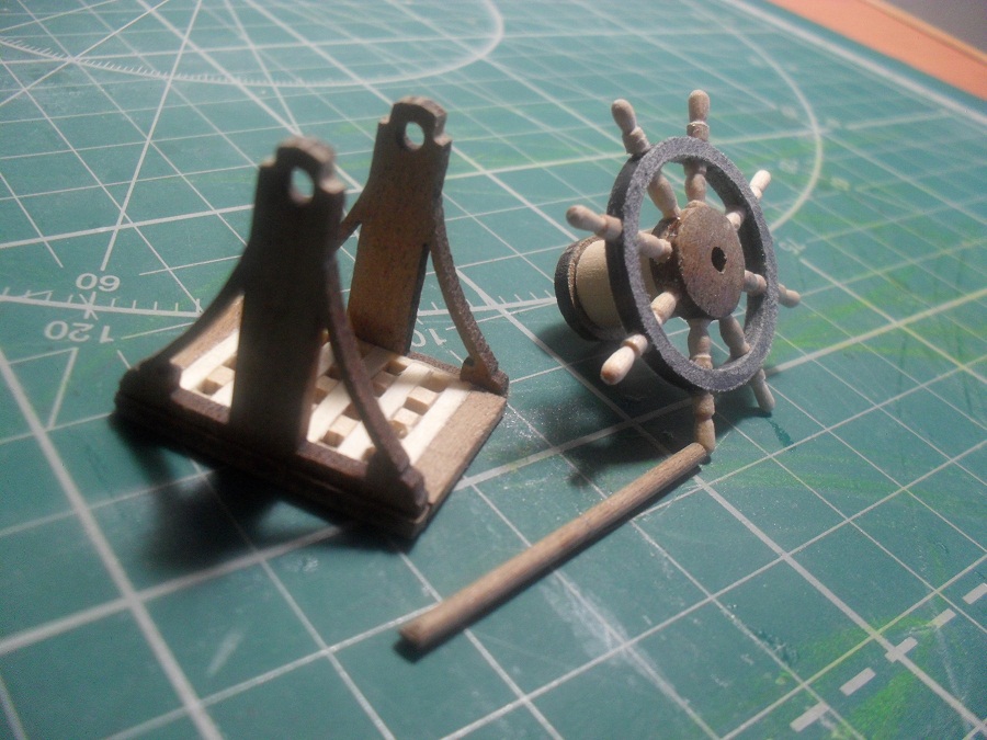 Кницы под нижними галереями размноживал при помощи пластилина (форма для оттиска) и мэджик-скульпта (основной материал). Так же с балясинами верхней галереи. Резные элементы по бокам кормы делал из самшита