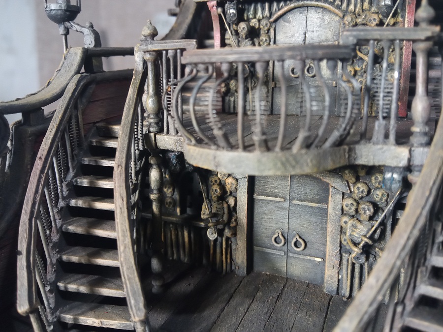 Скелеты на ограждениях (точнее их имитации) из пластиковых зубочисток. По форме похожи. В ленте купил. Переборку второго юта демонтировал, решил переделать