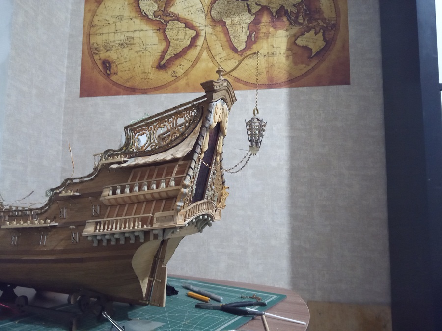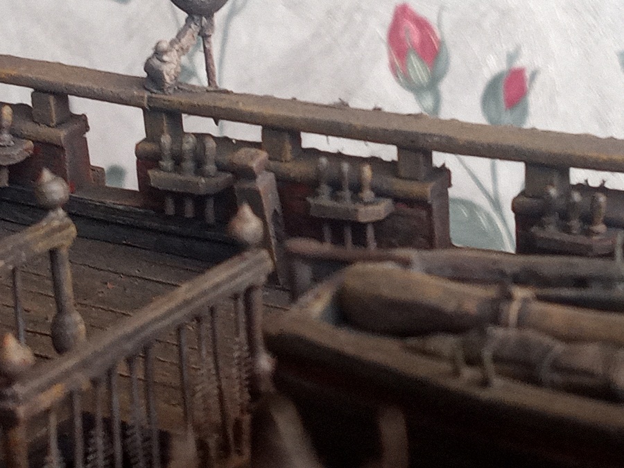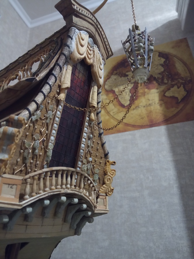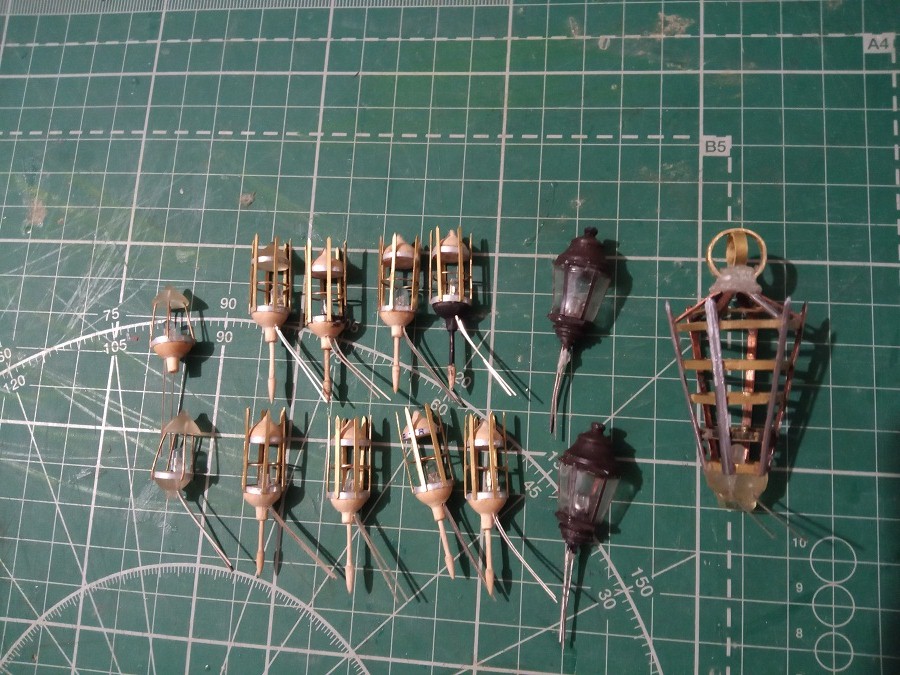 Припаял фонари, примеряю рангоут и артилерию. Стволы пушек лил из эпоксидки