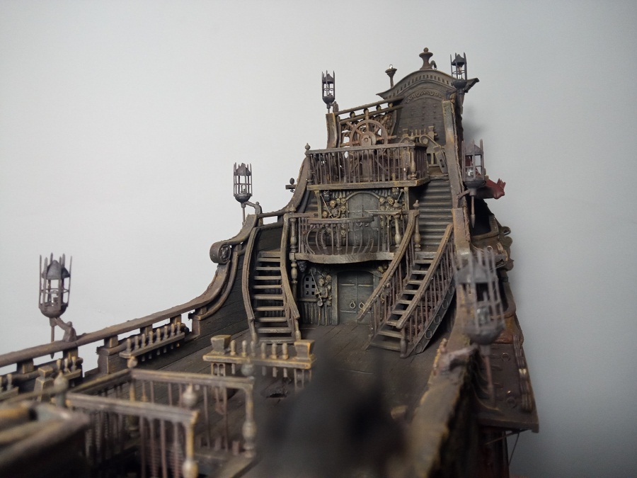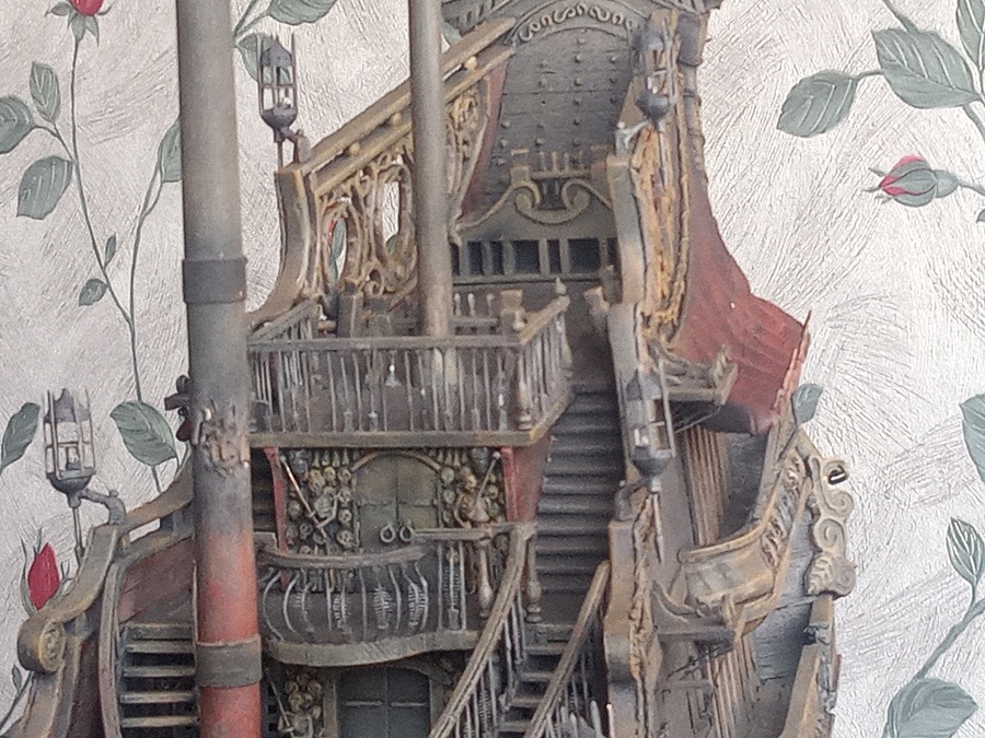 Витраж, декор из скелетов на корме, "занавеска". Примерка кормового фонаря.
