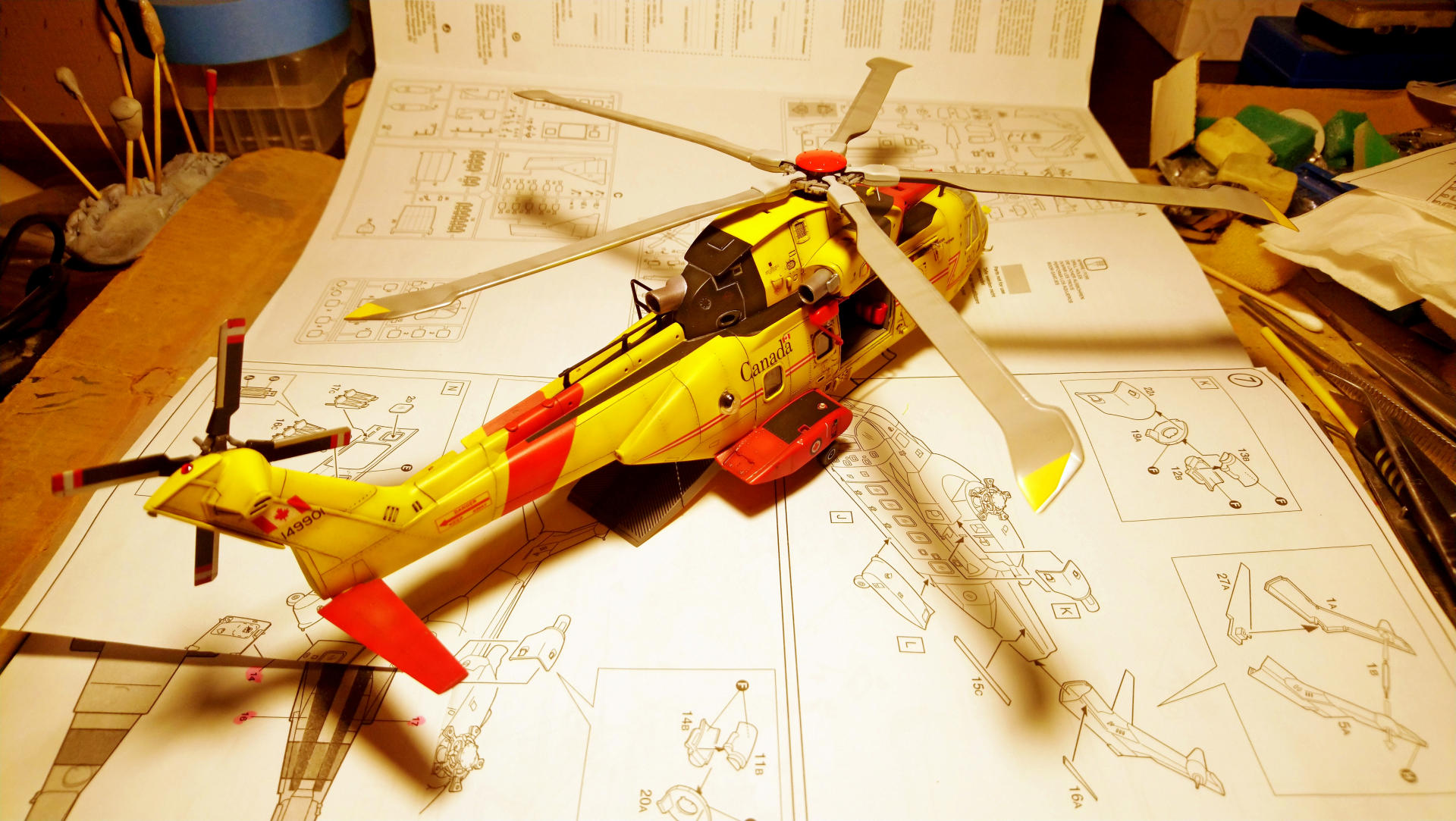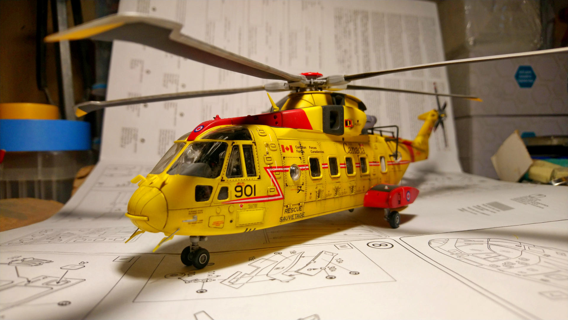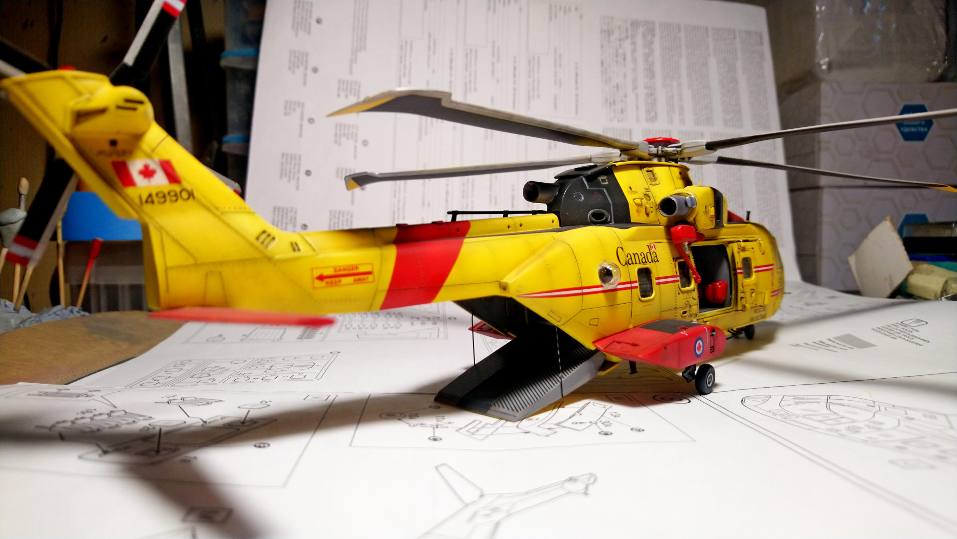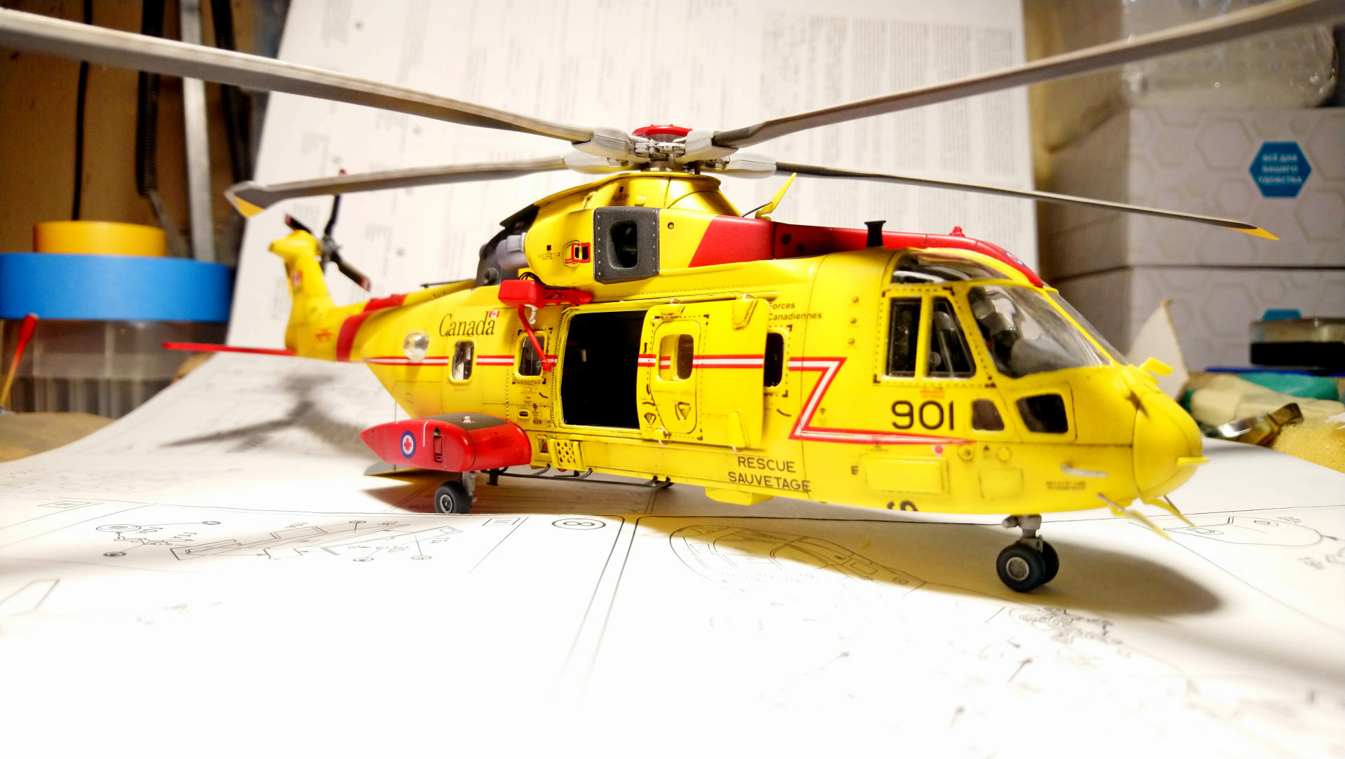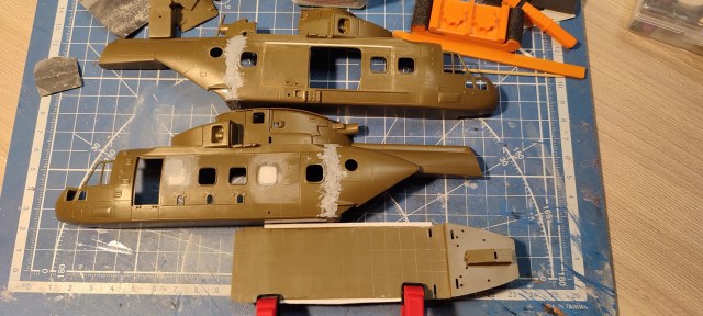 "Мерлина" хотел собрать уже давно, машина интересная, трехдвигательный аппарат с солидным взлетным весом (max - 15600 кг). В процессе покупки модели не акцентировал внимание на модификации, взял то, что было. А был это "Skyfall" от Italeri, представляющий собой вертолет из одноименного фильма, предположительно Merlin HC.3А (не особо вдавался в подробности). Данная модификация меня в корне не устраивала, потому что была для сухопутных сил. Ведь что может быть более интересным, чем корабельные версии вертолетов со складывающимися лопастями НВ и ХБ??? Поэтому было принято решение делать палубную модификацию. Самый известный вариант - противолодочные Merlin HM.1 и HM.2 был отброшен, т.к. есть модель у italeri именно этой версии и пилить "Skyfall" смысла не было. + больше люблю транспортники. Единственное, что осталось (в Британских ВС) - это Merlin HC.4.