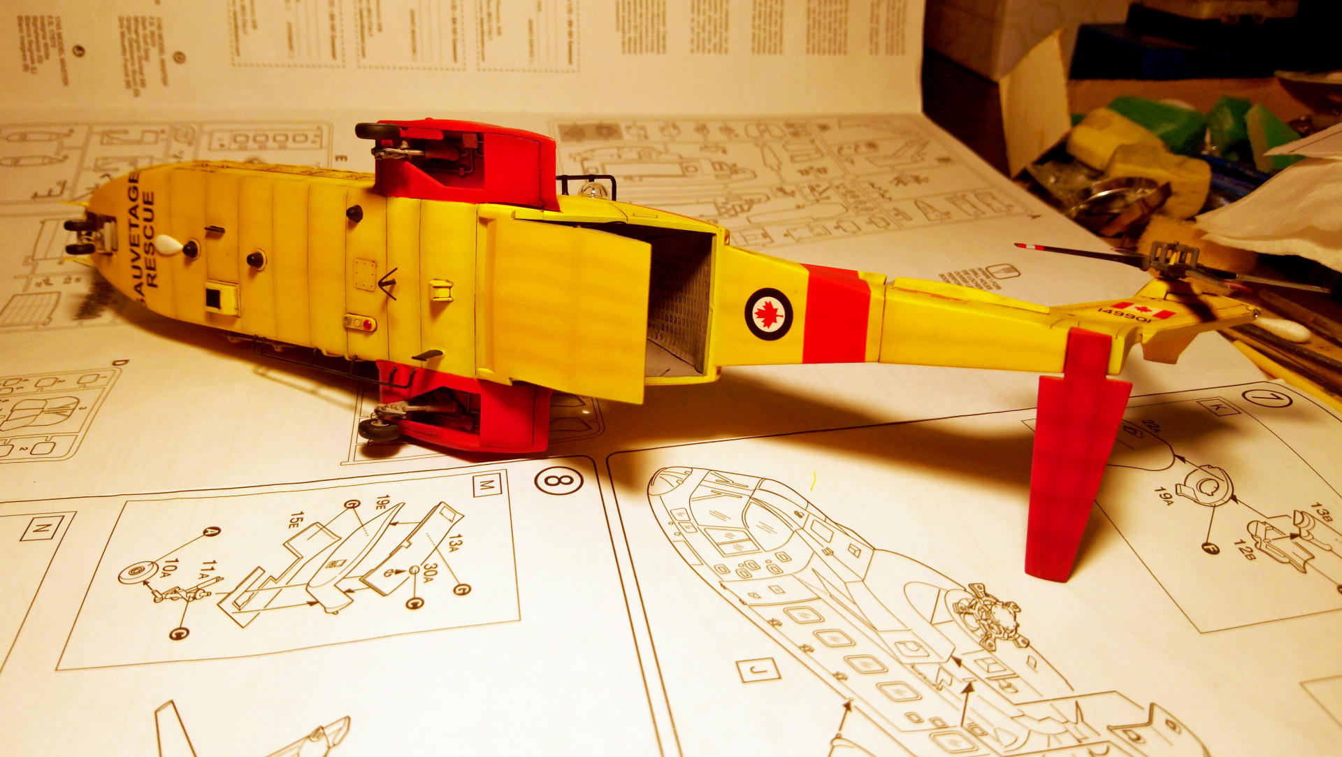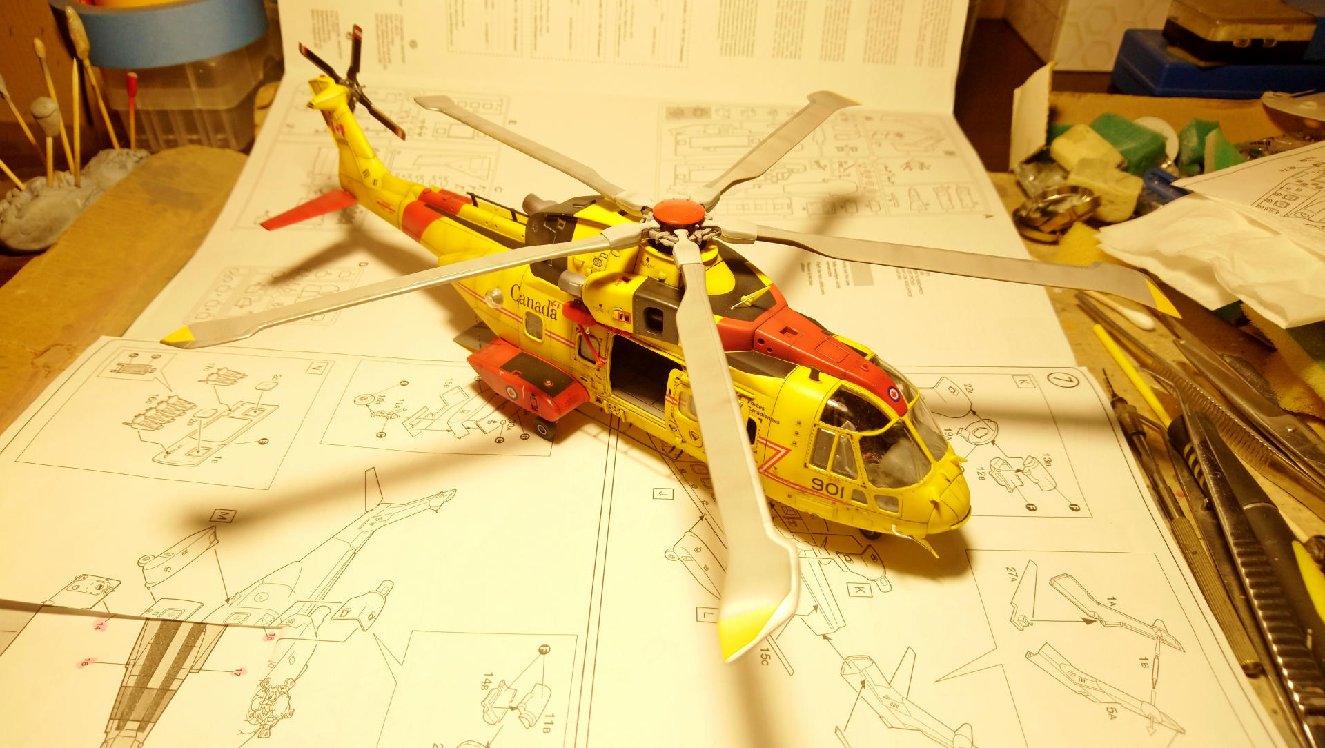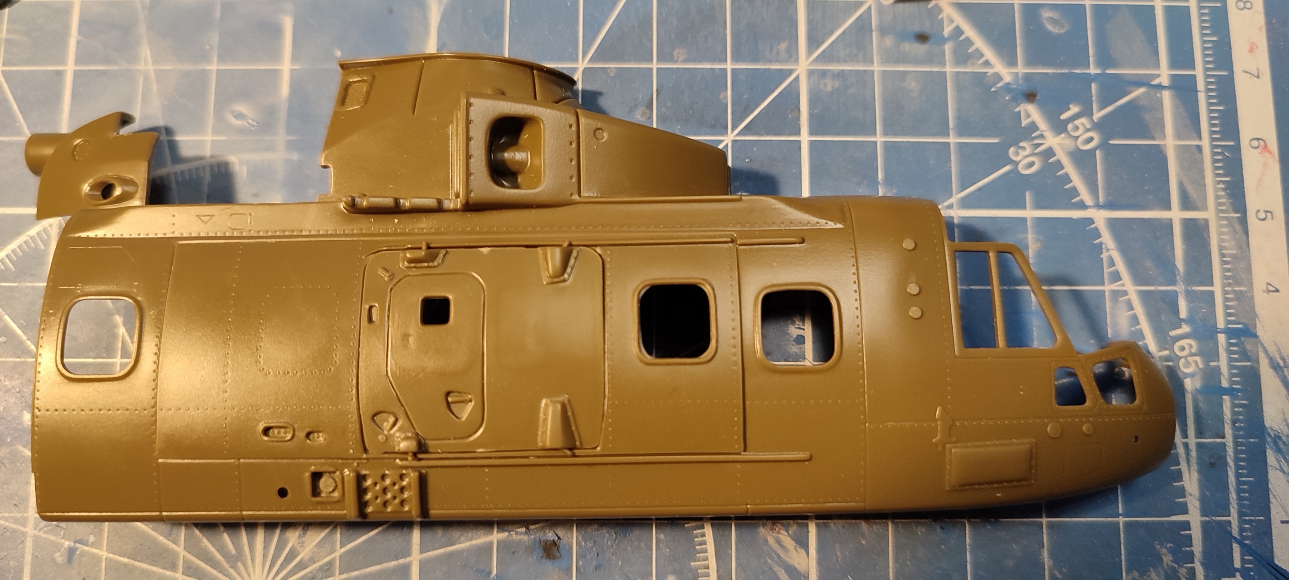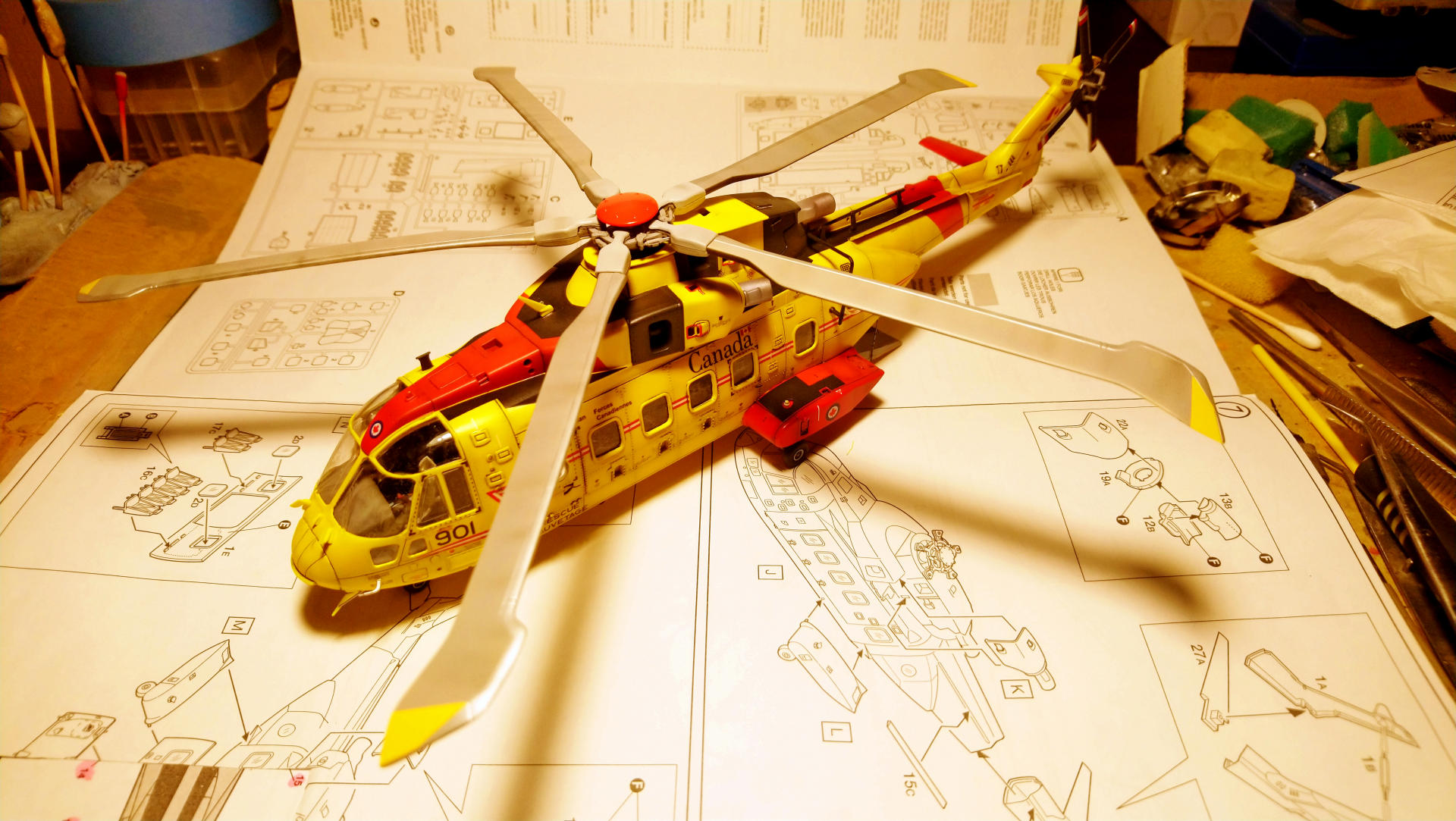 "Мерлина" хотел собрать уже давно, машина интересная, трехдвигательный аппарат с солидным взлетным весом (max - 15600 кг). В процессе покупки модели не акцентировал внимание на модификации, взял то, что было. А был это "Skyfall" от Italeri, представляющий собой вертолет из одноименного фильма, предположительно Merlin HC.3А (не особо вдавался в подробности). Данная модификация меня в корне не устраивала, потому что была для сухопутных сил. Ведь что может быть более интересным, чем корабельные версии вертолетов со складывающимися лопастями НВ и ХБ??? Поэтому было принято решение делать палубную модификацию. Самый известный вариант - противолодочные Merlin HM.1 и HM.2 был отброшен, т.к. есть модель у italeri именно этой версии и пилить "Skyfall" смысла не было. + больше люблю транспортники. Единственное, что осталось (в Британских ВС) - это Merlin HC.4.
