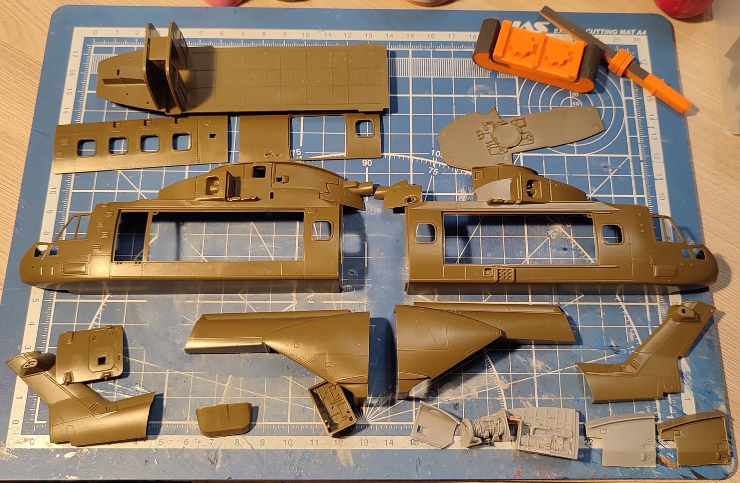 Собственно, доброй ночи. Доделал пол, переделал стенку в кабину экипажа. Вопрос остался по высоте проема, мб потом буду спиливать лишнее, чтобы потолочные панели вровень были. По контуру будут на миллиметр закрывать всё внутренние панели грузовой кабины, поэтому не ровнял. Ими и планирую заняться, духу на кабину экипажа пока не хватает. Ну и загрунтую-покрашу готовое, чтобы работу разнообразить.
