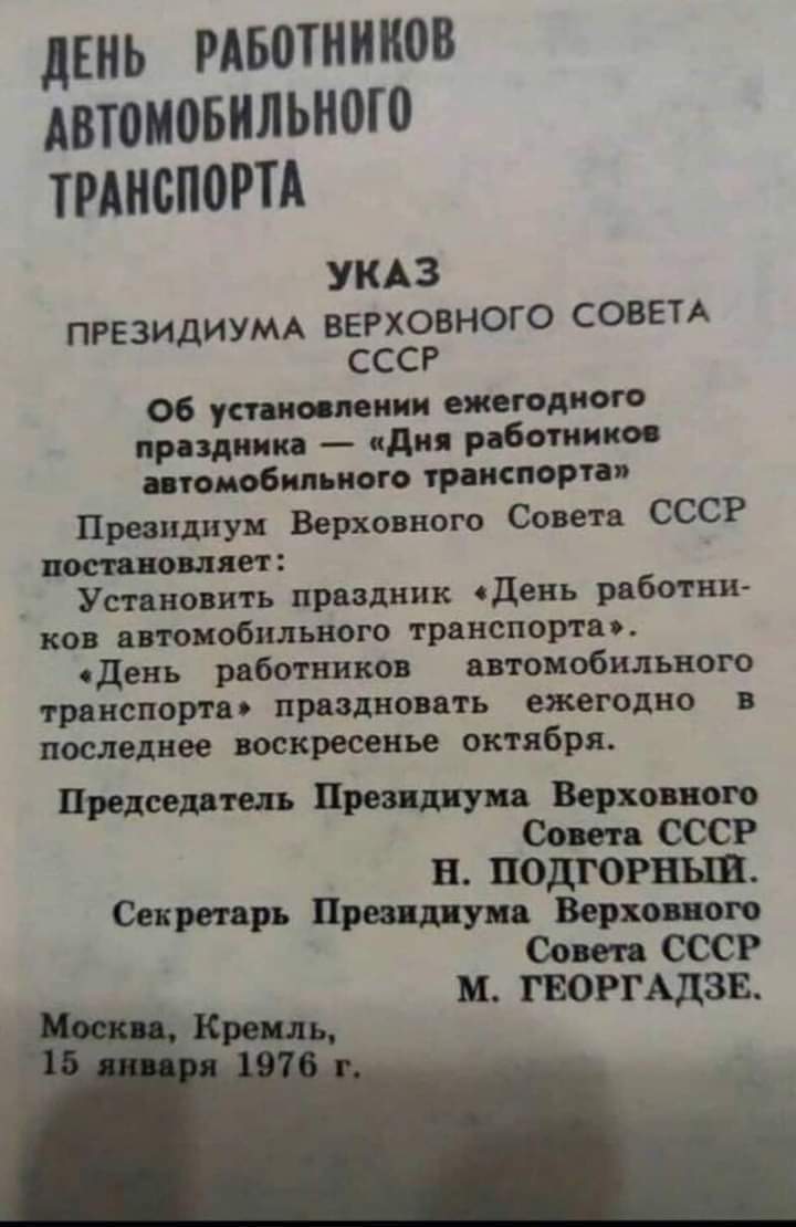 Оба-на! С Праздником всех причастных к этому замечательному Дню!!! Не только, непосредственно работников автотранспорта, но и всех автолюбителей! Так как теперь ,официально, это праздник АВТОМОБИЛИСТА!!! С Праздником, уважаемые коллеги!!!