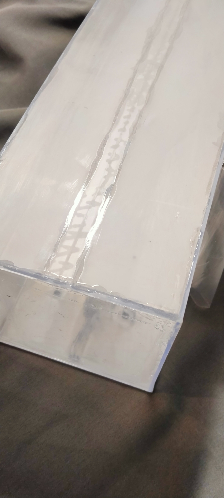 Учитывая предыдущий опыт сборки, прихватывал с начало углы кабины, затем проклеивал весь шов чтоб кромка не убежала.