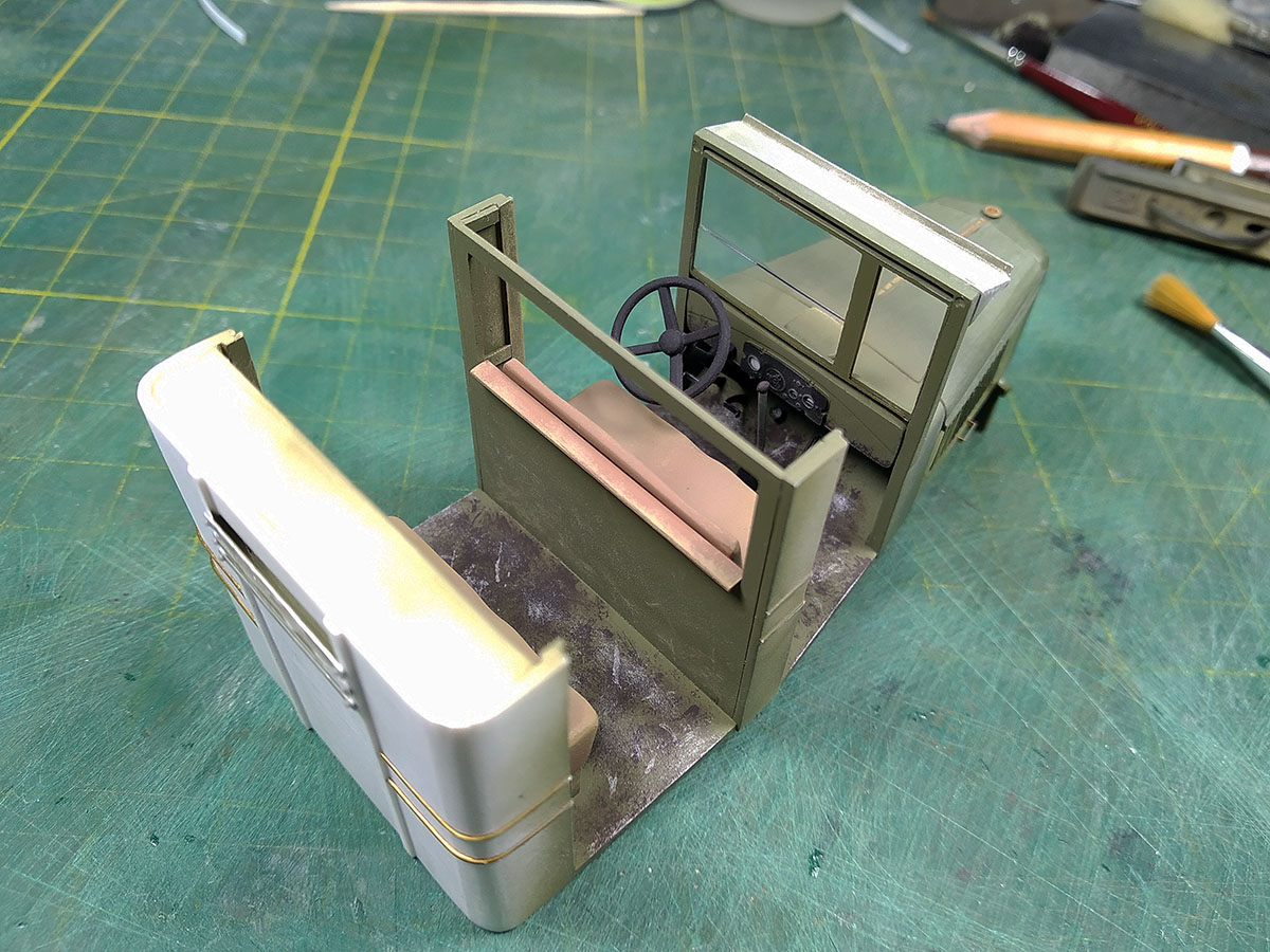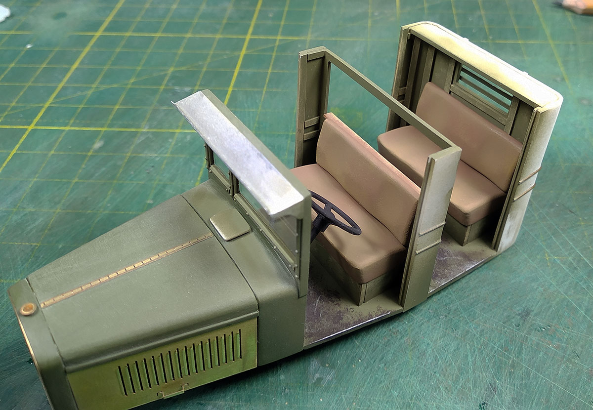 У пожарных Зис 5 пмз двойная кабина сделана более аккуратно,а у учебных досафофских более грубо.Ну и изнутри фото,там вообще деревянная скамья.