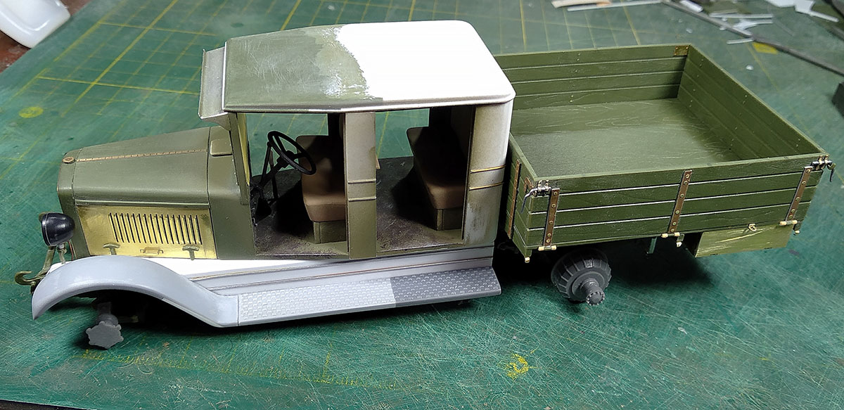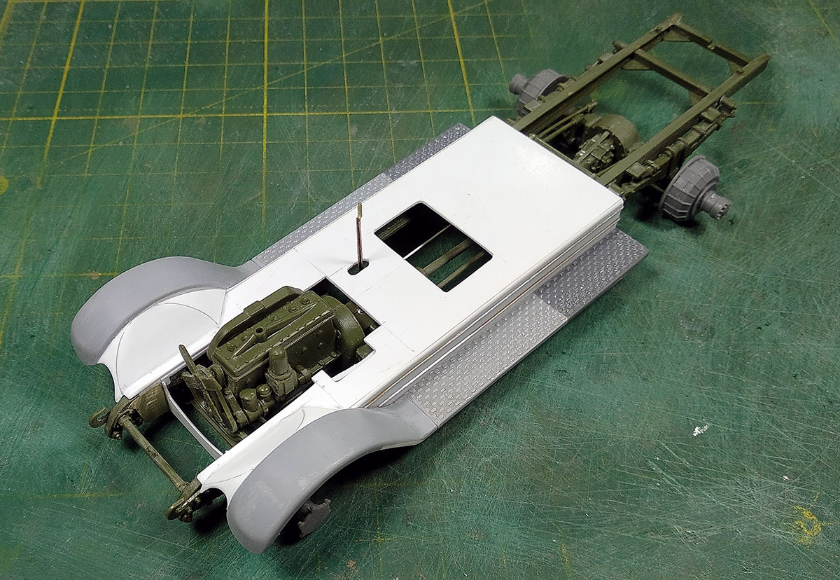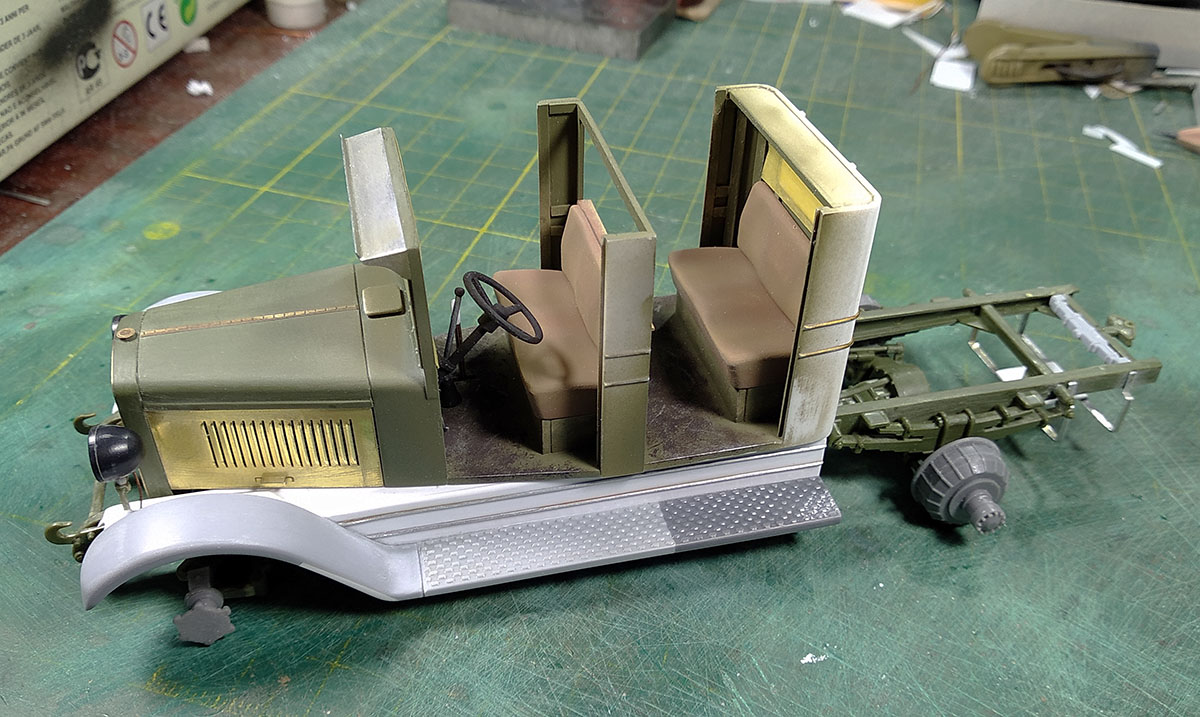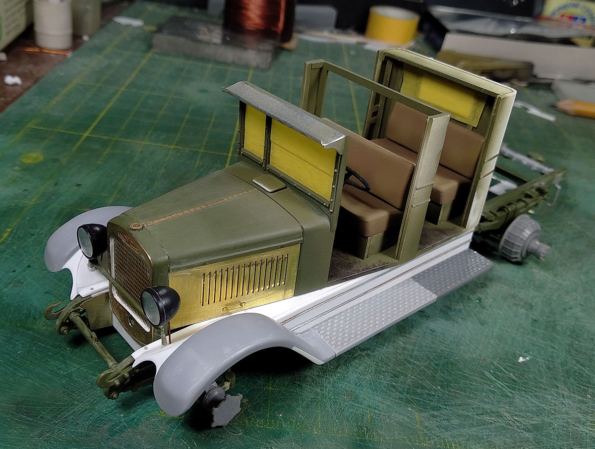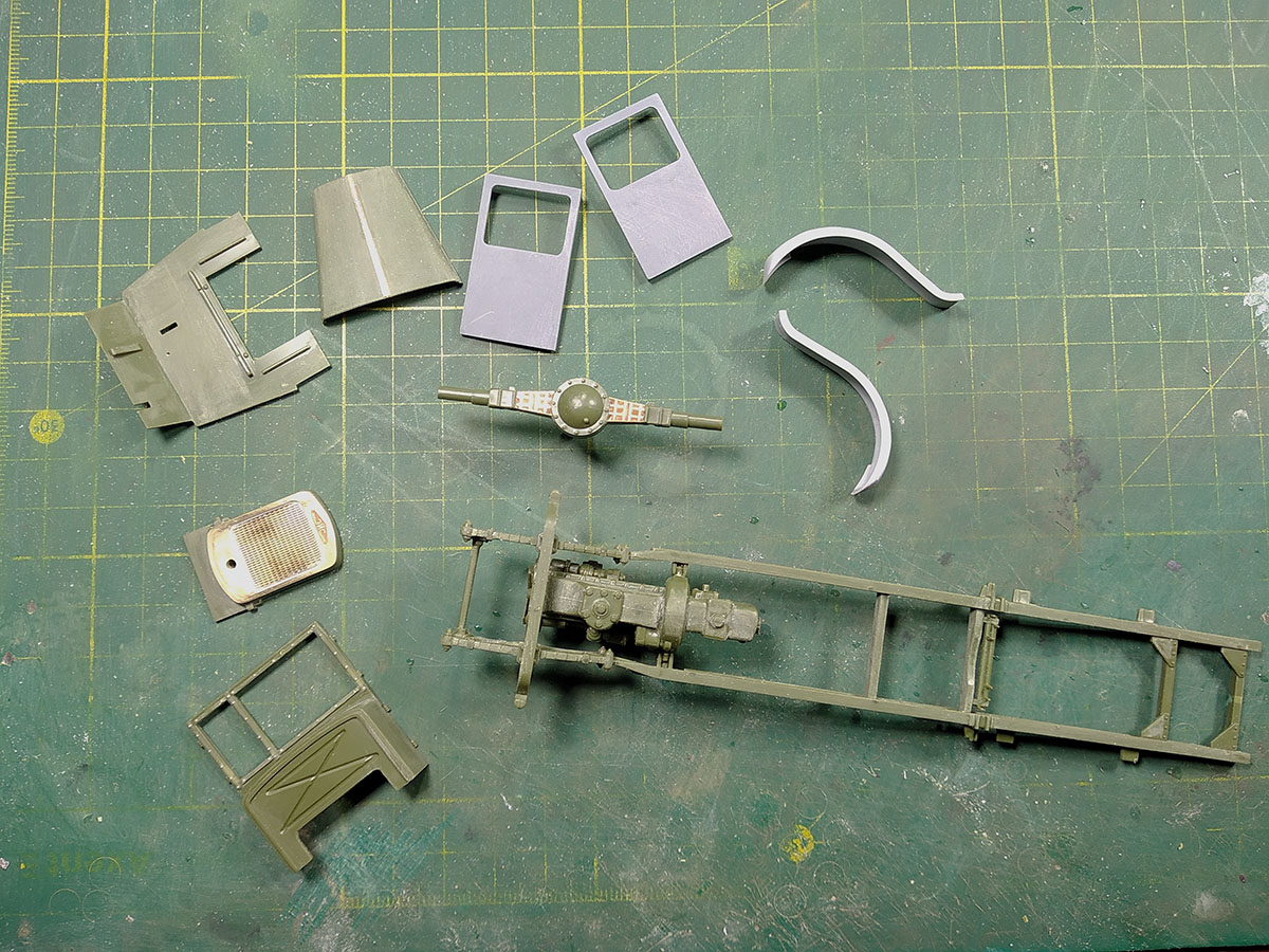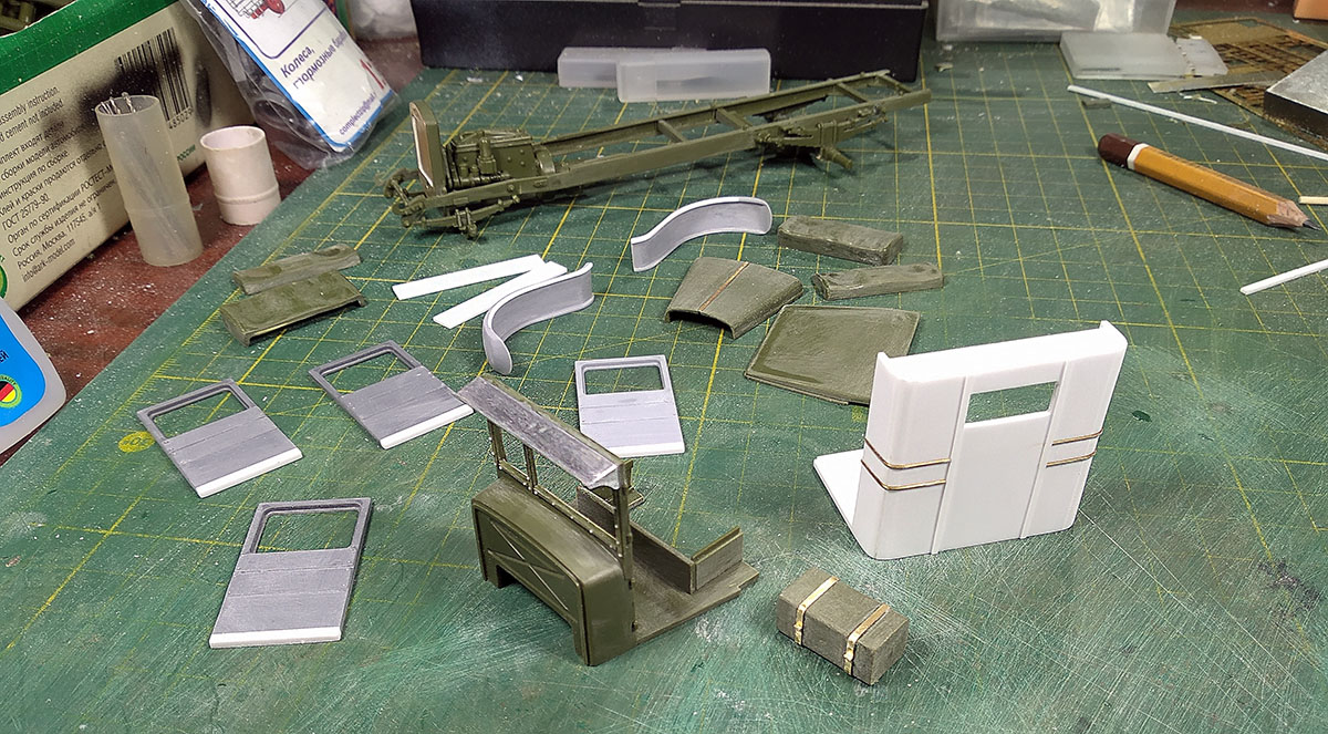 С ходовой закончил, кабина пока на сухую, для примерки. Жаль метизов у меня совсем не осталось. Начнём зачаровывать кузов..