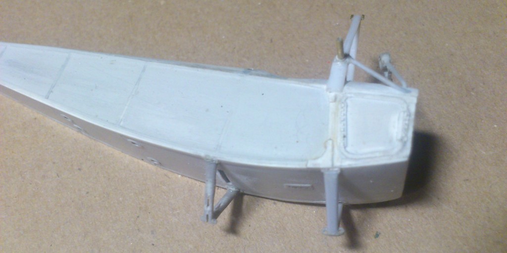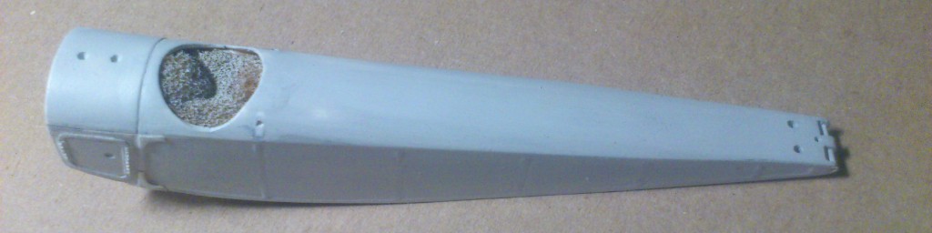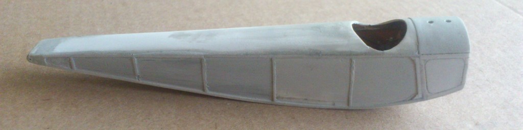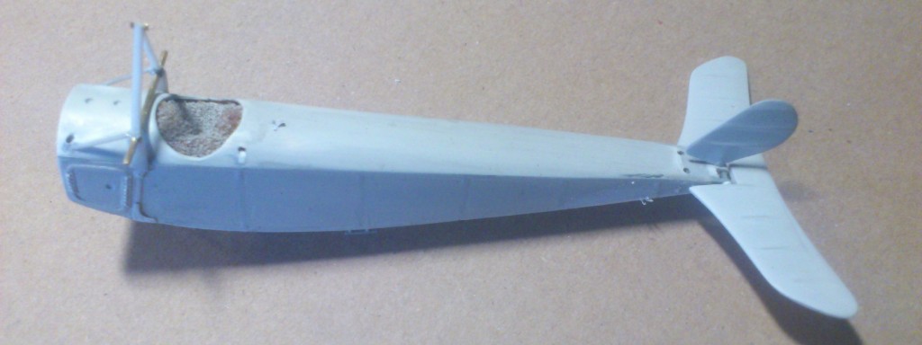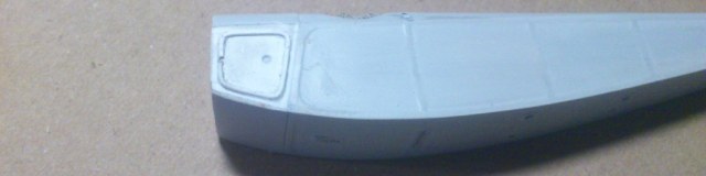 С фюзеляжем всё сложнее, совпала только ширина от капота до кабины. Сначала укоротил фюзеляж, затем склеил и срезал полностью верх заменив его на самодельный. Срезал "щёки" за капотом, выровнил борта, нарастил хвостовую и переднюю части снизу, заделал углубления под плоскости.