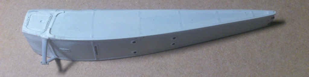 На истребителе Маслов указывает пять панелей, может быть и так, для упрощения технологии. Но думаю швы, если они были, всё же зашпаклёвывылись потому расшивки не видно.
