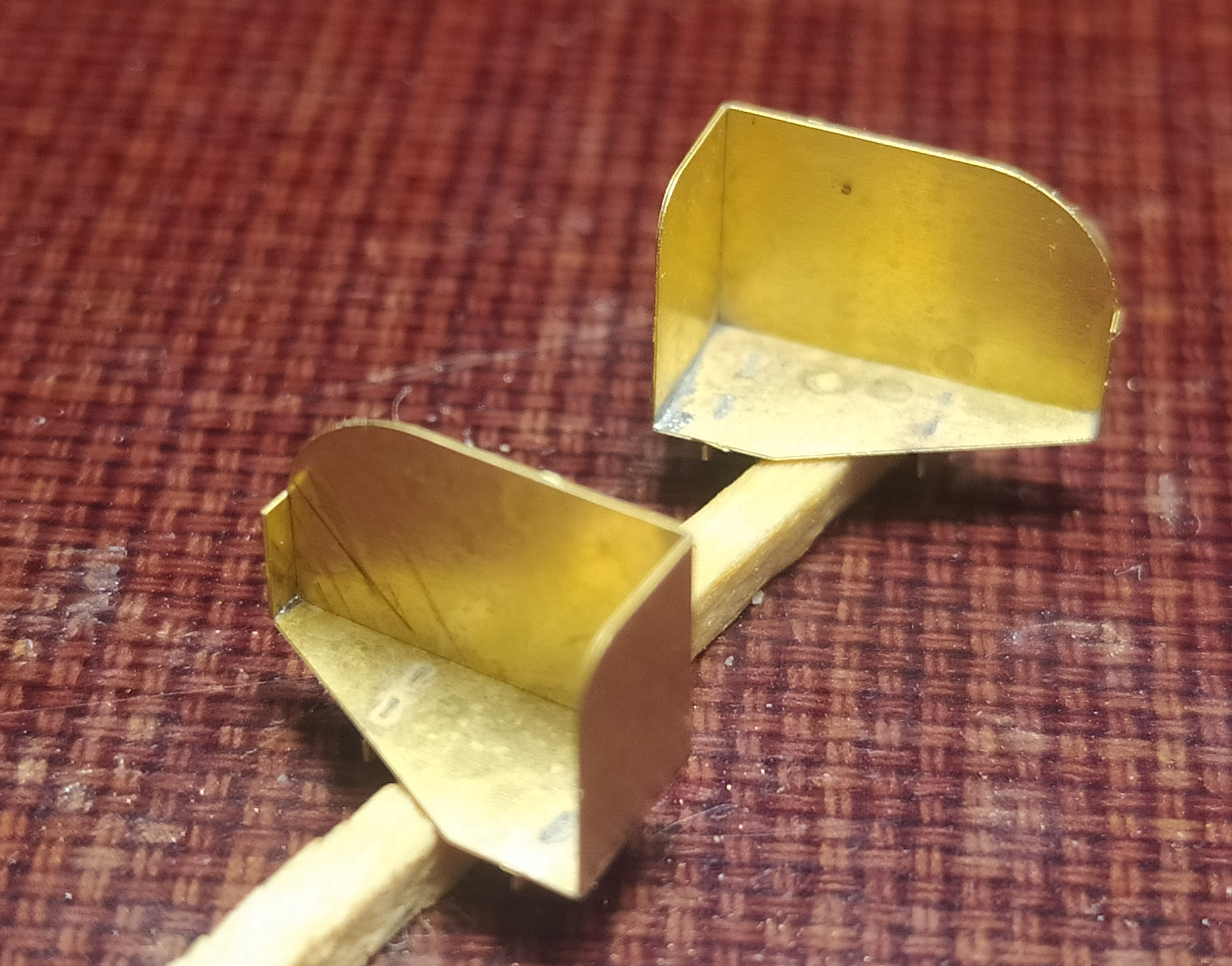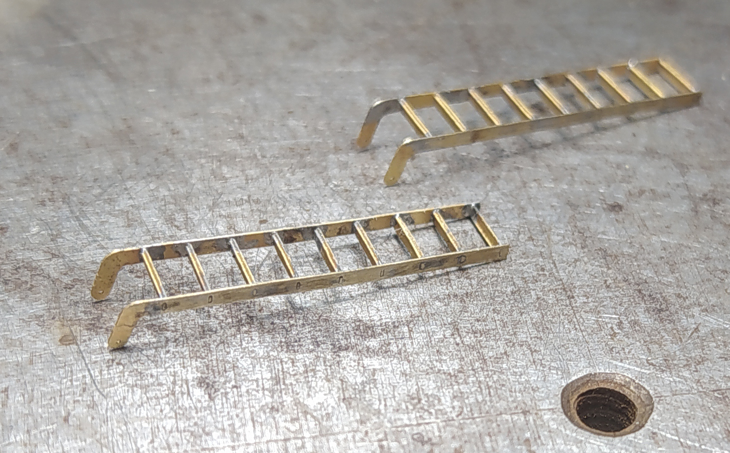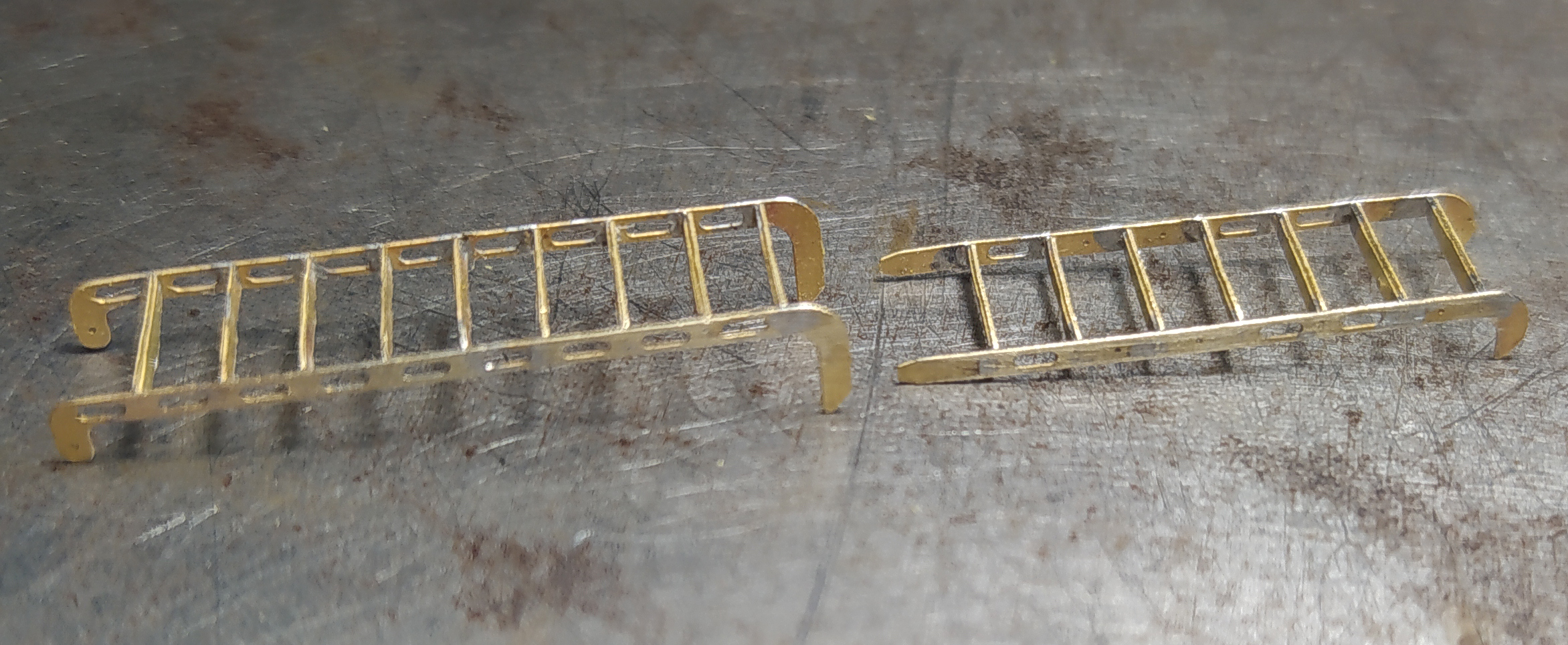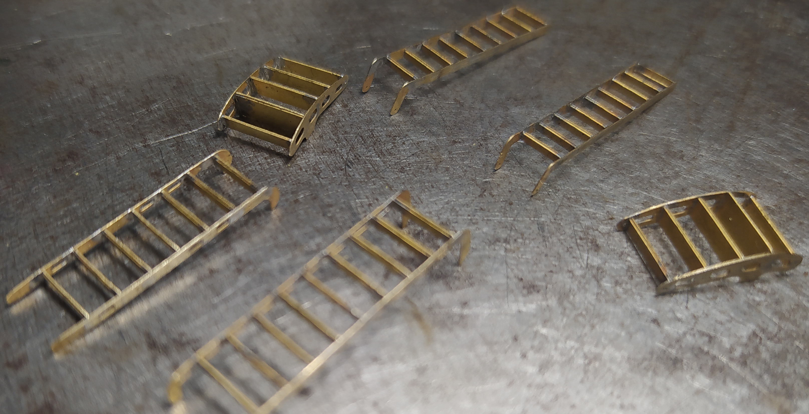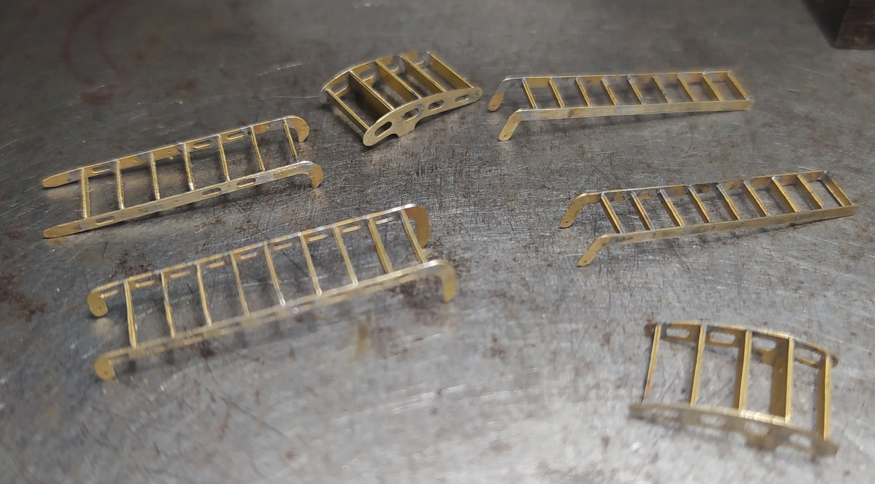 Получилось вполне прилично. Но ничуть не лучше что делал сам. Тем более что гнул все на одной и той же приспособе. Плюс разница по толщине материала. Травло - латунь 0.15. Мои заготовки - никель 0.12. Мелочи, но ближе к масштабу.