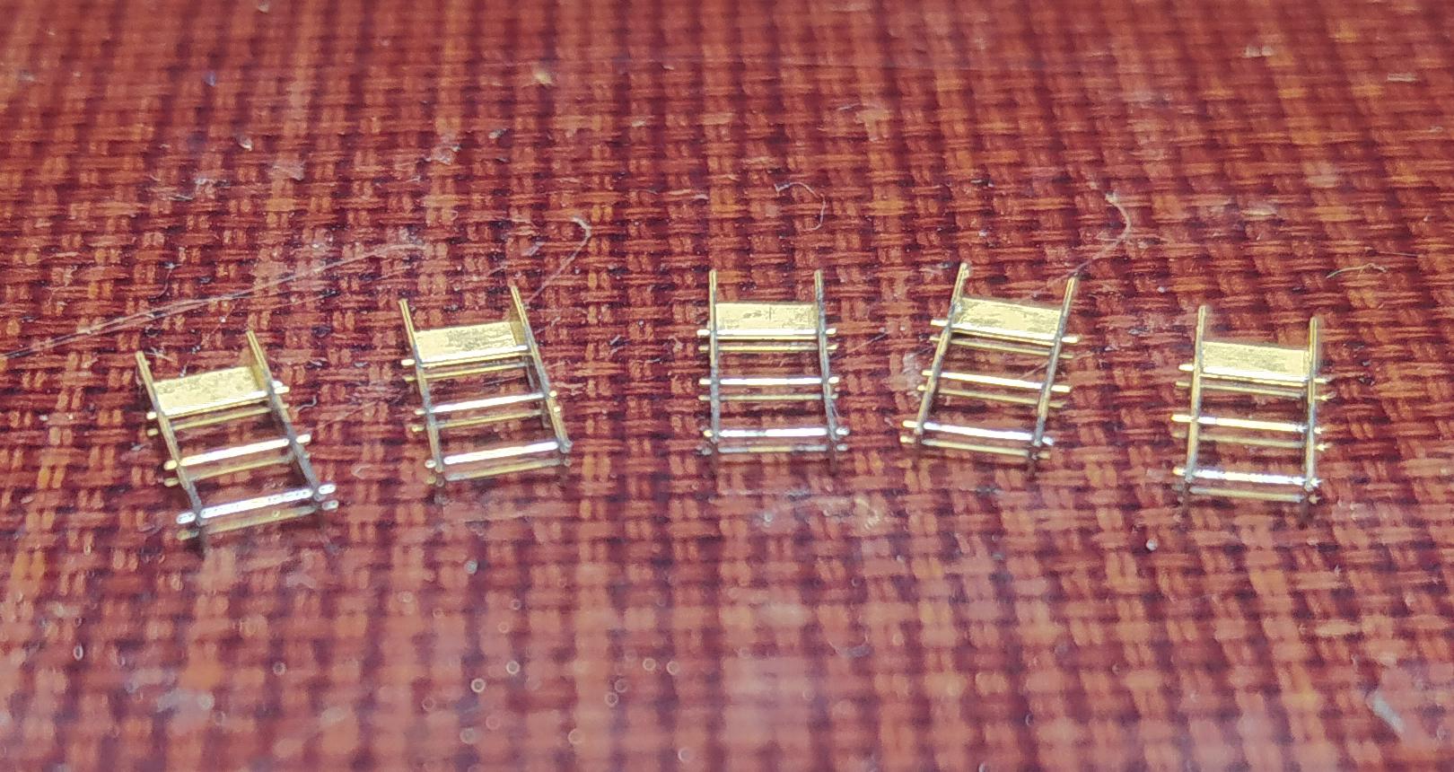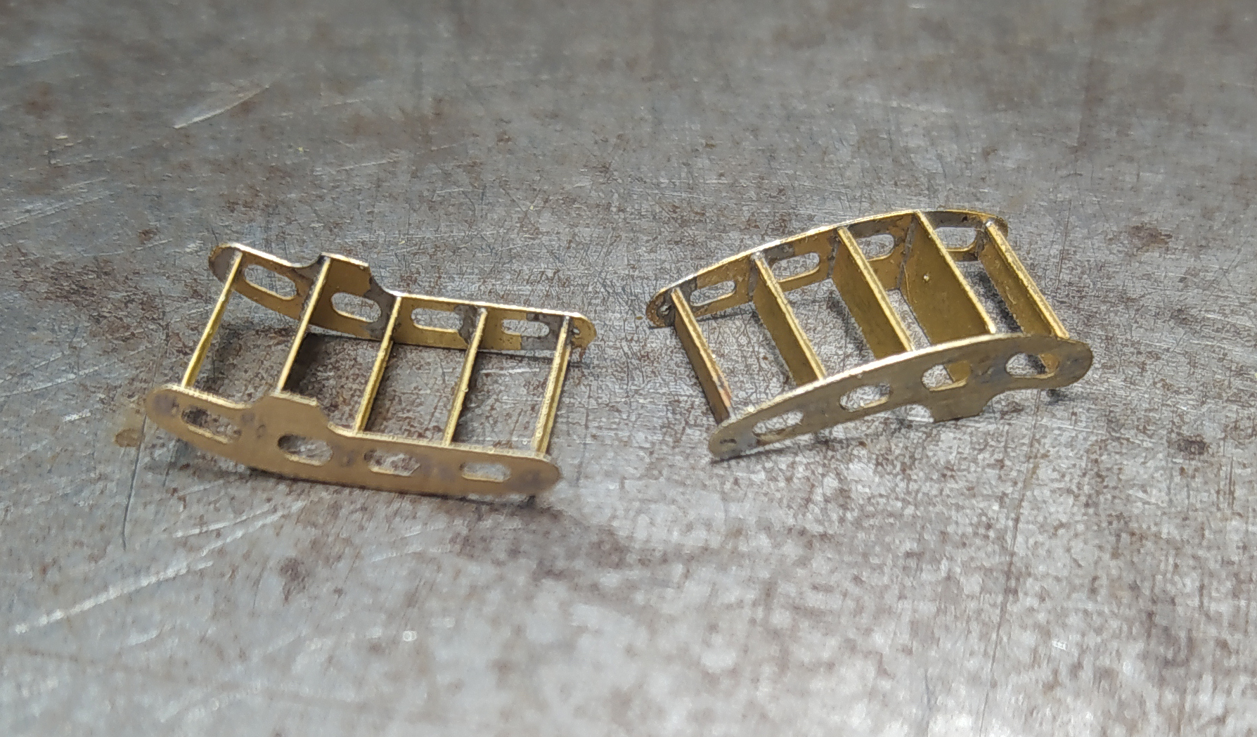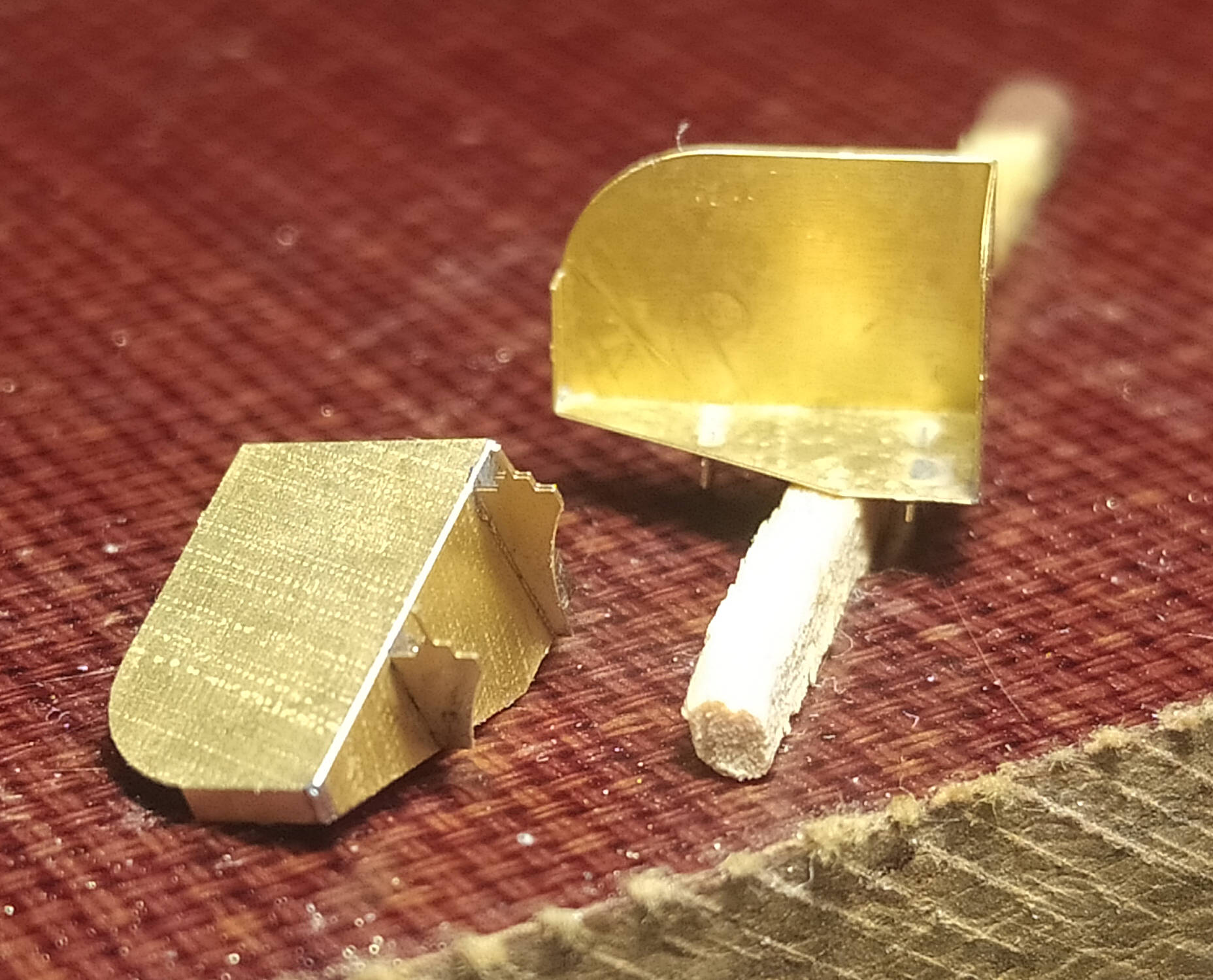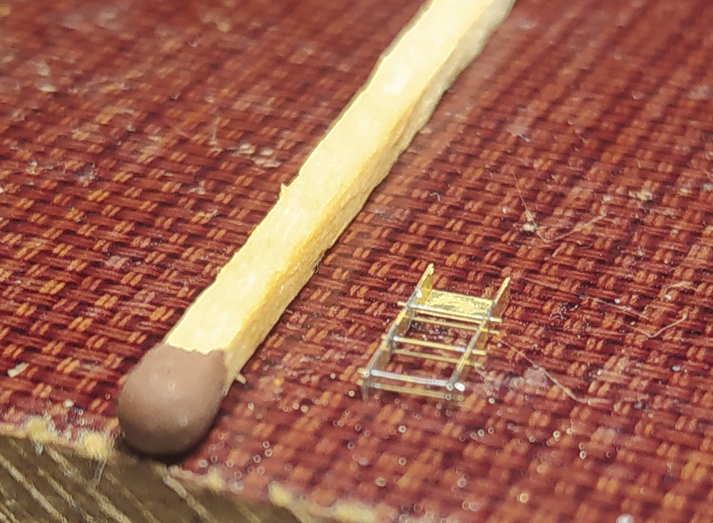 Получилось вполне прилично. Но ничуть не лучше что делал сам. Тем более что гнул все на одной и той же приспособе. Плюс разница по толщине материала. Травло - латунь 0.15. Мои заготовки - никель 0.12. Мелочи, но ближе к масштабу.