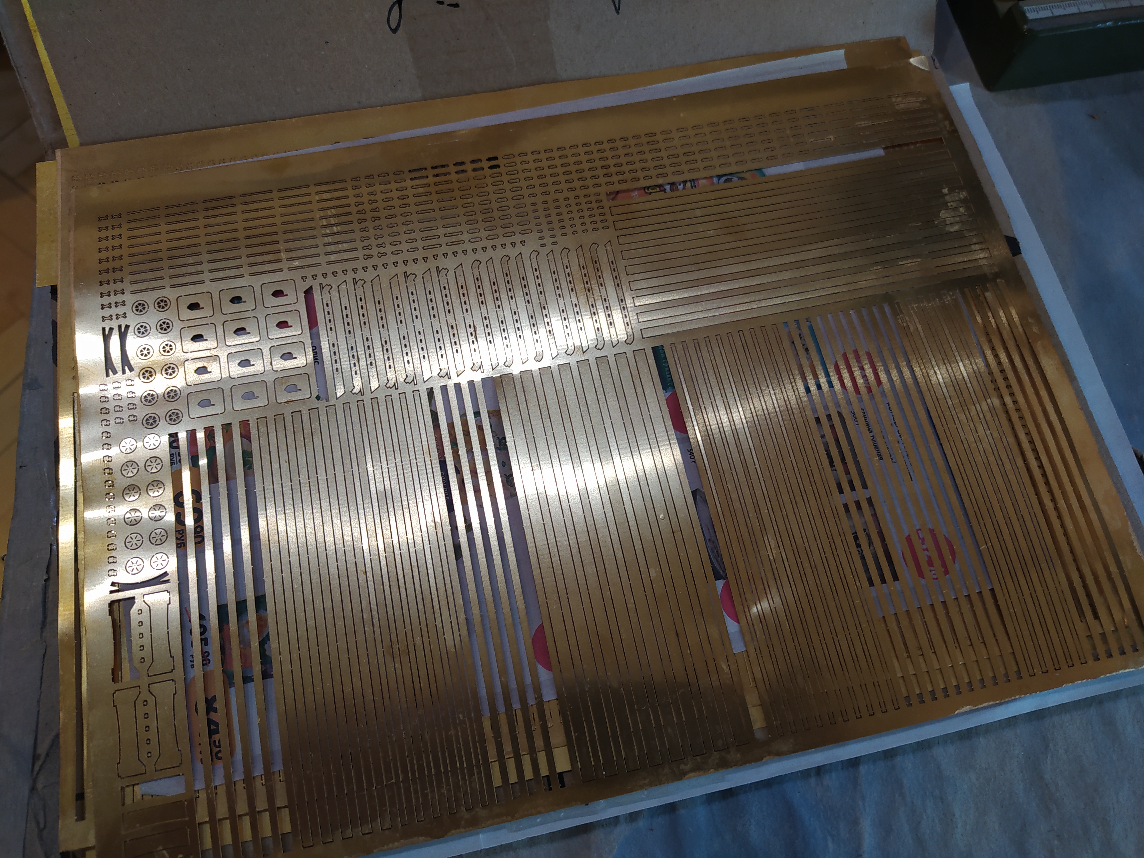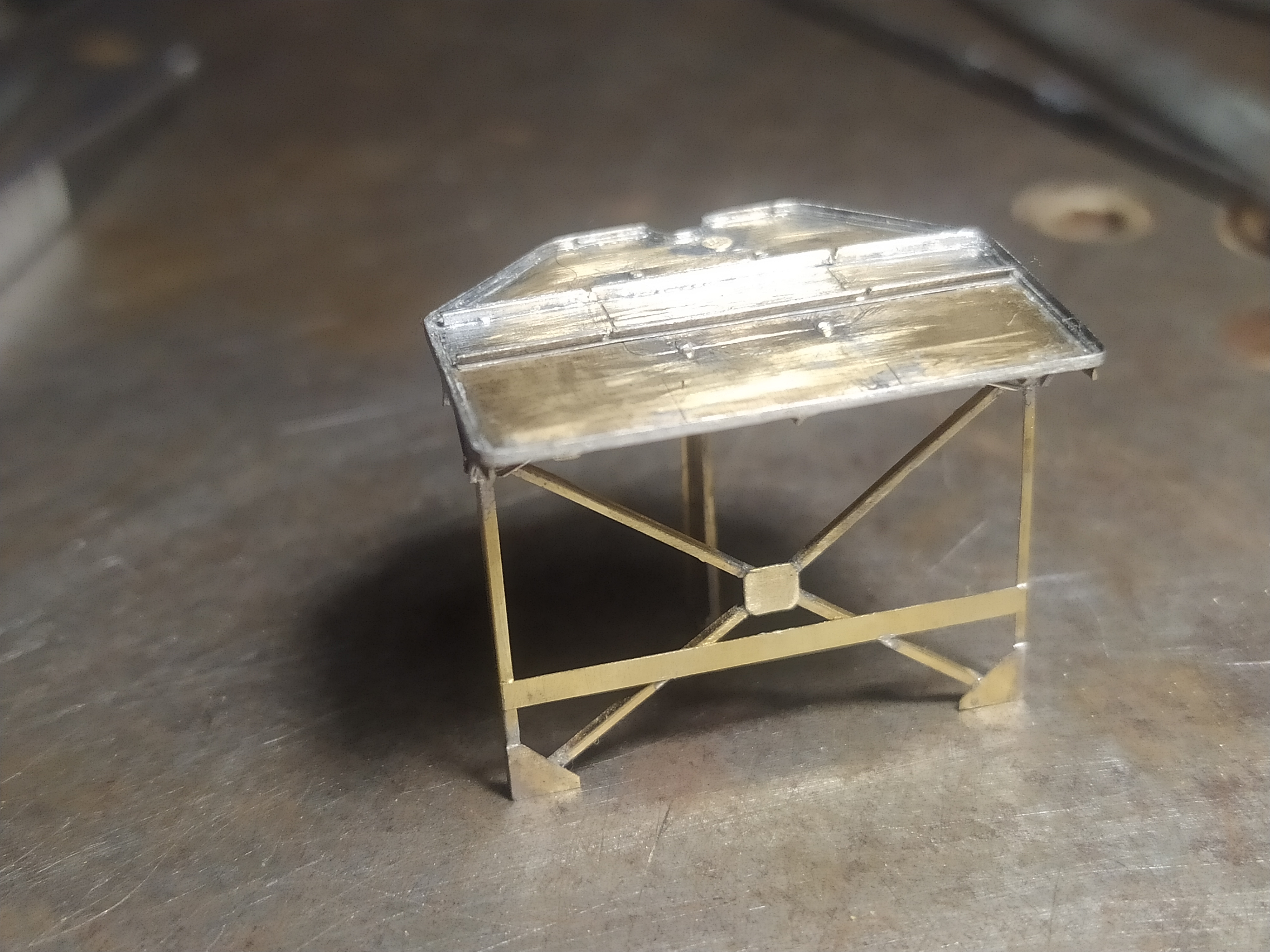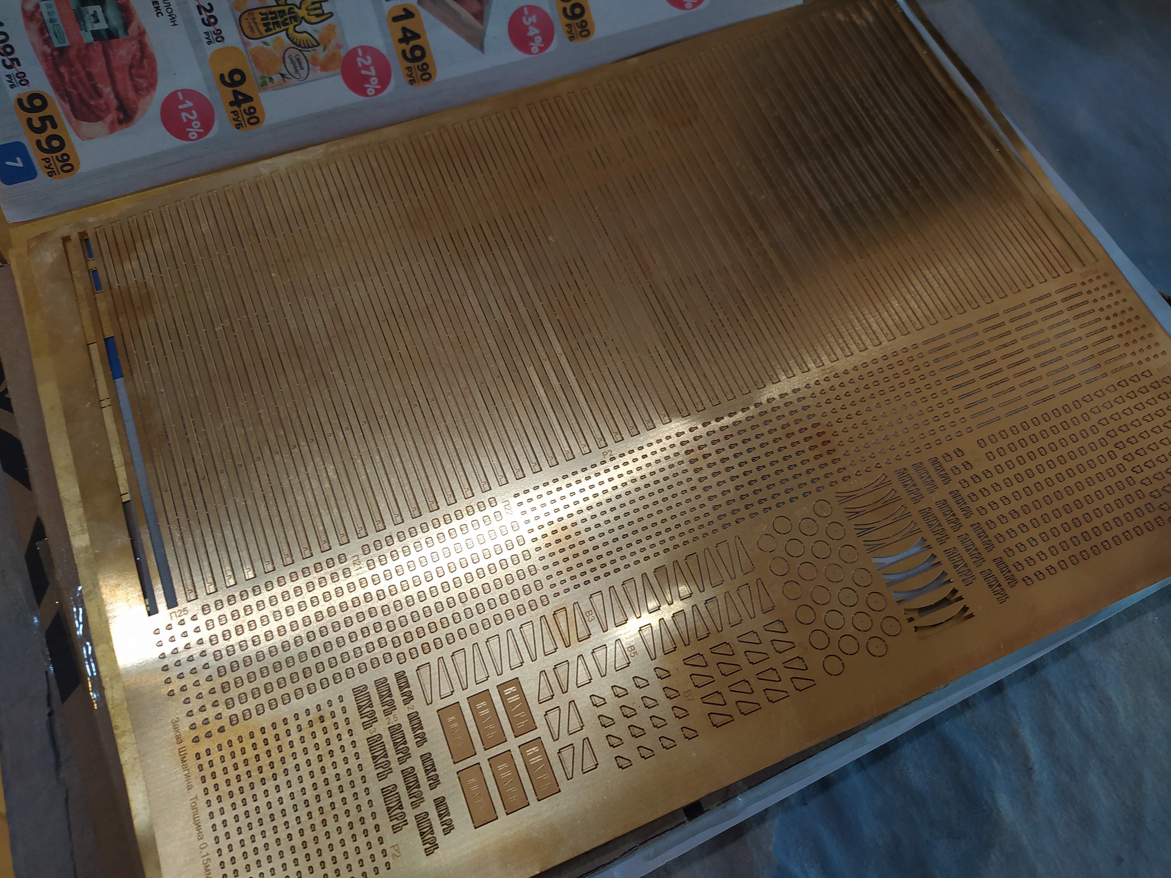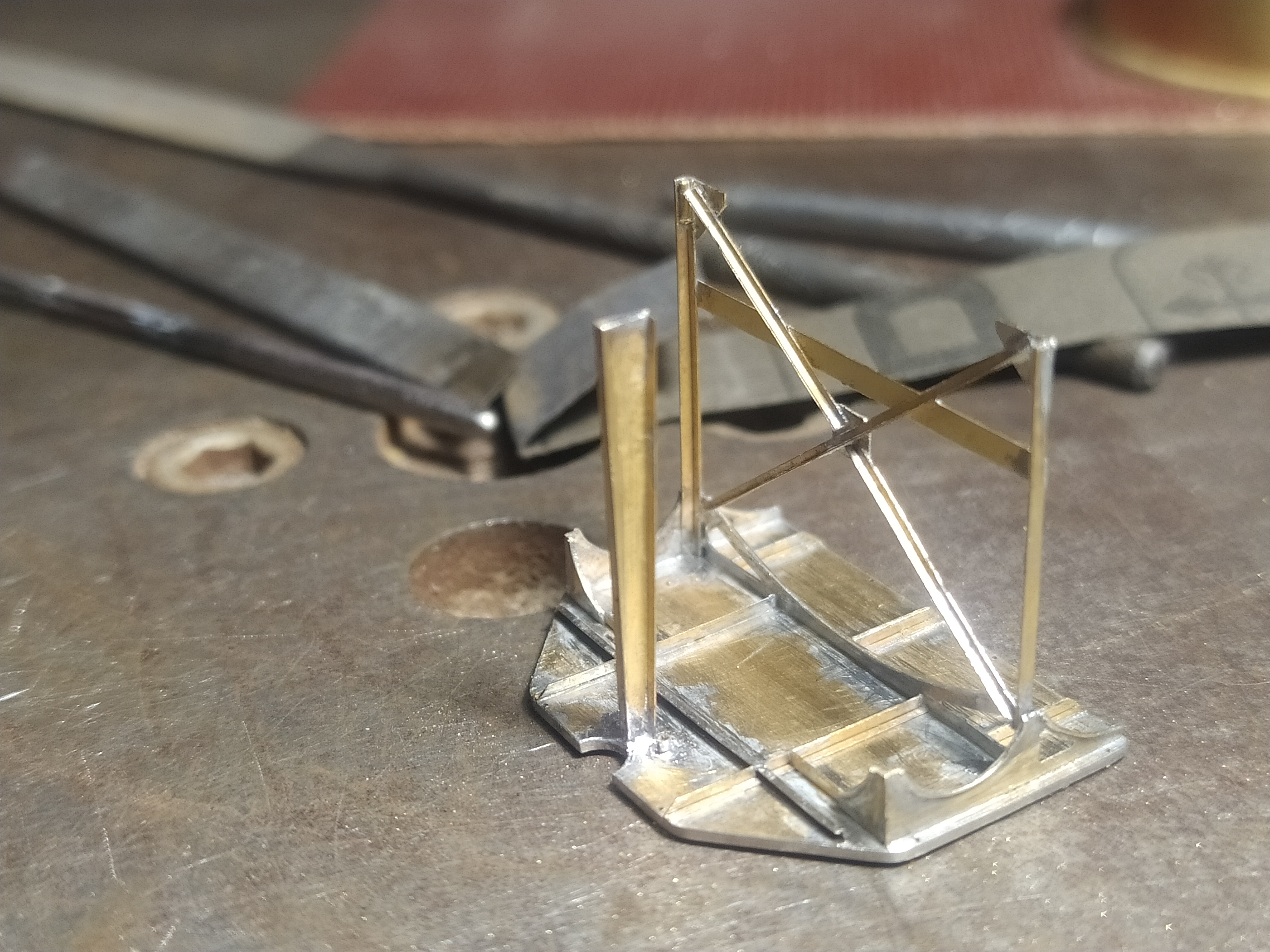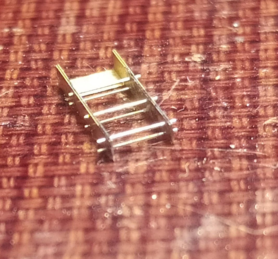 Получилось вполне прилично. Но ничуть не лучше что делал сам. Тем более что гнул все на одной и той же приспособе. Плюс разница по толщине материала. Травло - латунь 0.15. Мои заготовки - никель 0.12. Мелочи, но ближе к масштабу.