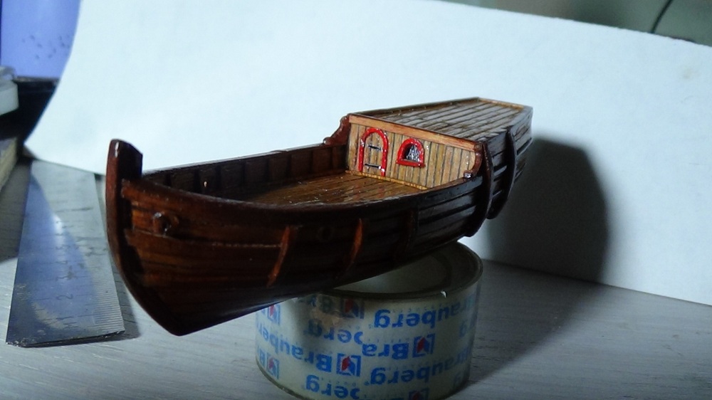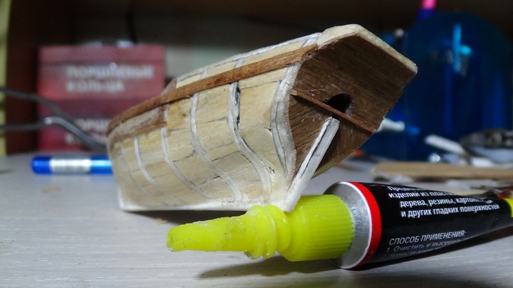 Всем привет ! С последнего отчета о стройке прошла неделя и за это время обшил корпус и палубы и транец модели ...Изготовил и установил бархоуты .. фендерсы...якорный клюз и пушечный порт...Покрыл тонким слоем матовым лаком - которым пользовался неоднократно - и он неожиданно дал глянец ! Буду надеяться что это пройдет в процессе дальнейшей стройки ...