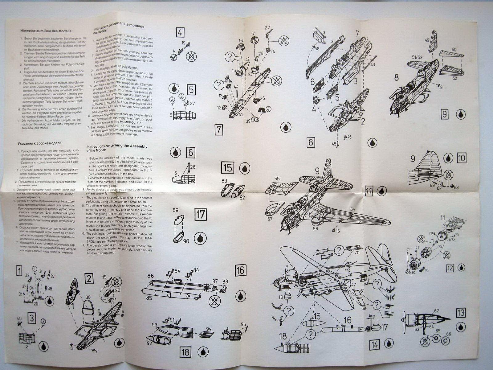 Эта громадная коробка давно у меня лежала, только недавно дошли руки взяться, и, честно говоря, набор разочаровал (буду пояснять по ходу дела). Конечно, почивший Пластикарт никогда не отличался изысканностью проработки, но его последние модели 1:72 выглядели внешне достаточно цивилизованно, особенно Ил-4. Но, увы... Взять хотя бы даже инструкцию, на которой мало что можно разглядеть: