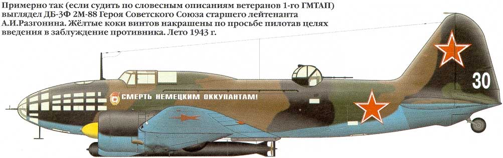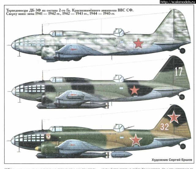 И далее, если пытаться сделать трехцветный верхний камо, то голубой низ никак "не катит". Когда в июле 43-го был введен трехцвет для окраски верха, низ красили черным сразу на заводе, т.к. самолеты предполагались для пополнения АДД в первую очередь, а уж ВМФ доставалось то, что есть. Если за основу брать голубой низ, то тогда это либо машины довоенного выпуска, или первого года войны, а верхний камо в этом случае только черно/зеленый.