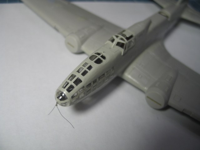 В процессе работы с носовой частью приходим к необходимости подгонять и самый передний блистер. Но монтировать на данном этапе ШКАС - очень не в тему! Будет мешать, сломается и т.д.