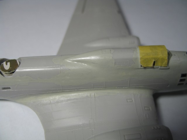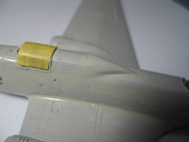 Конечно, каждый сам себе "Главный технолог" в своем домашнем "авиазаводе", но не стоило торопиться с вклеиванием верхних стекляшек носовой части. Надо бы сначала склеить фюзеляж и боковинки остекления, после чего придать оживальную форму кабине штурмана. И это можно было бы сделать. Натфель, шпаклевка и т.д. Наружная расшивка в носовой части при этом пропадет, но что поделаешь. А вот дальше, да, начиная с кабины пилота верхняя часть фюзеля будет немного угловатой. Это в принципе тоже можно "вылечить", но не впишется "родной" козырек пилота, у него конфигурация уже с учетом "угловатости" верха фюзеляжа.