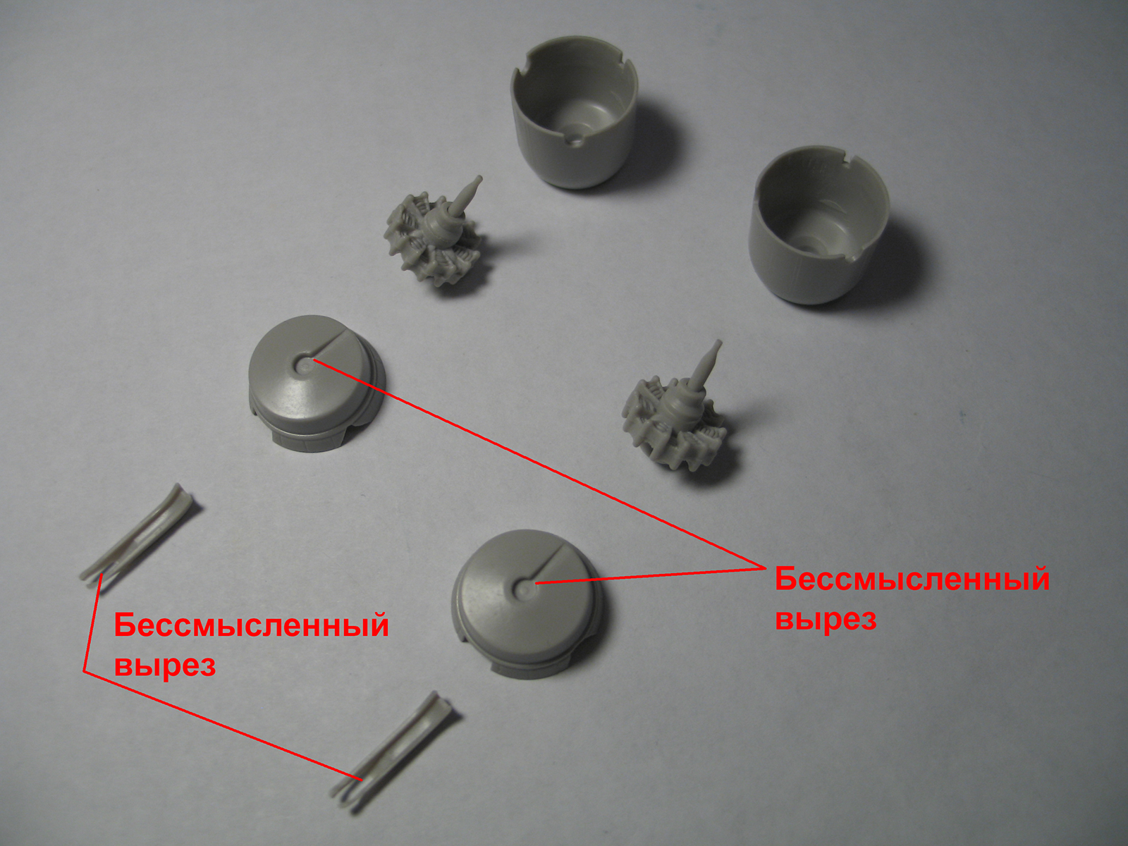 Далее соберём моторы (странные прорехи в воздухозаборниках маслорадиаторов придётся зашпаклевать):