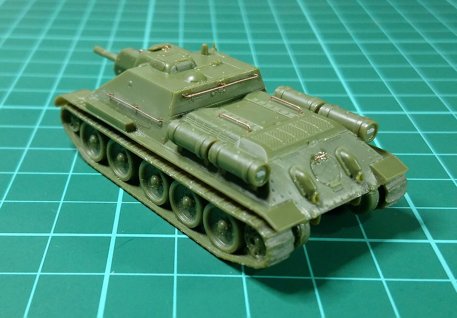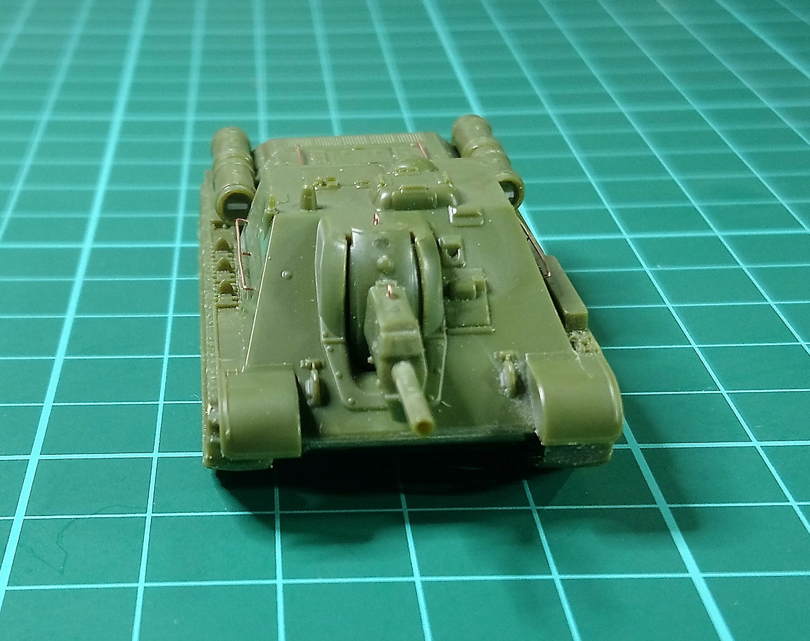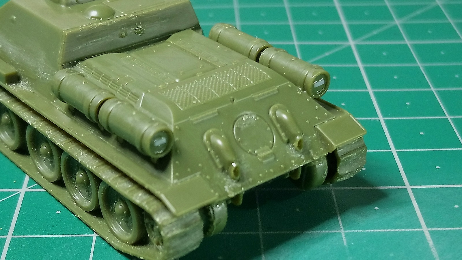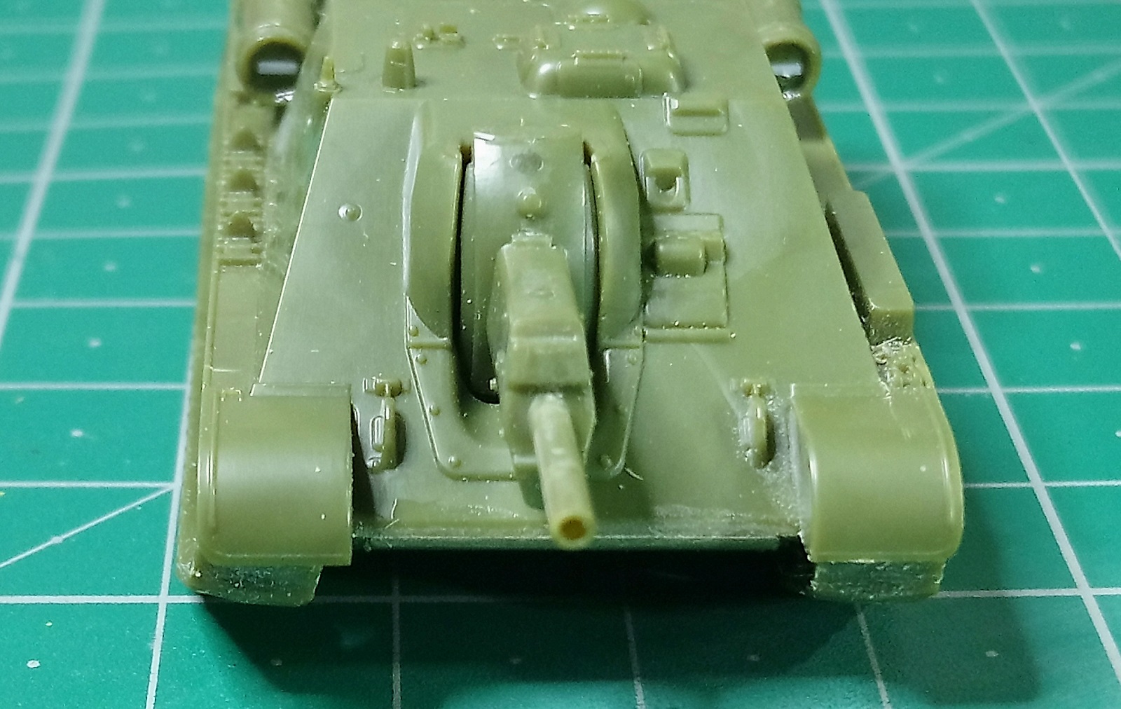 Итак. После мучительной зачистки всех деталей, начал доработку модельки. Сначала просверлил ствол орудия и выделил гребни на гусеницах. Срезал все имитации поручней на корпусе и башне. Далее облагородил выхлопные трубы. После той пародии, они стали похожи на трубы. Переделал все топливные баки. На фото видно, какие они теперь стали.