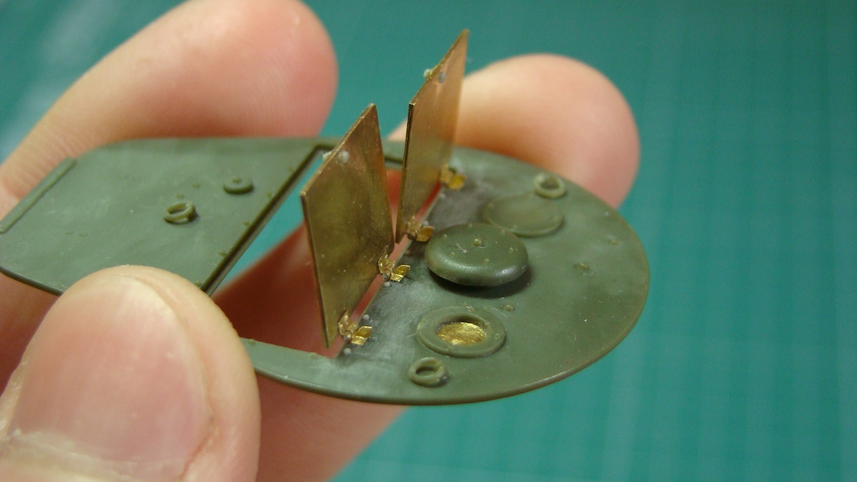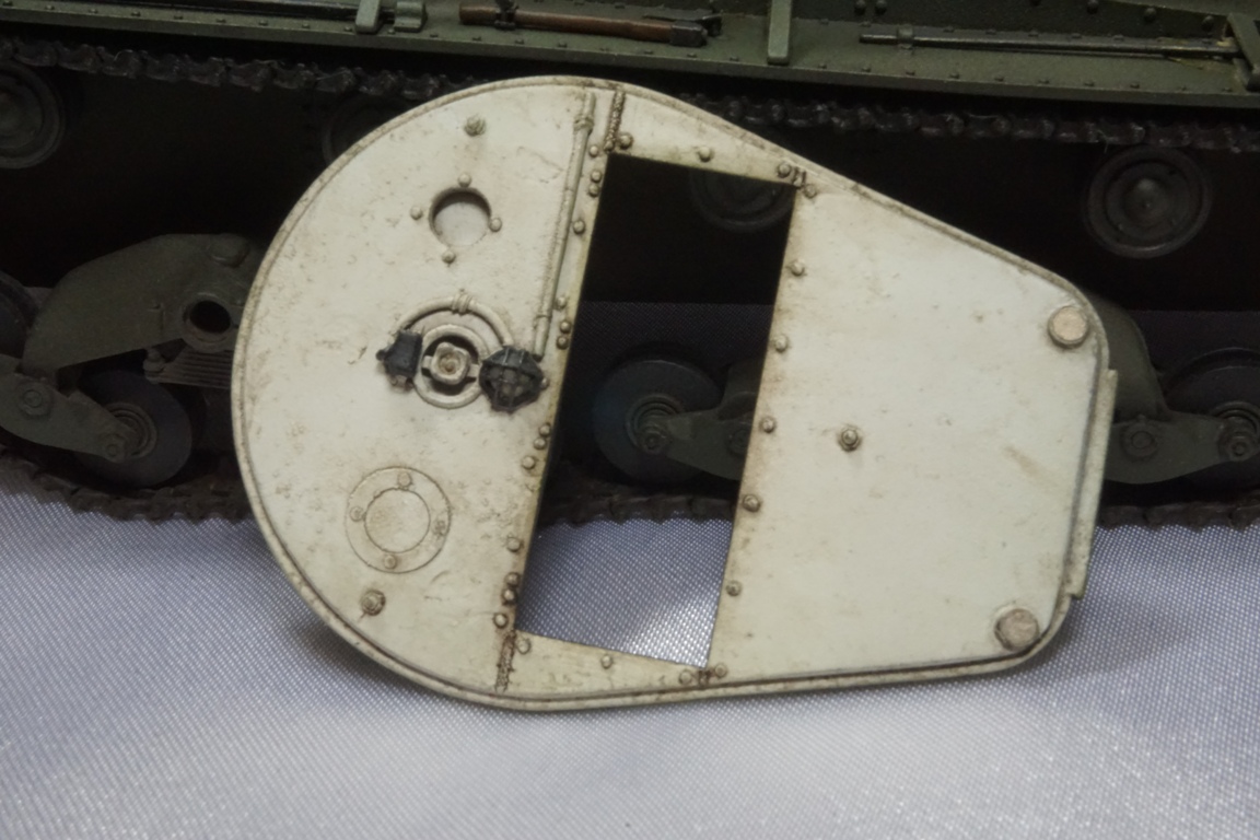 Верхняя створка мехвода шла с еле заметной смотровой щелью. Или же ее потом меняли на створку с полноценной щелью и триплексом (на своей модели я сделал именно такой вариант).