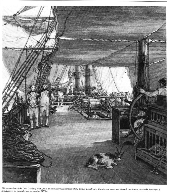 Я нарисовать рулевого у нактоуза на чертеже John McKay и попытался подчеркнуть расстояния между штурвалом и нактоузом, и между нактоузом и бизань мачтой. Вот что у меня получилось.