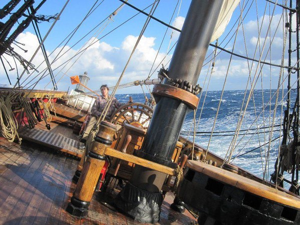 Вот две фотографии реплики ”Баунти”, где она идёт правым галсом.