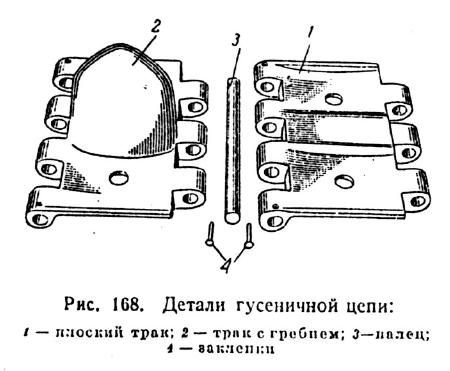 Траки соединялись с помощью пальца, на одном конце которого была головка, а на другом отверстие для шплинта, фиксировавшего палец.