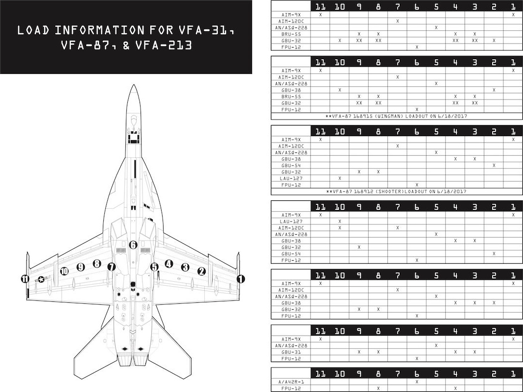 И прикладываю варианты подвески в том числе для VFA-31, но это на 2017 год, из декали Furball Team Factory Carrier Air Wing 8 at War