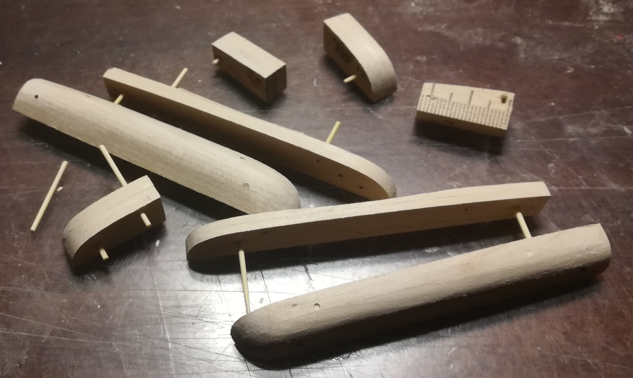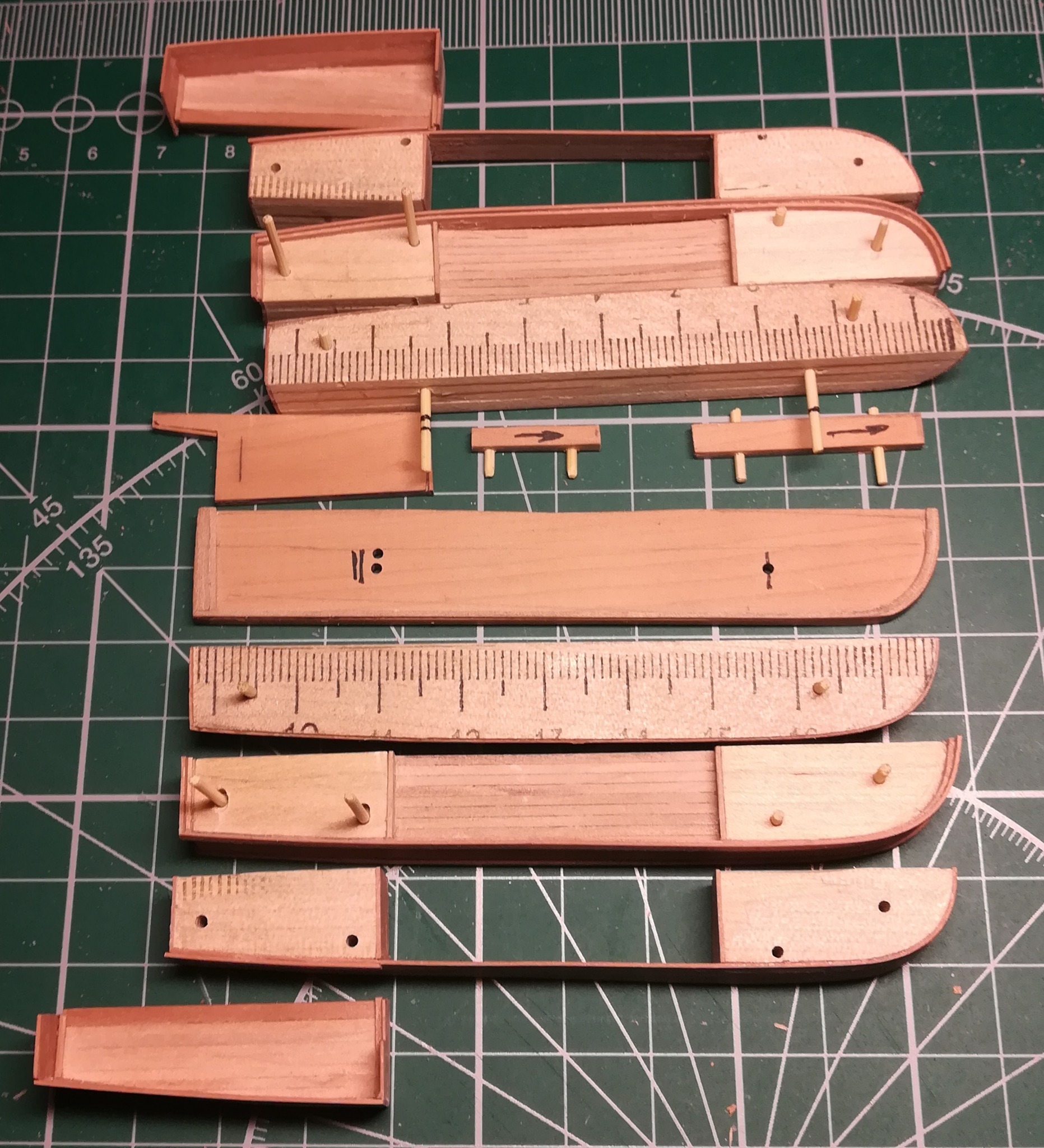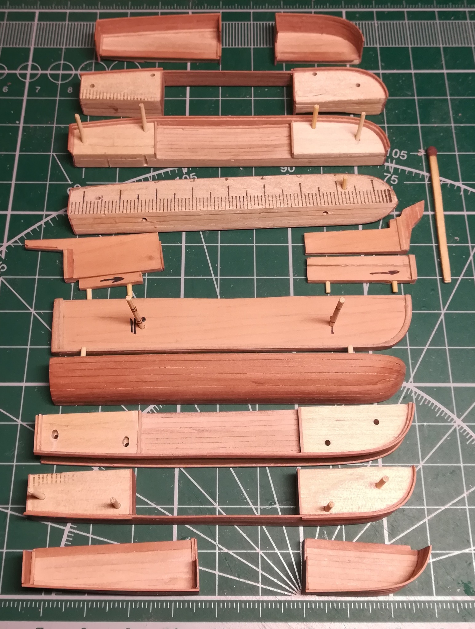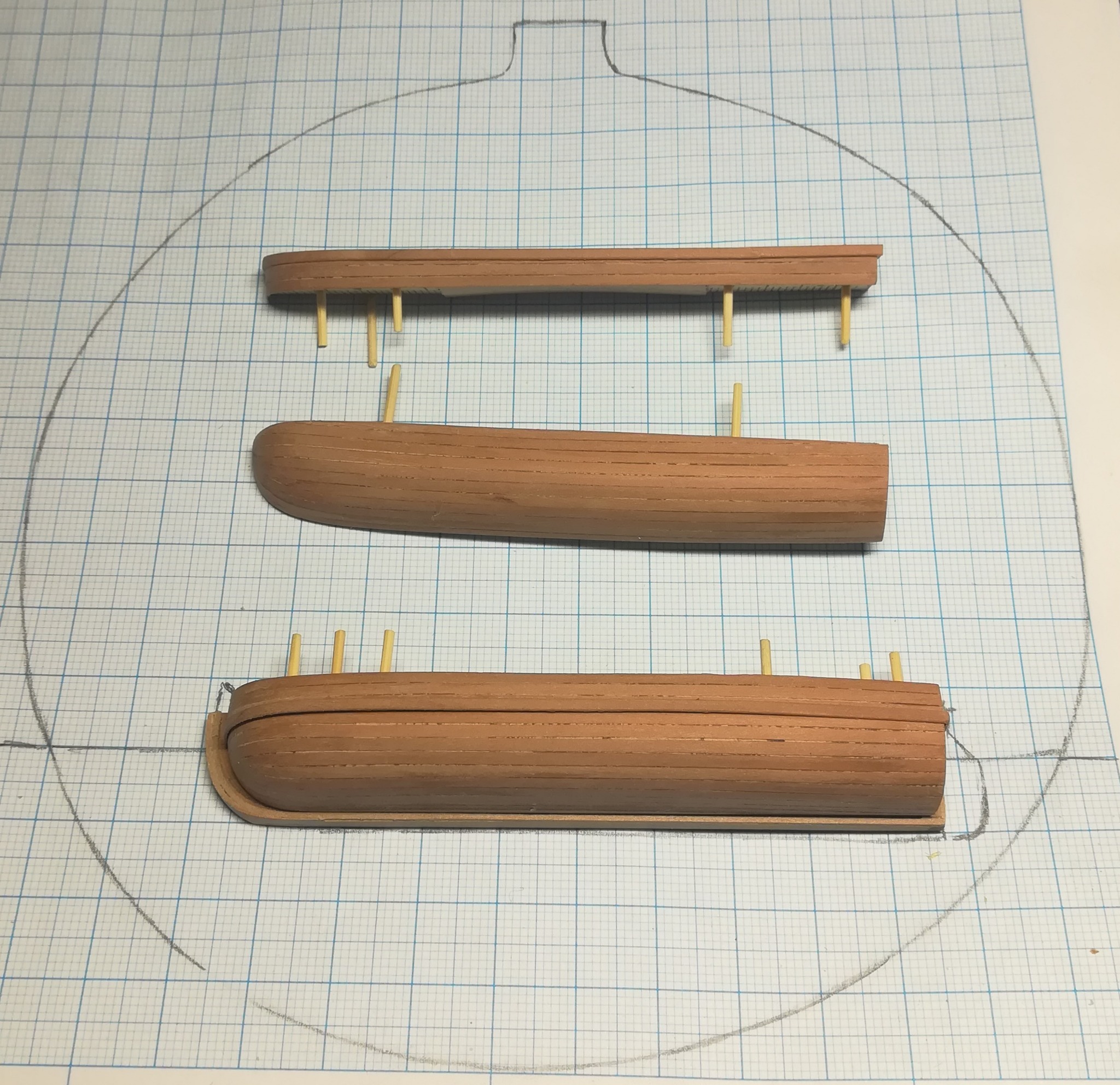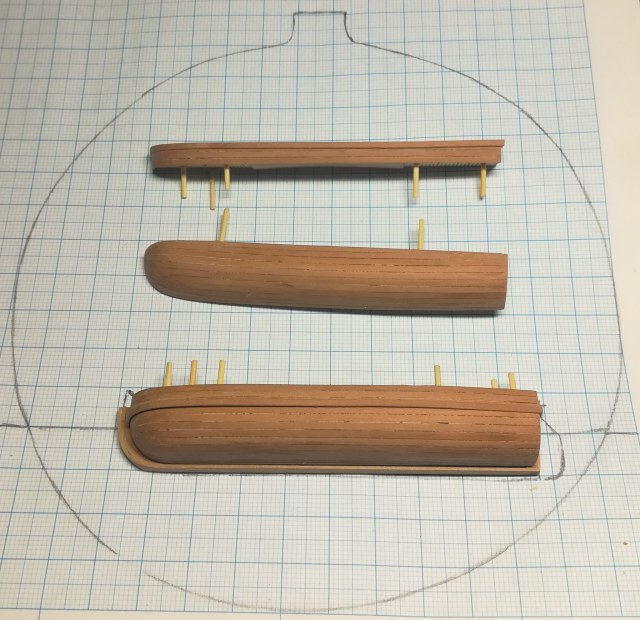 В конце января я начал пилить части основы корпуса. Шар большой, горло узкое, поэтому корпус пришлось резать на много частей