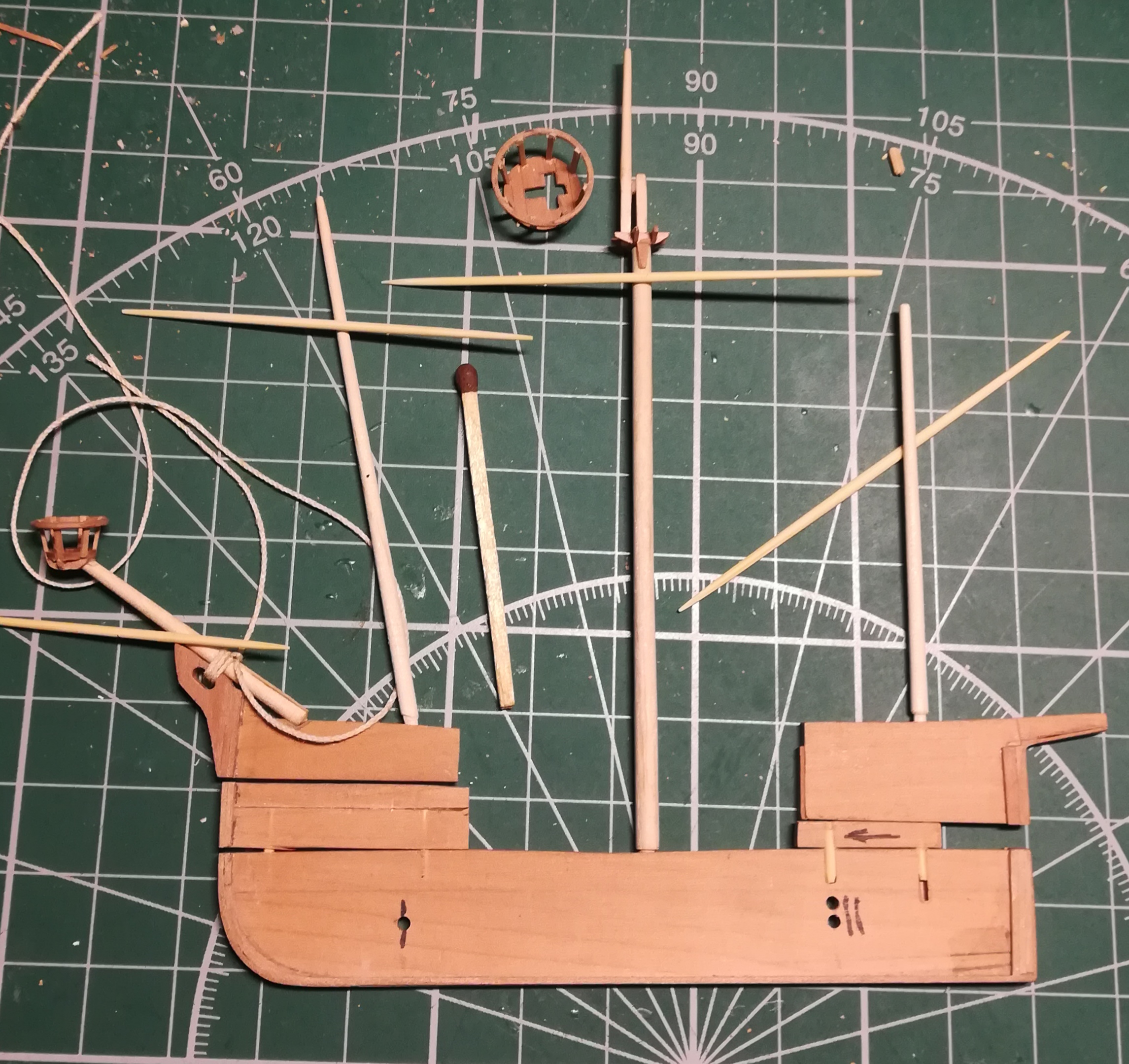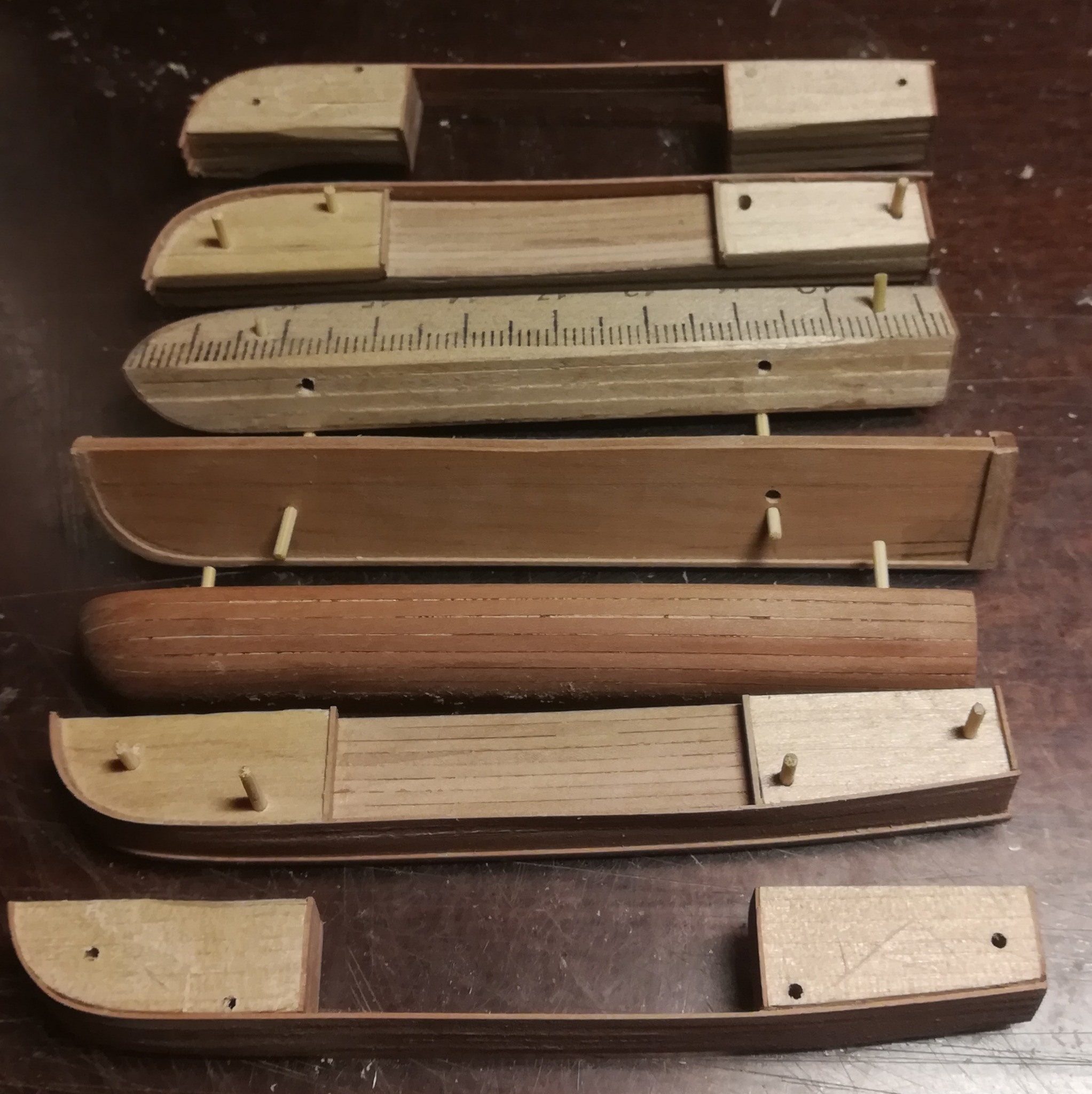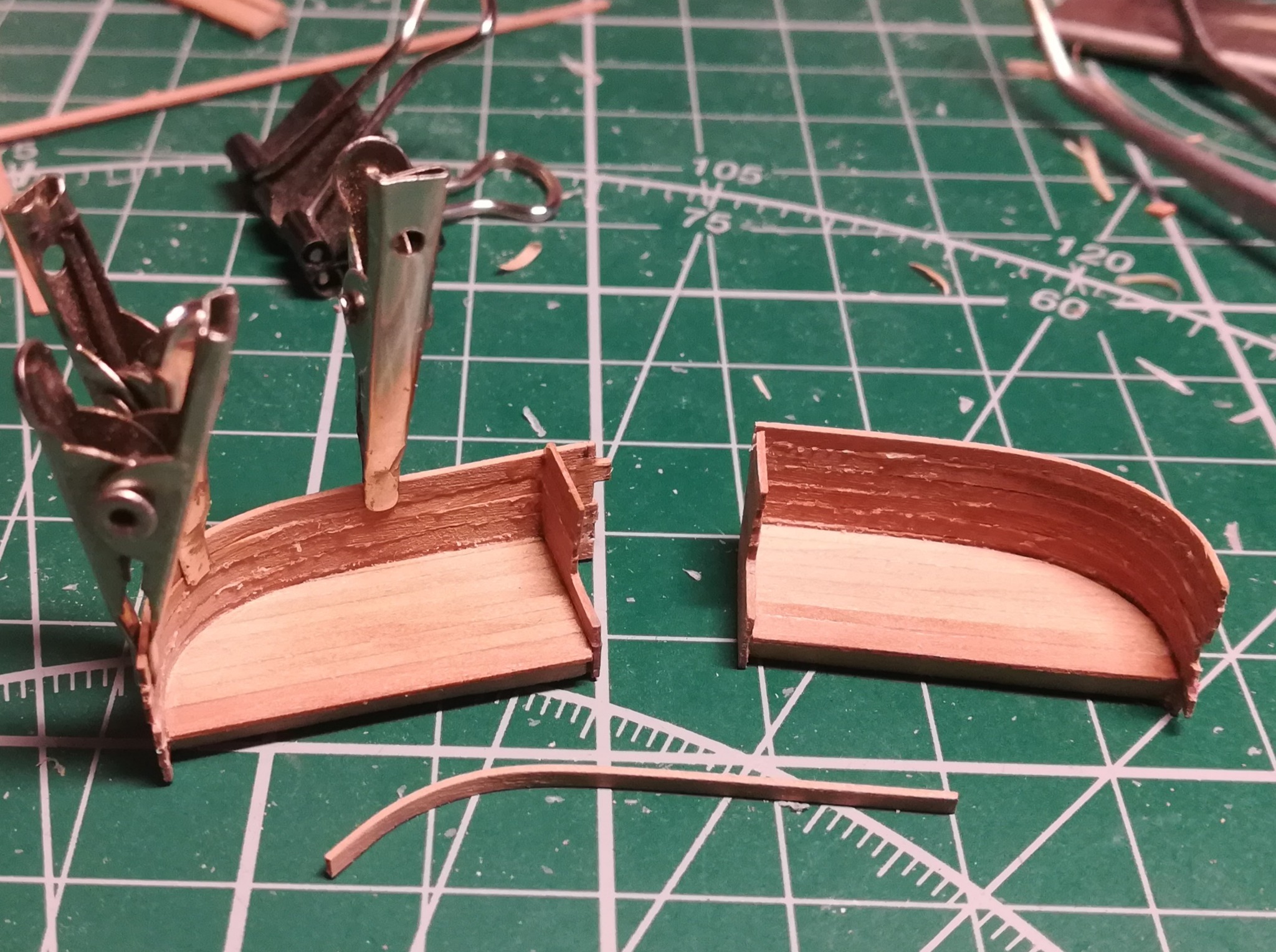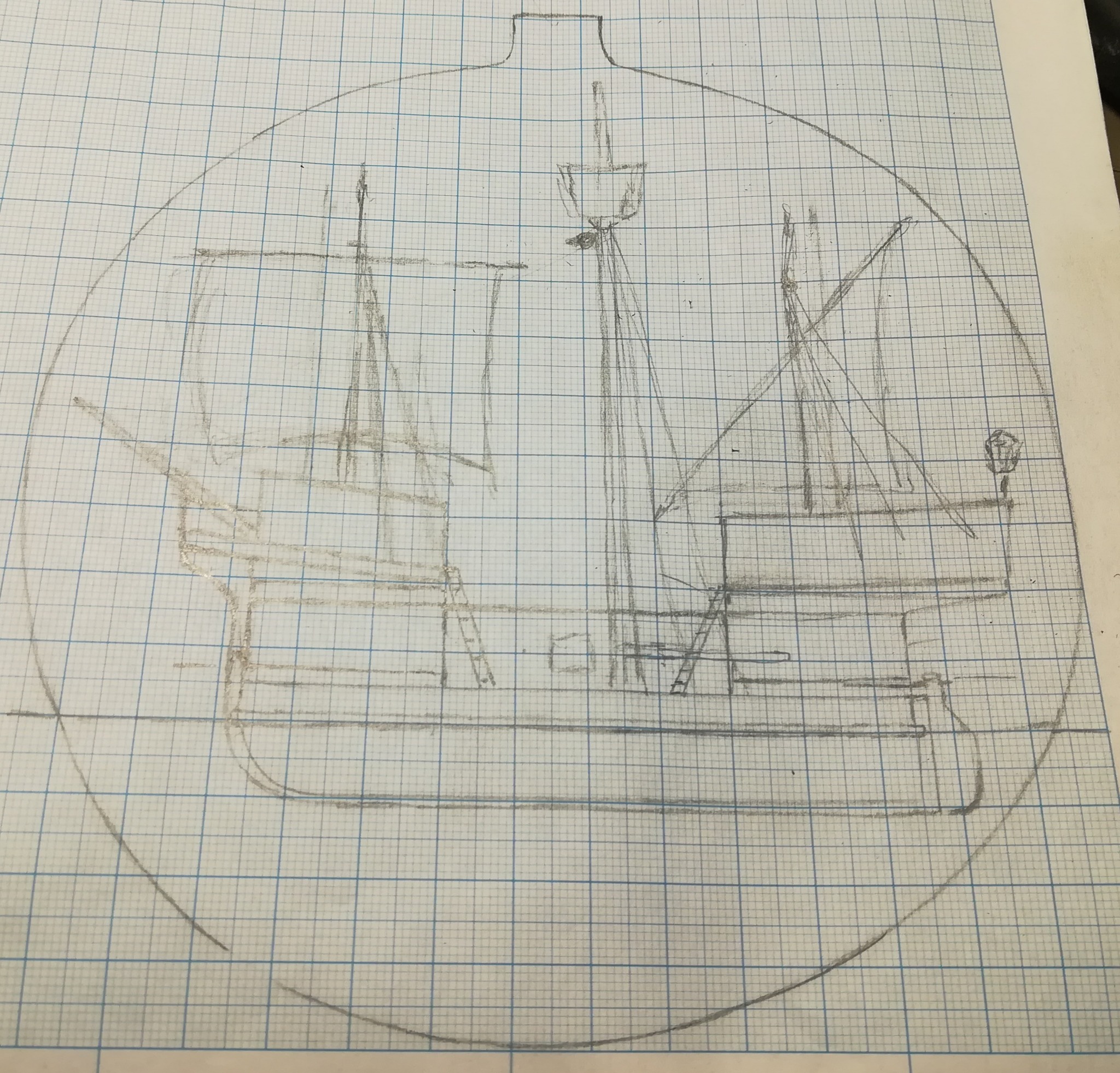 В конце января я начал пилить части основы корпуса. Шар большой, горло узкое, поэтому корпус пришлось резать на много частей