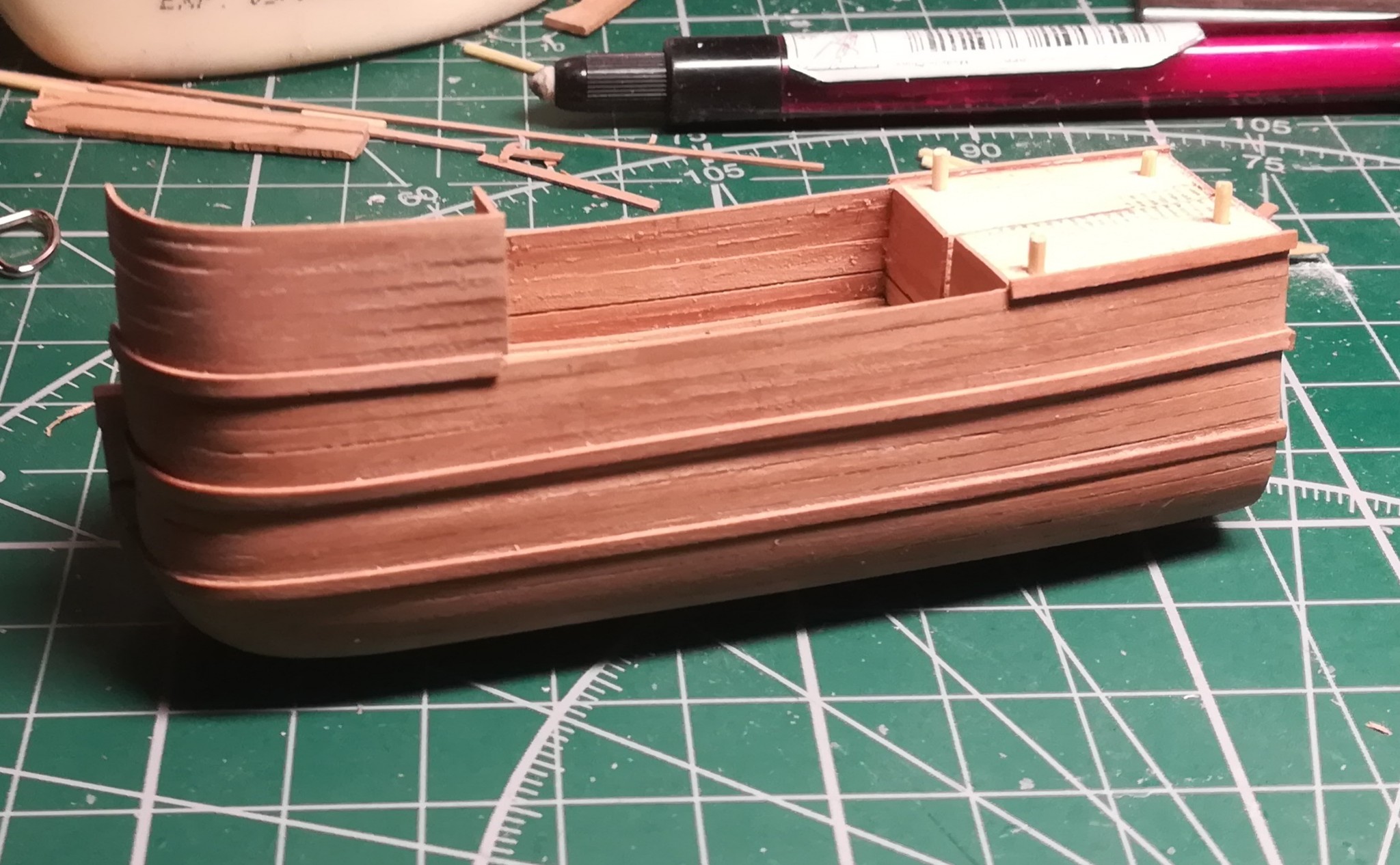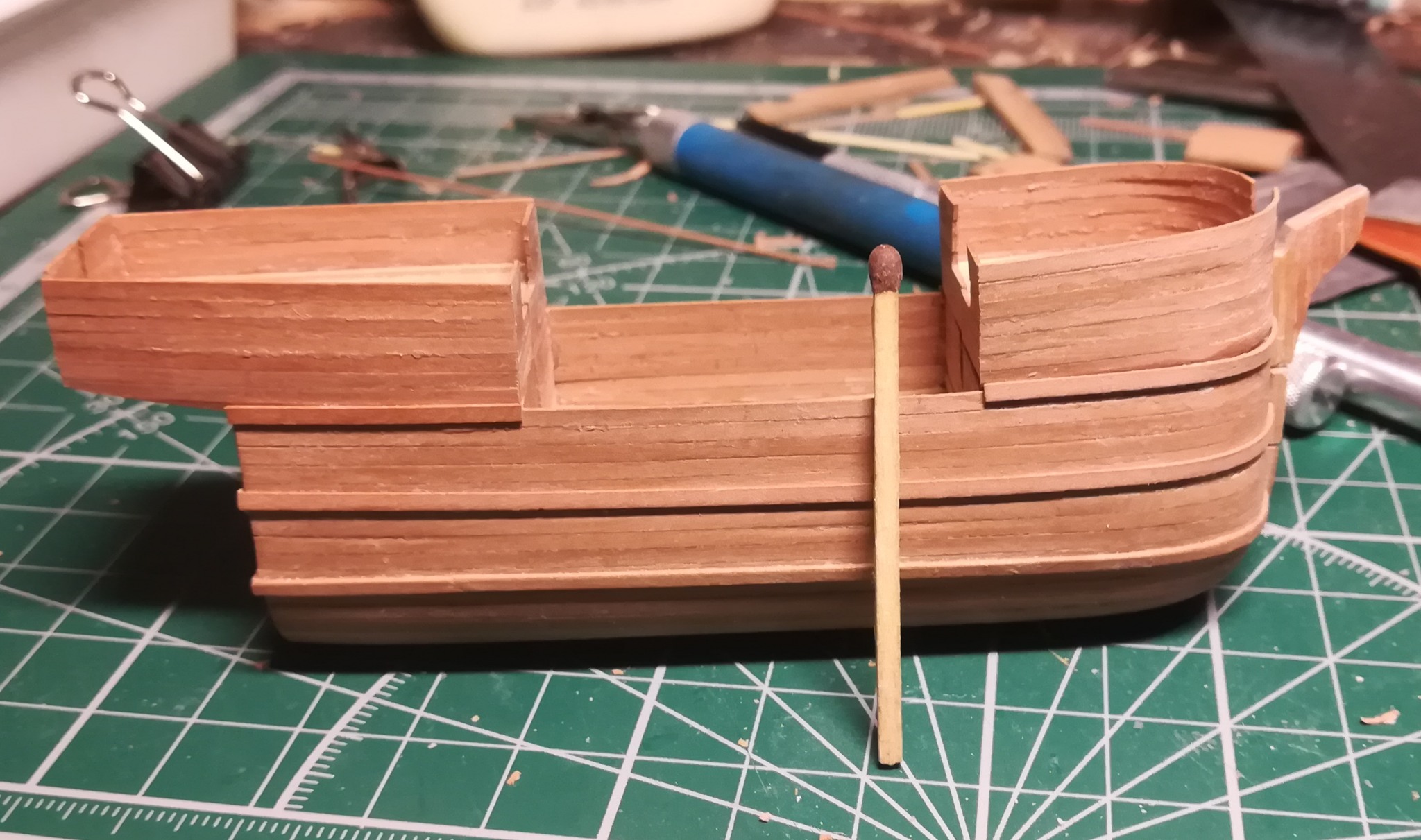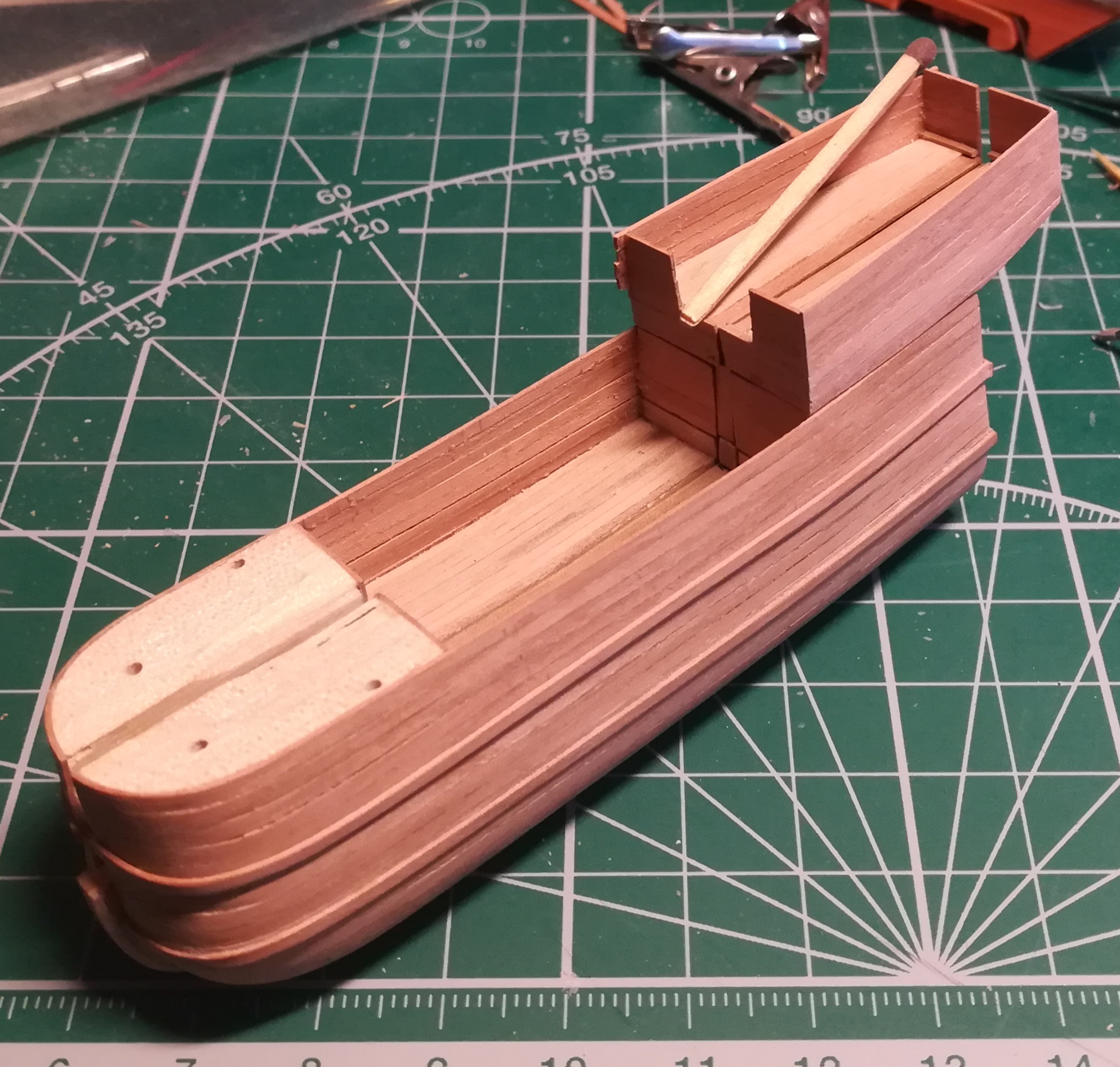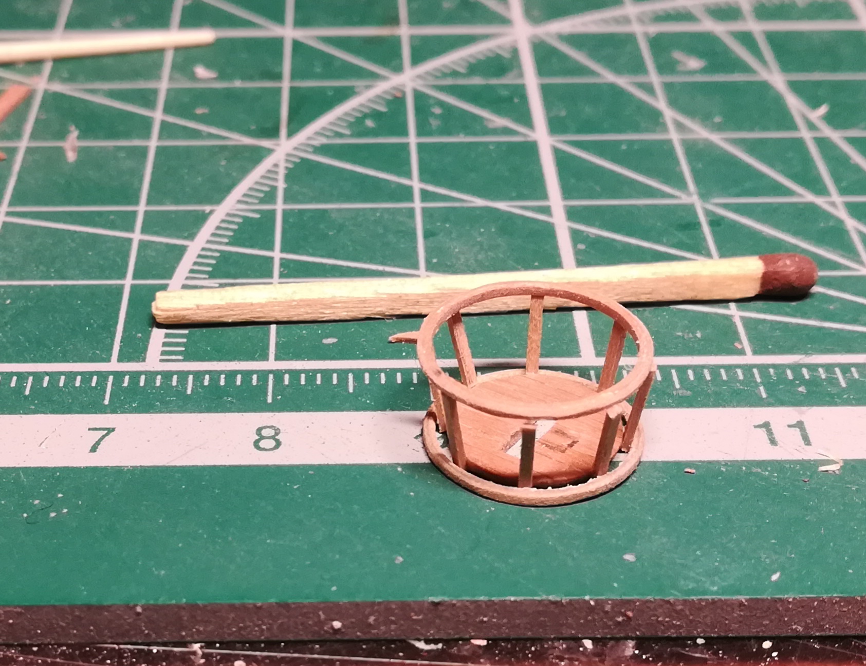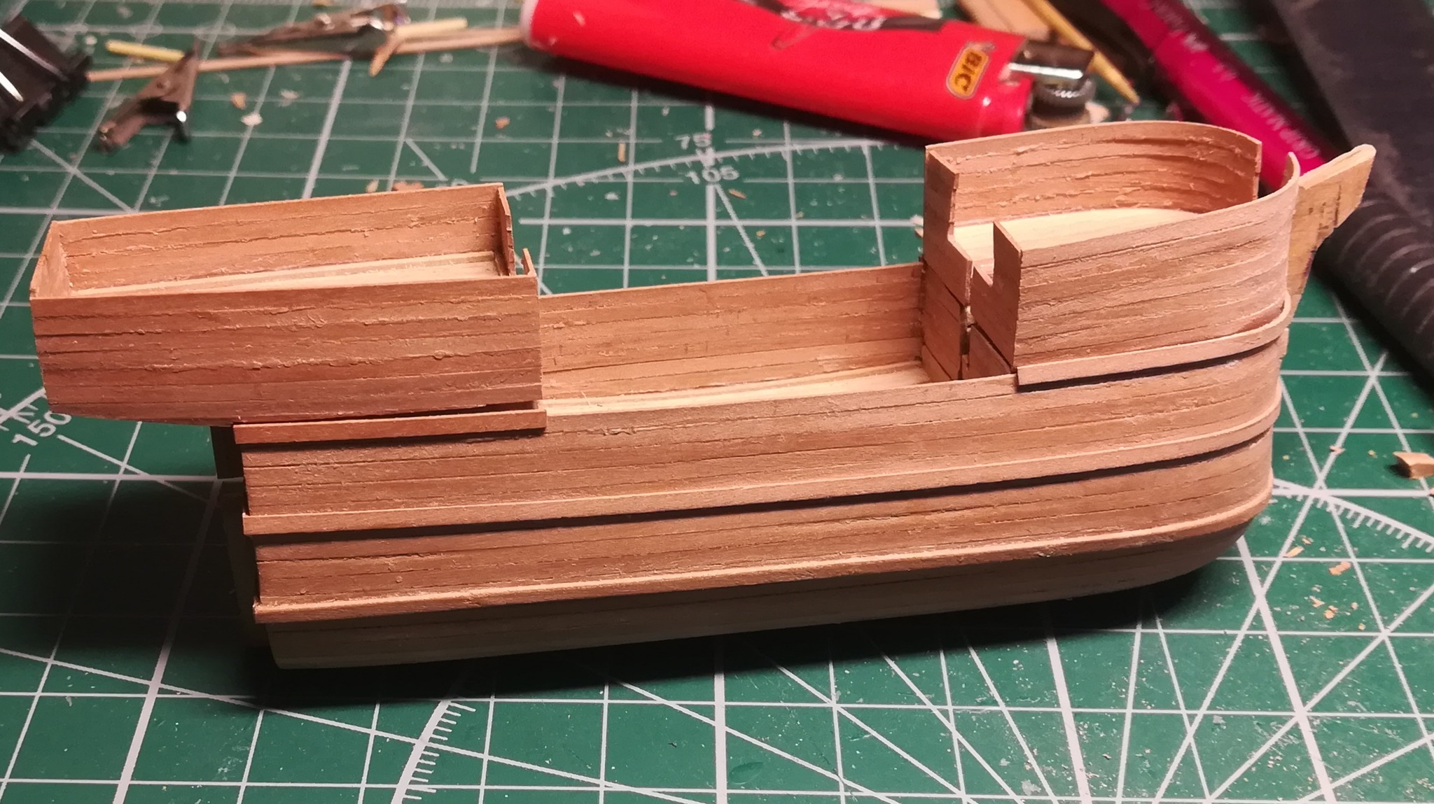 В конце января я начал пилить части основы корпуса. Шар большой, горло узкое, поэтому корпус пришлось резать на много частей