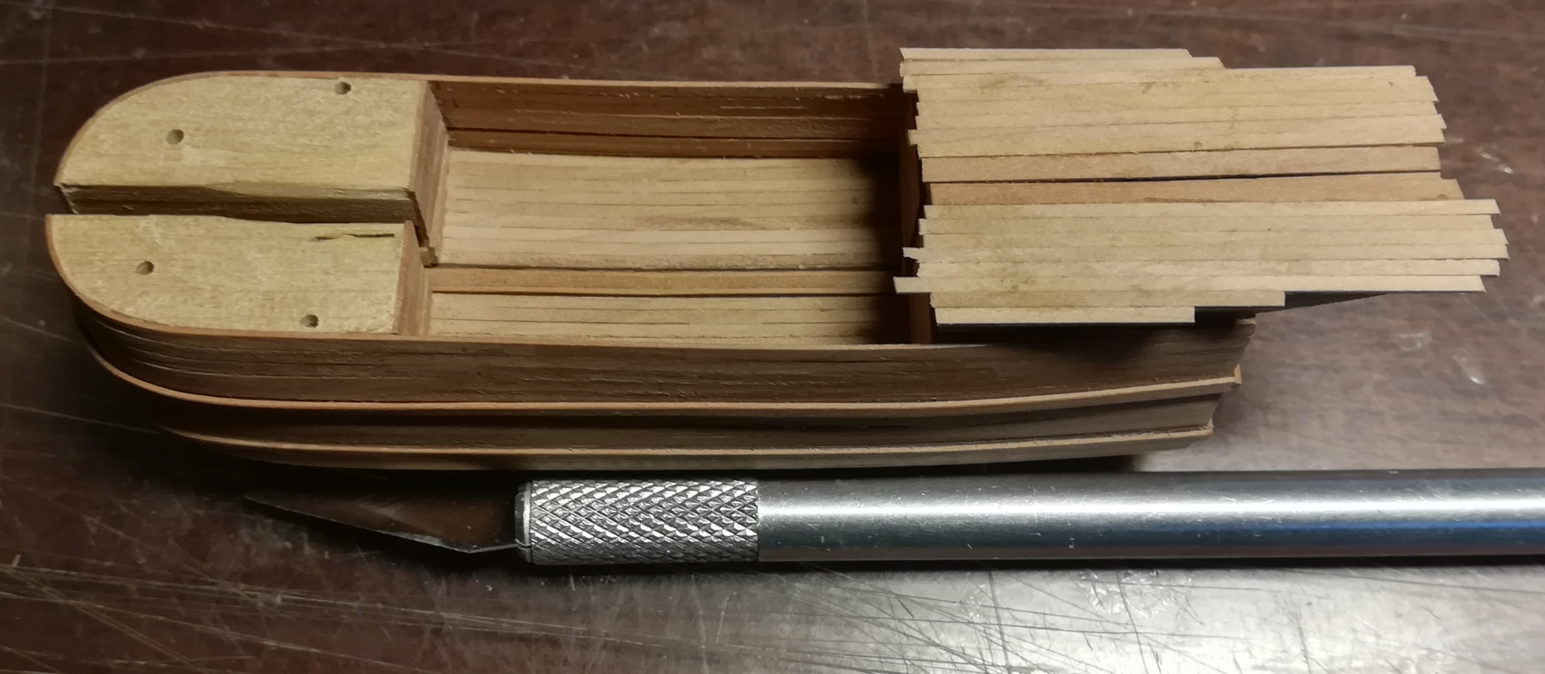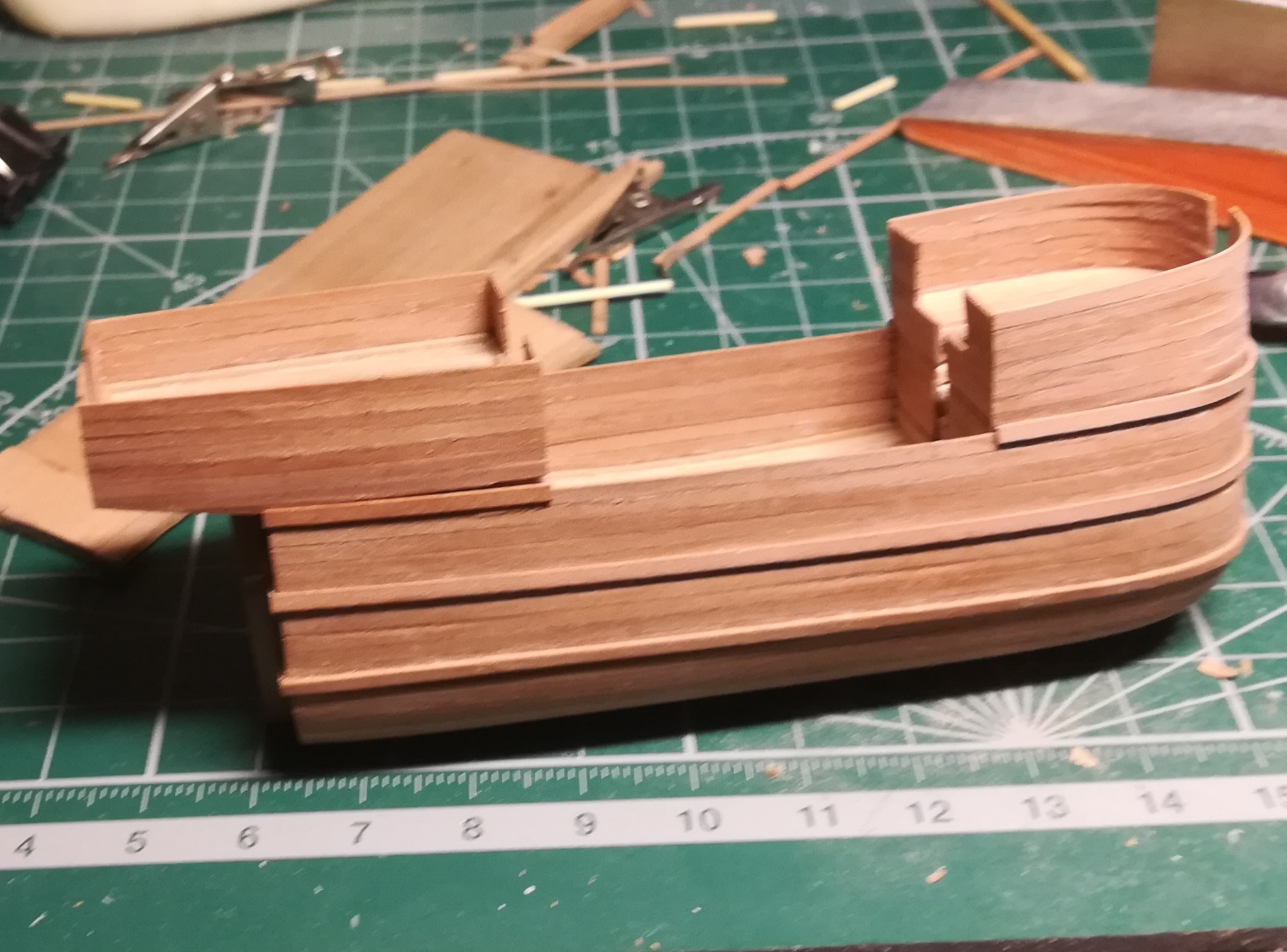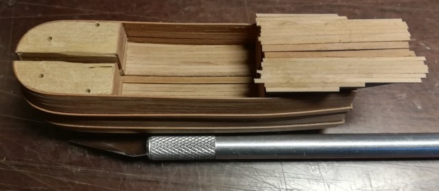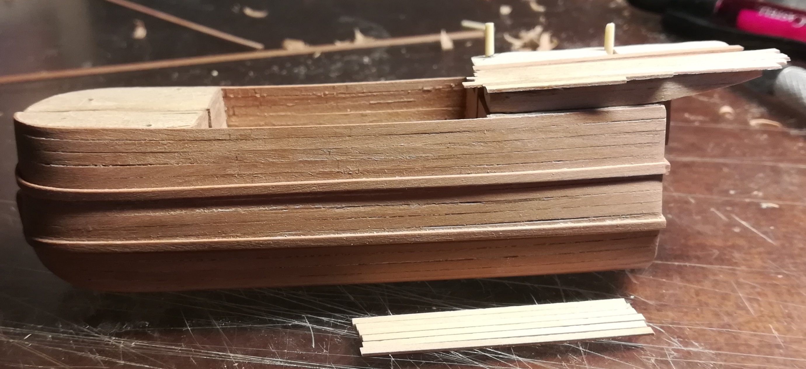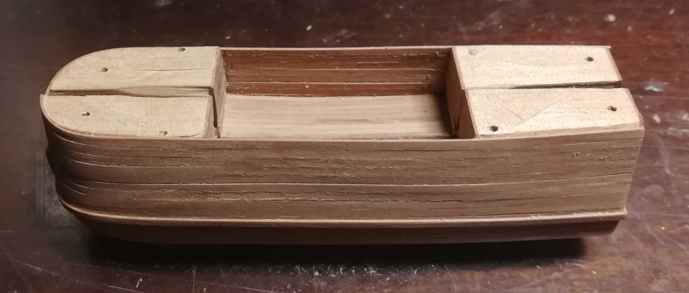 В конце января я начал пилить части основы корпуса. Шар большой, горло узкое, поэтому корпус пришлось резать на много частей
