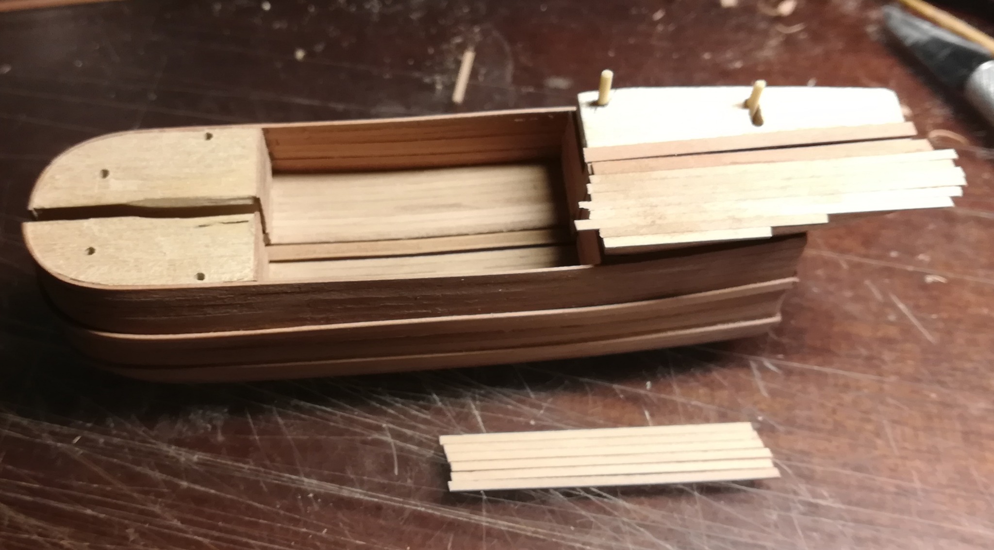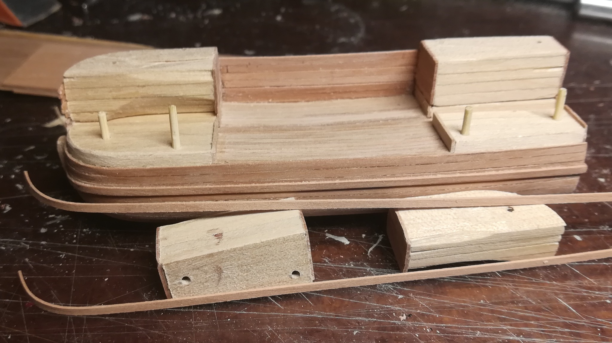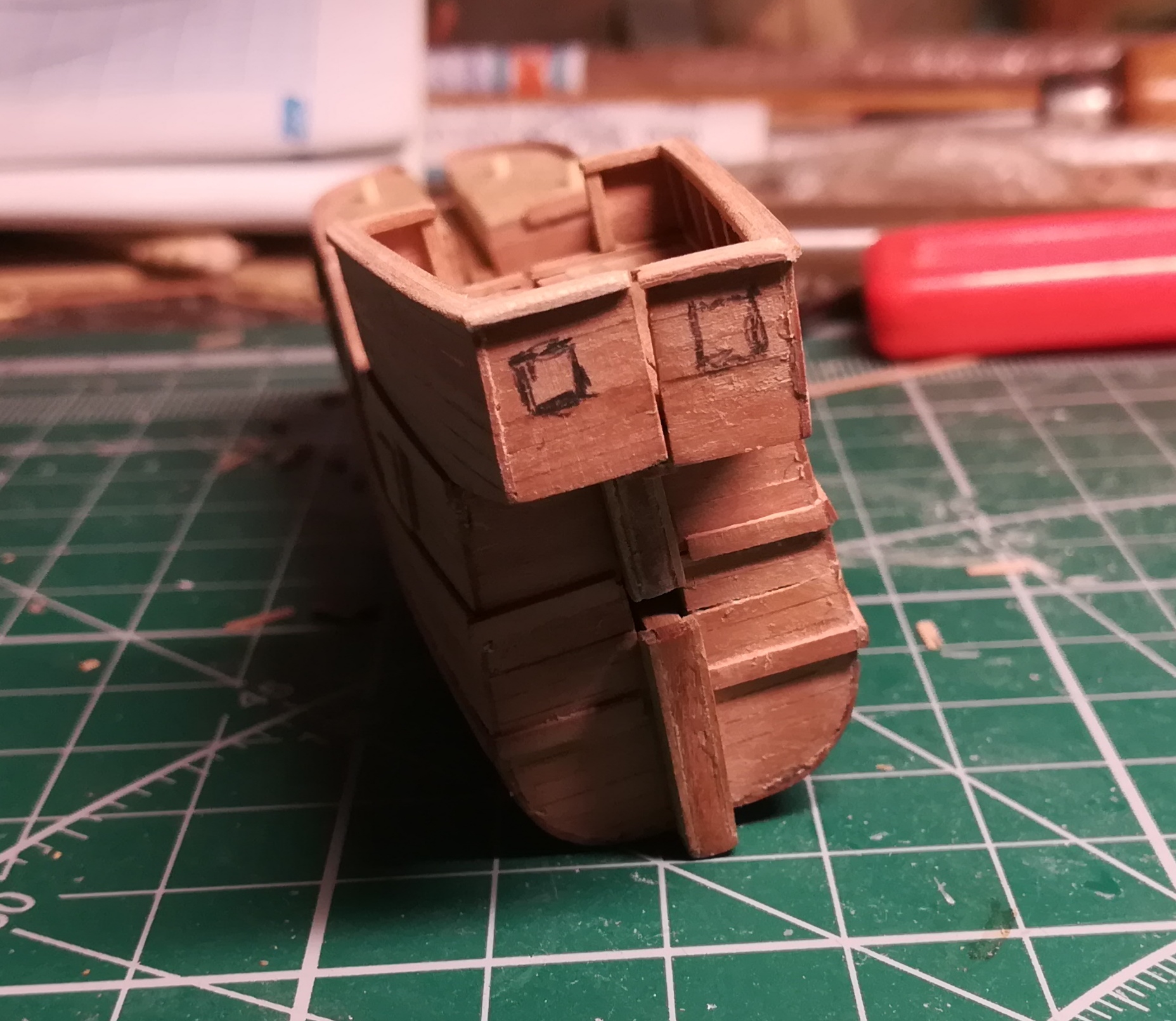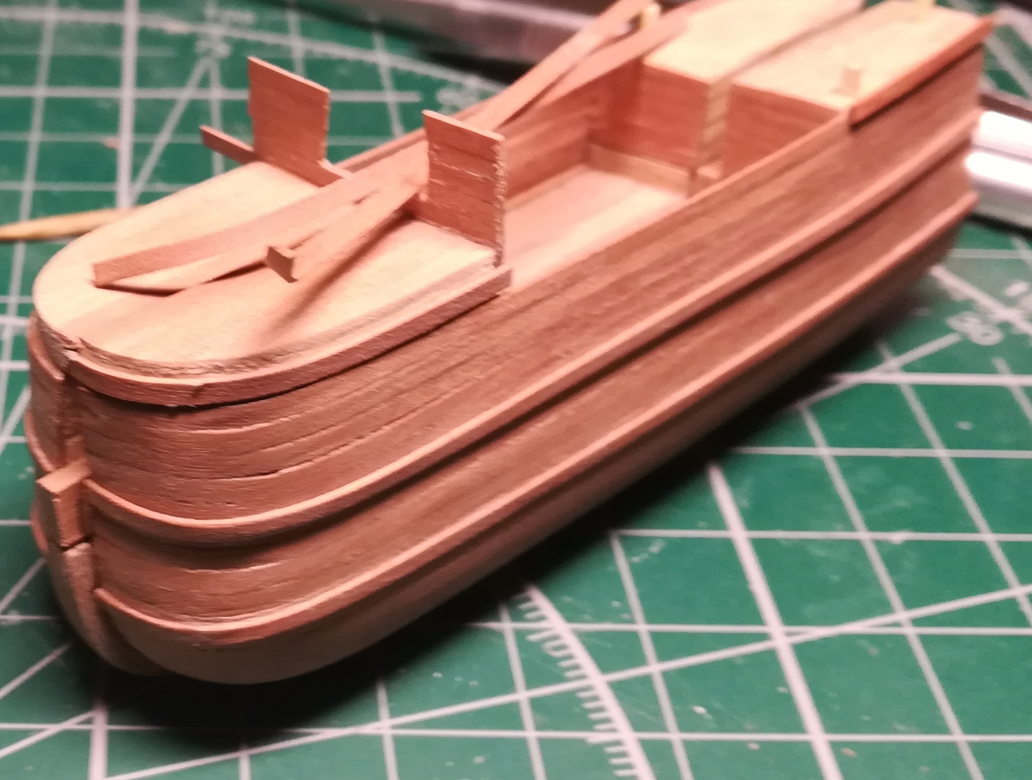 В конце января я начал пилить части основы корпуса. Шар большой, горло узкое, поэтому корпус пришлось резать на много частей