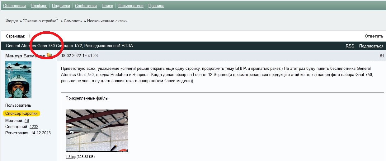 На этот раз буду пилить беспилотника General Atomics Gnat-750, предка Predatora и Reapera...http://www.airwar.ru/enc/bpla/gnat.html Когда делал обзор на Loon от 12 Squared(и просматривал всю продукцию этой конторы) нашел фото набора Gnat-750, раньше не знал о существовании такого аппарата(тем более модели)).