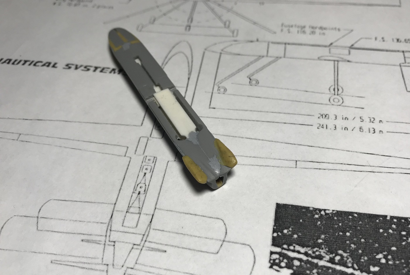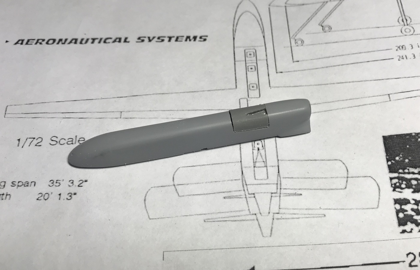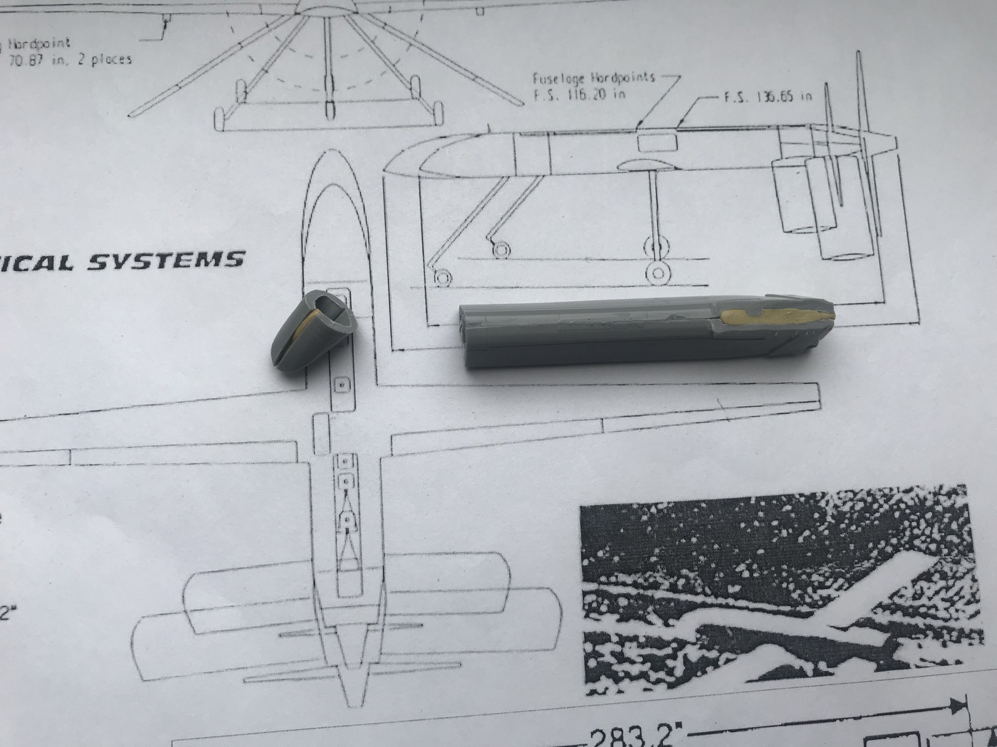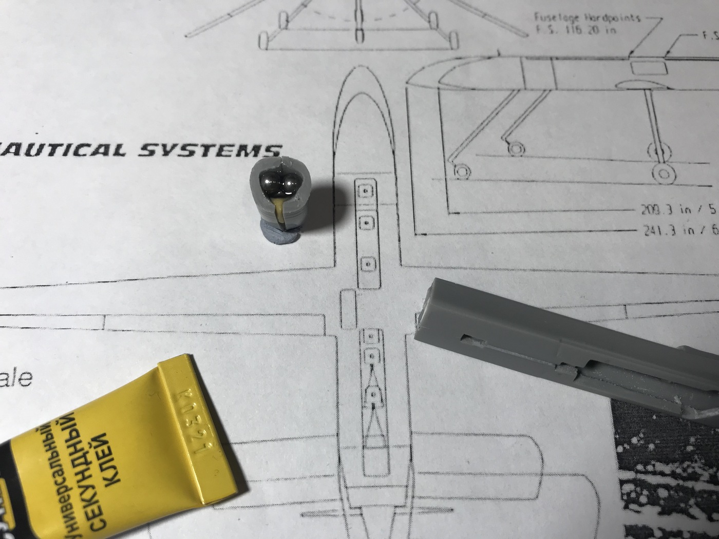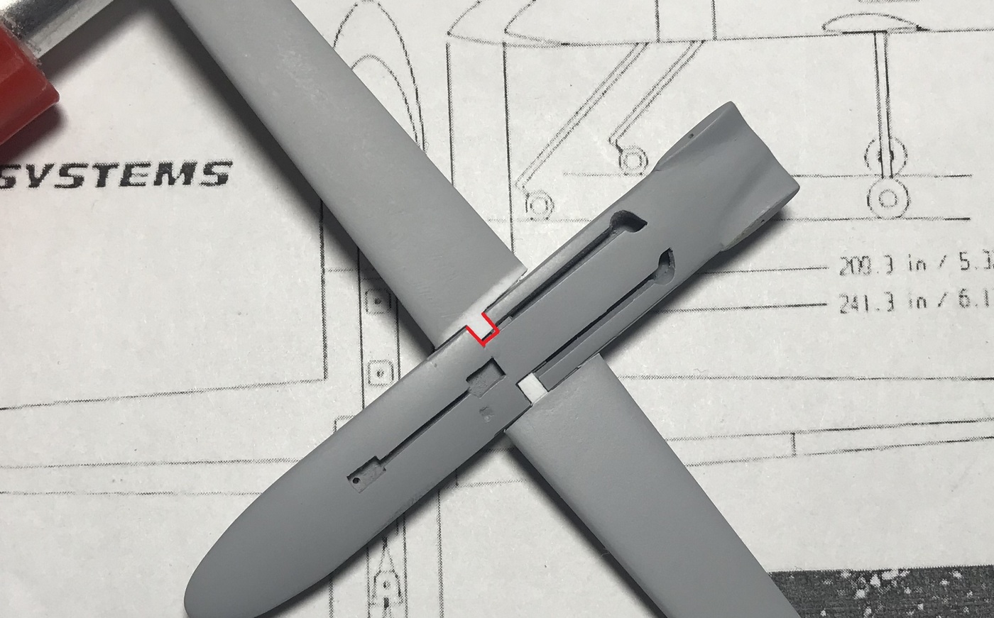 Склеил половинки корпуса, вырезал основные ниши и место под центроплан. В верхнюю часть корпуса вклеил кусок литника(нужно сточить 1мм, сверху корпуса)....